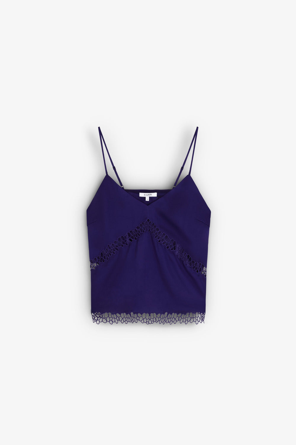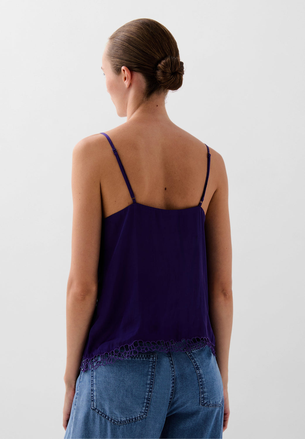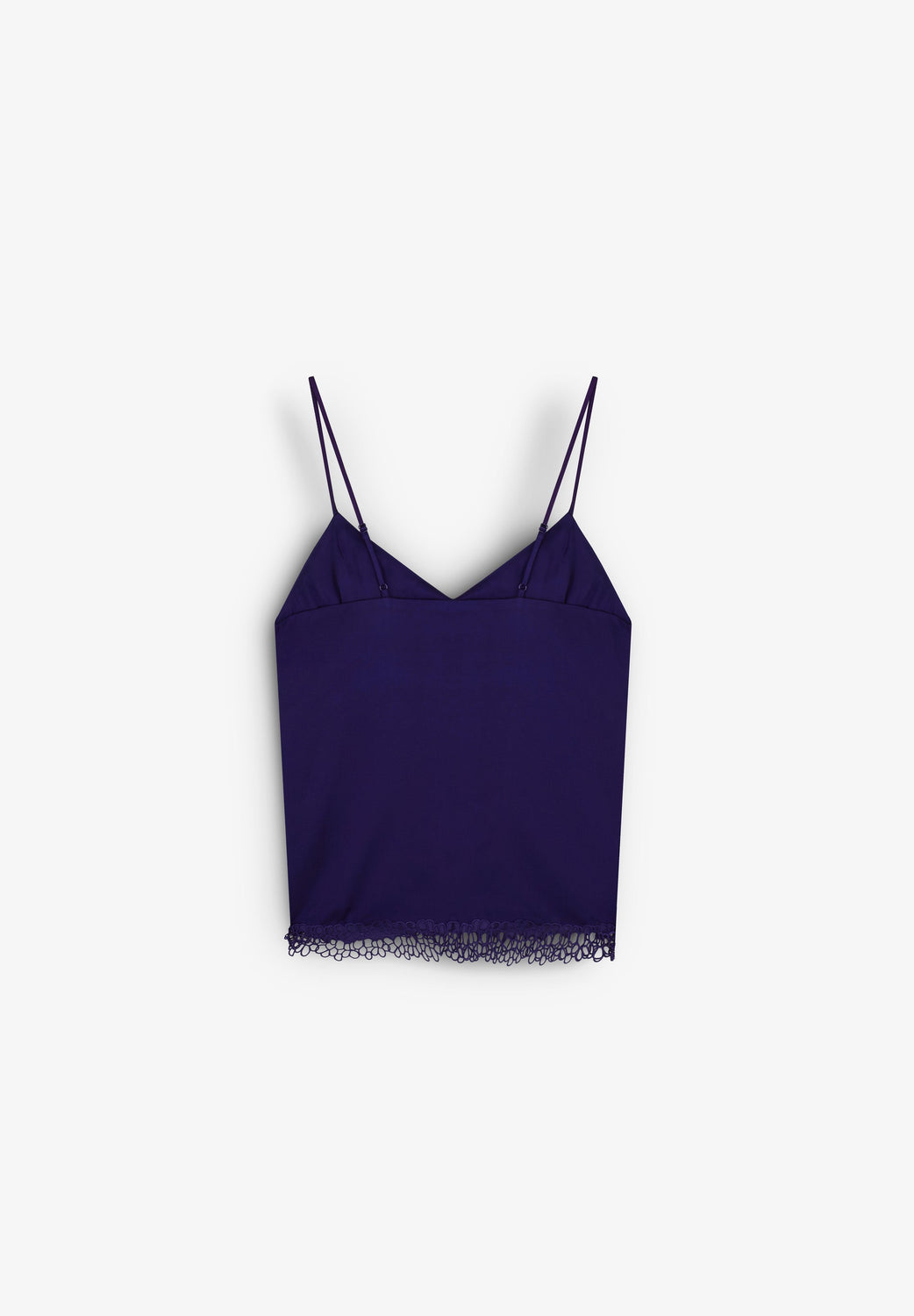 Top with flowing straps. V-neck. Embroidered detailing on the neckline and waist.
