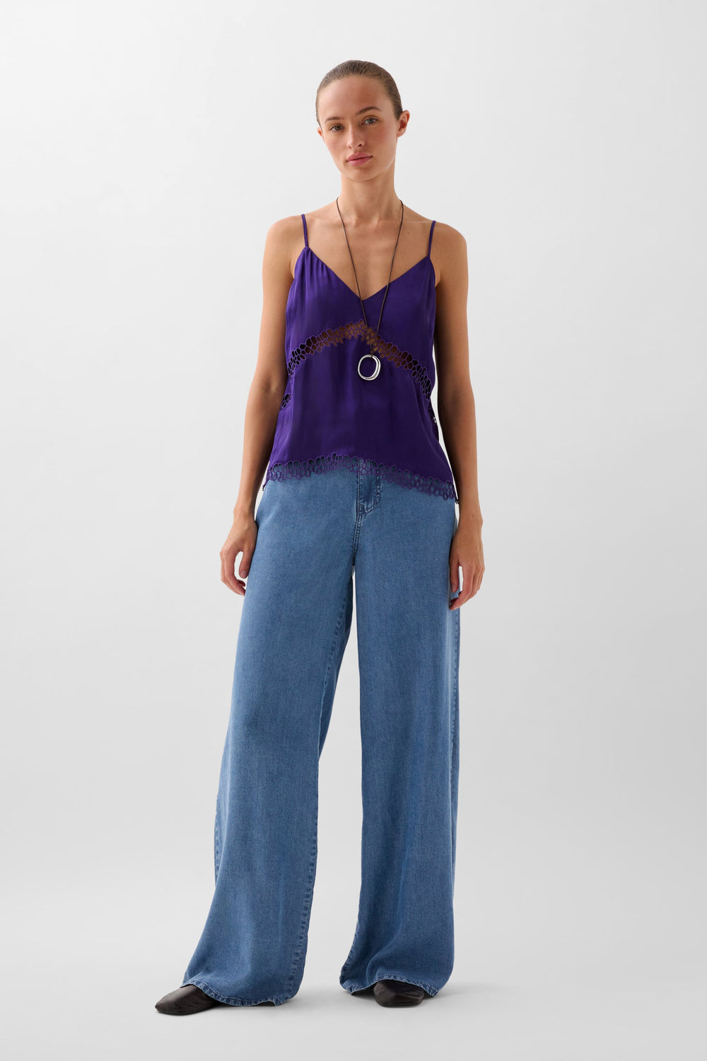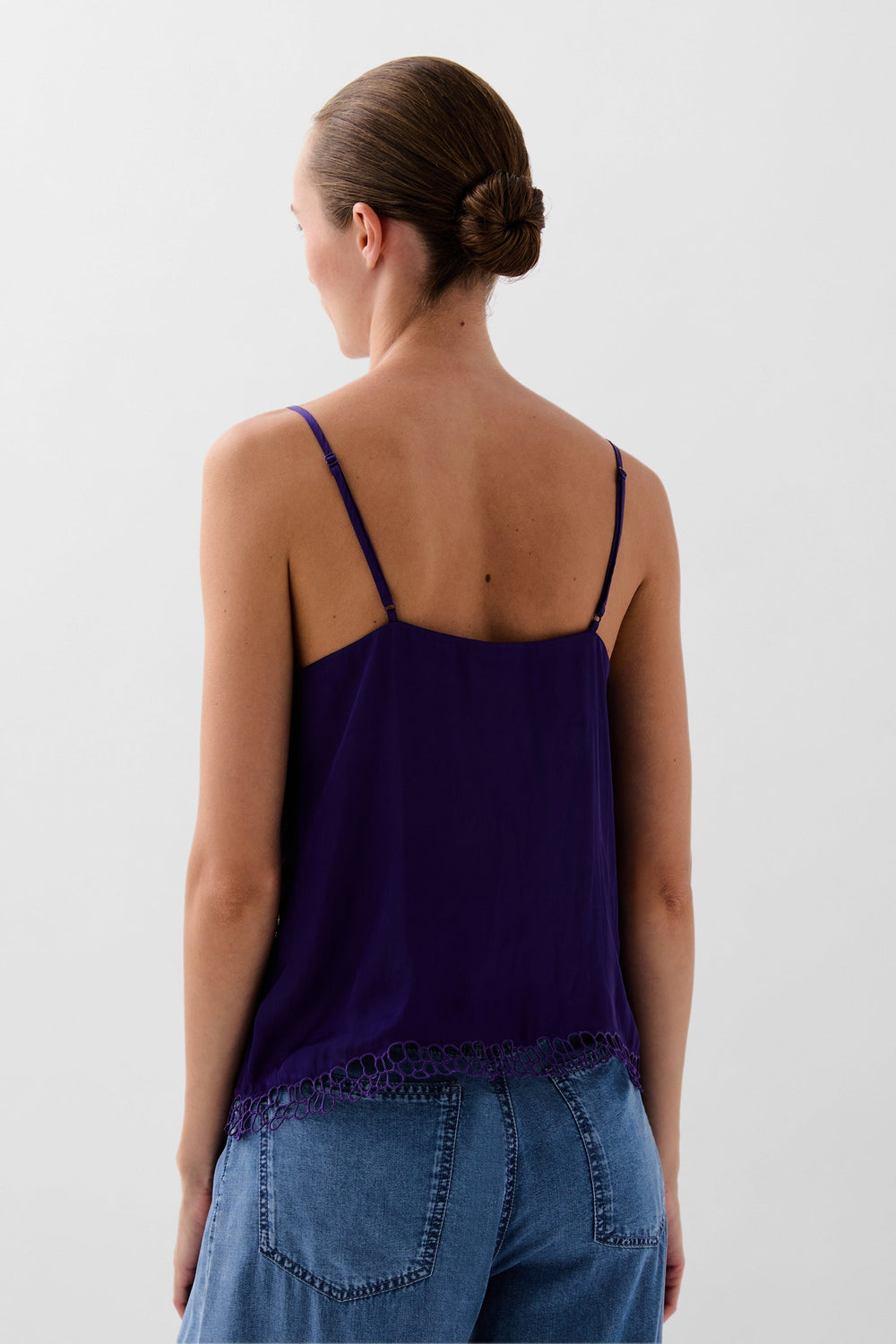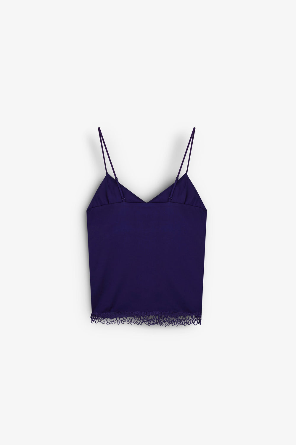 Top with flowing straps. V-neck. Embroidered detailing on the neckline and waist.