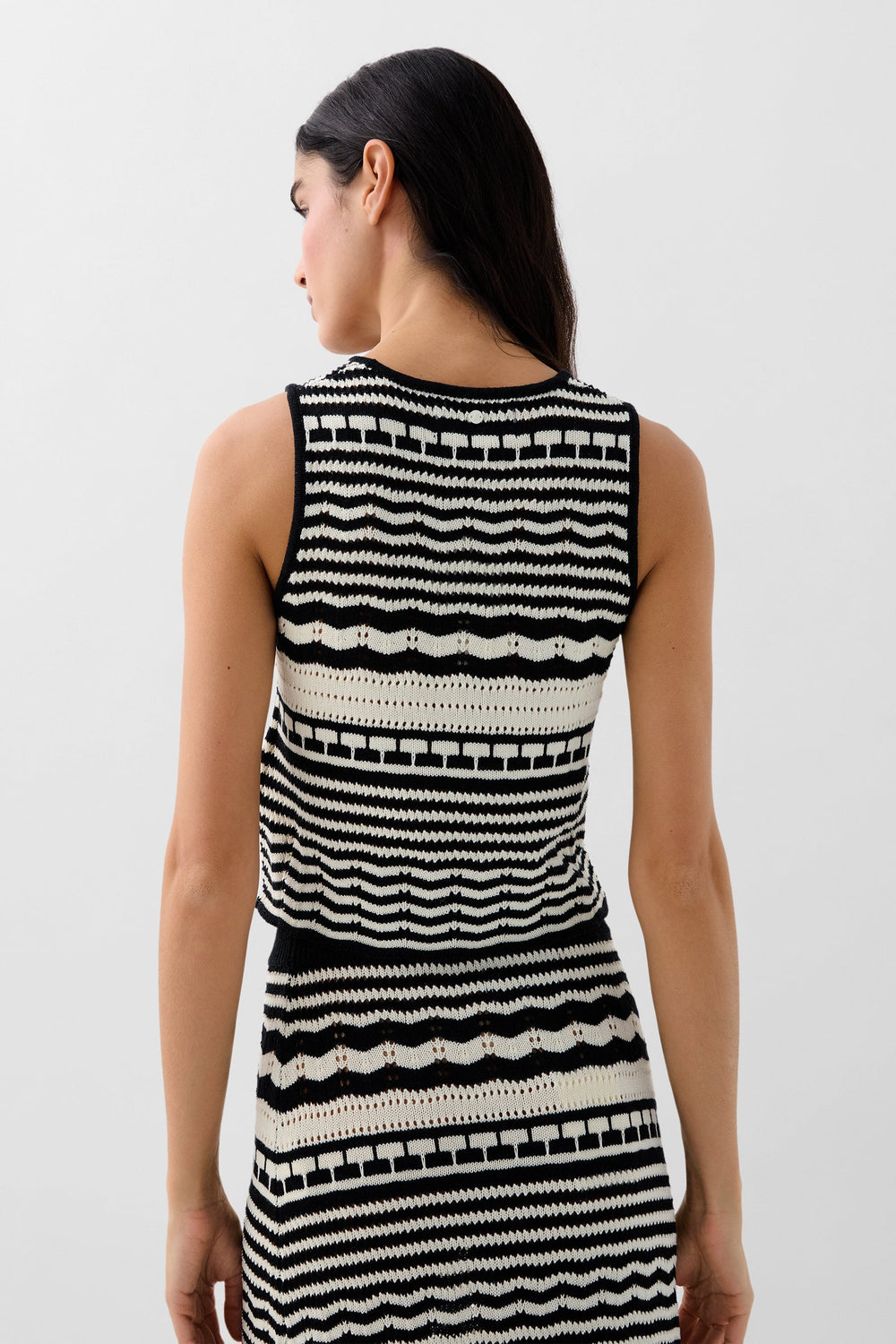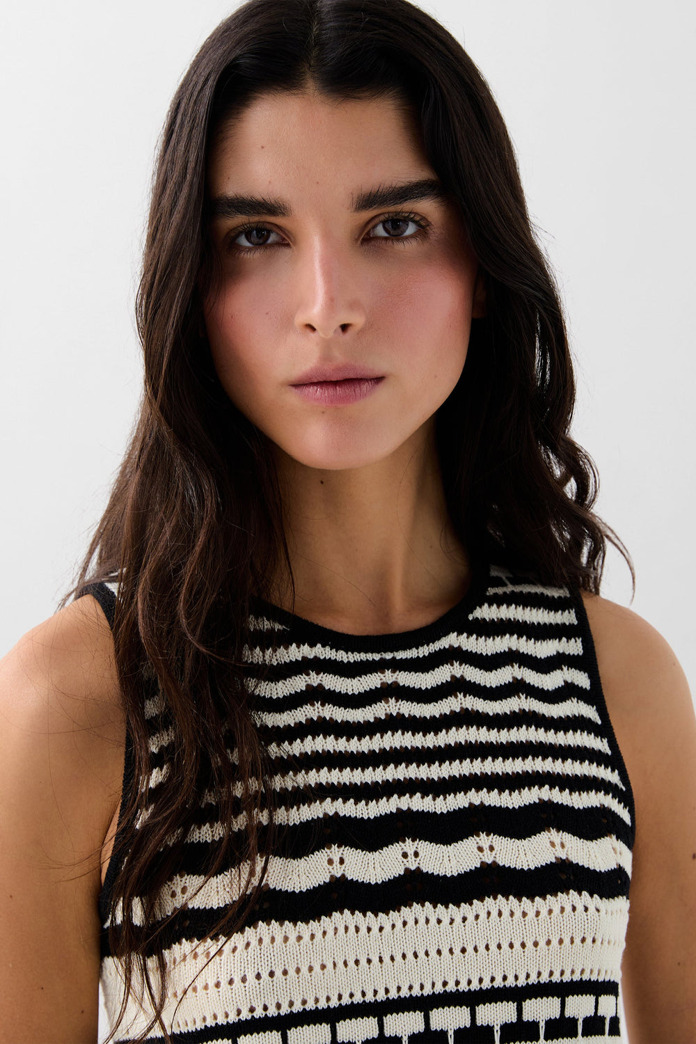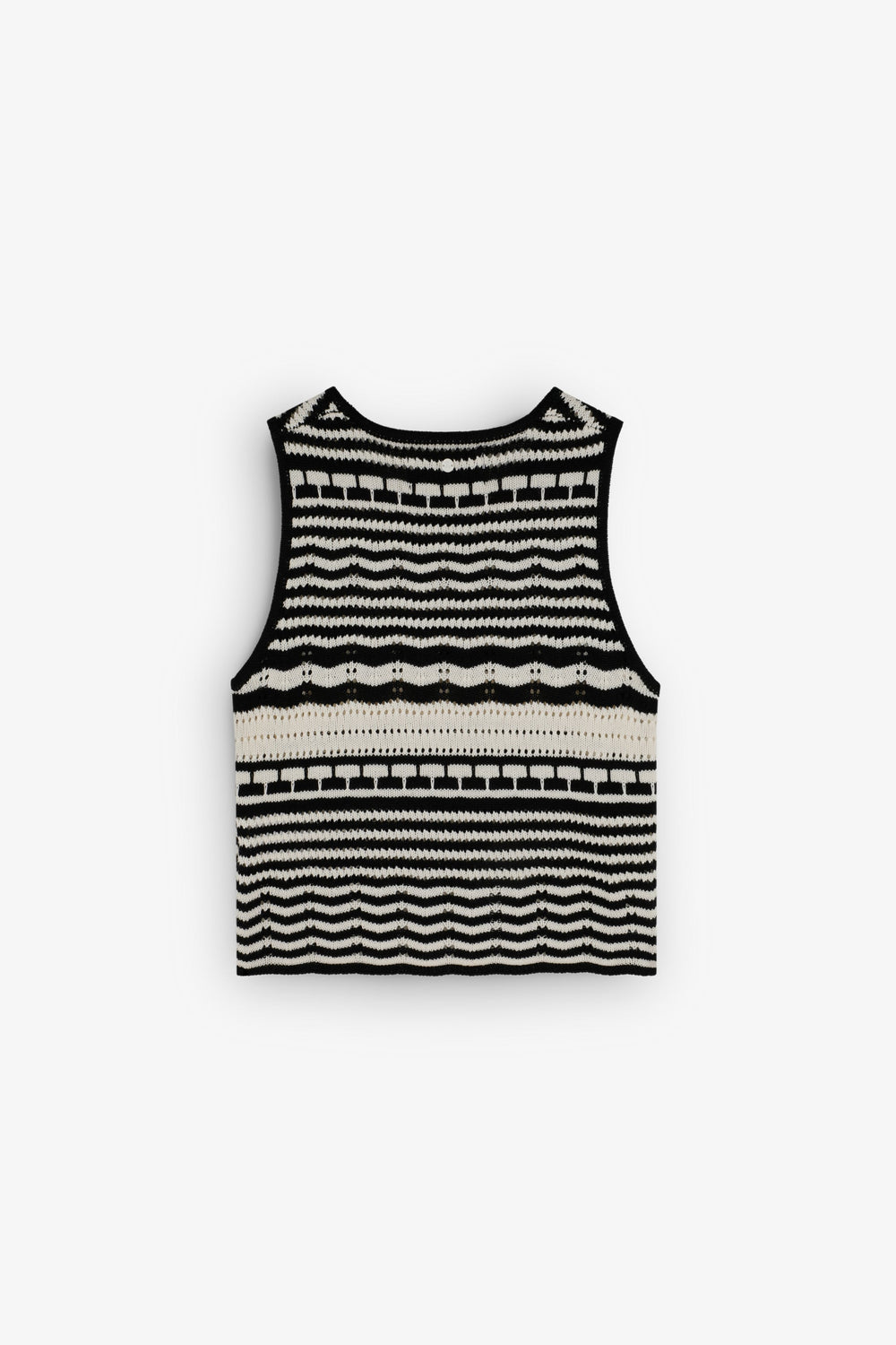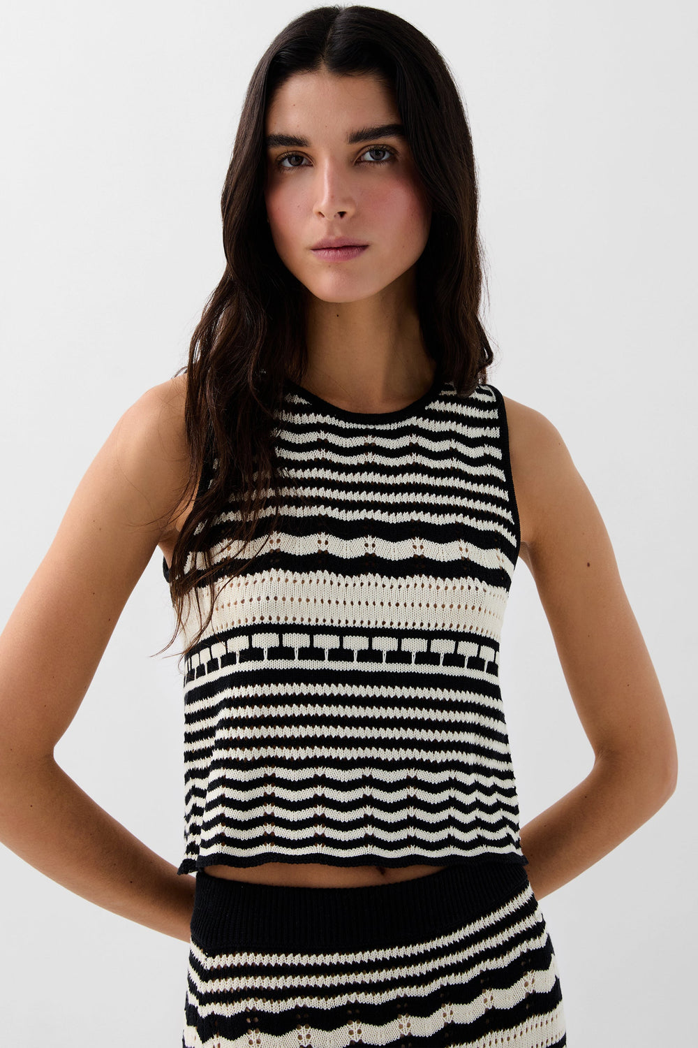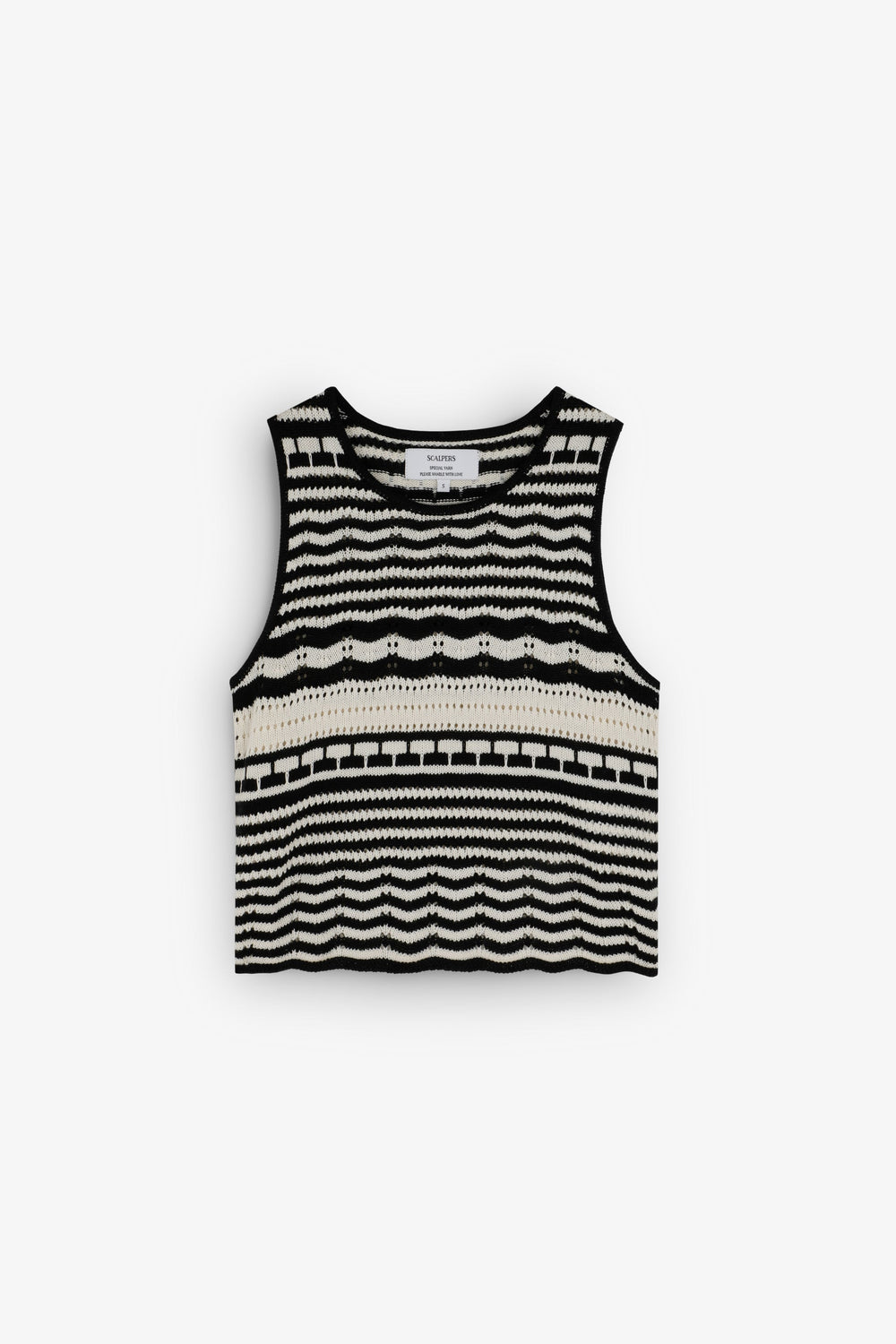 Top made of organic cotton. Round neck. Sleeveless. Printed.
