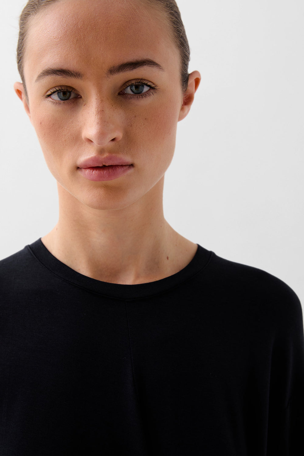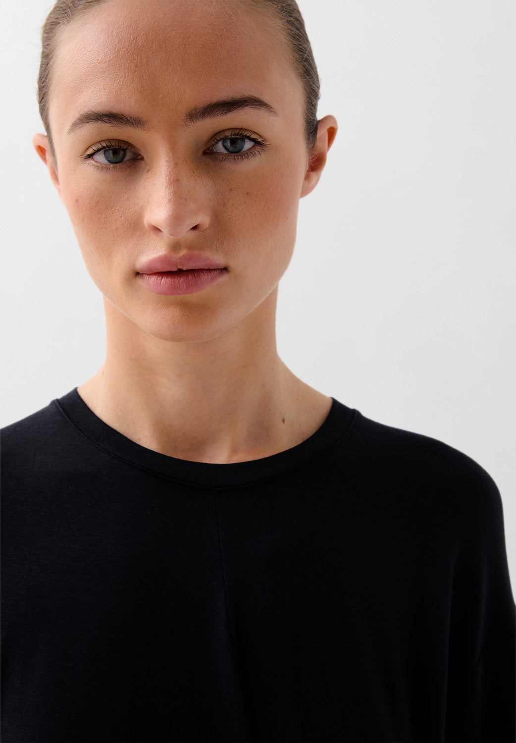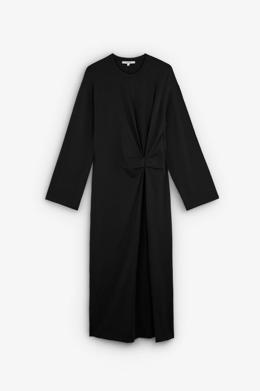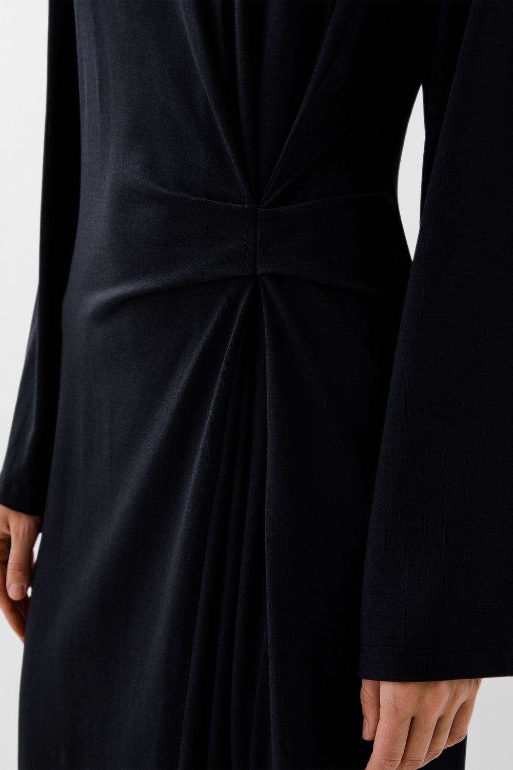 Flowing dress made of a slightly stretchy floaty material. Regular fit, round neck and long sleeves. Knot detail at the waist.