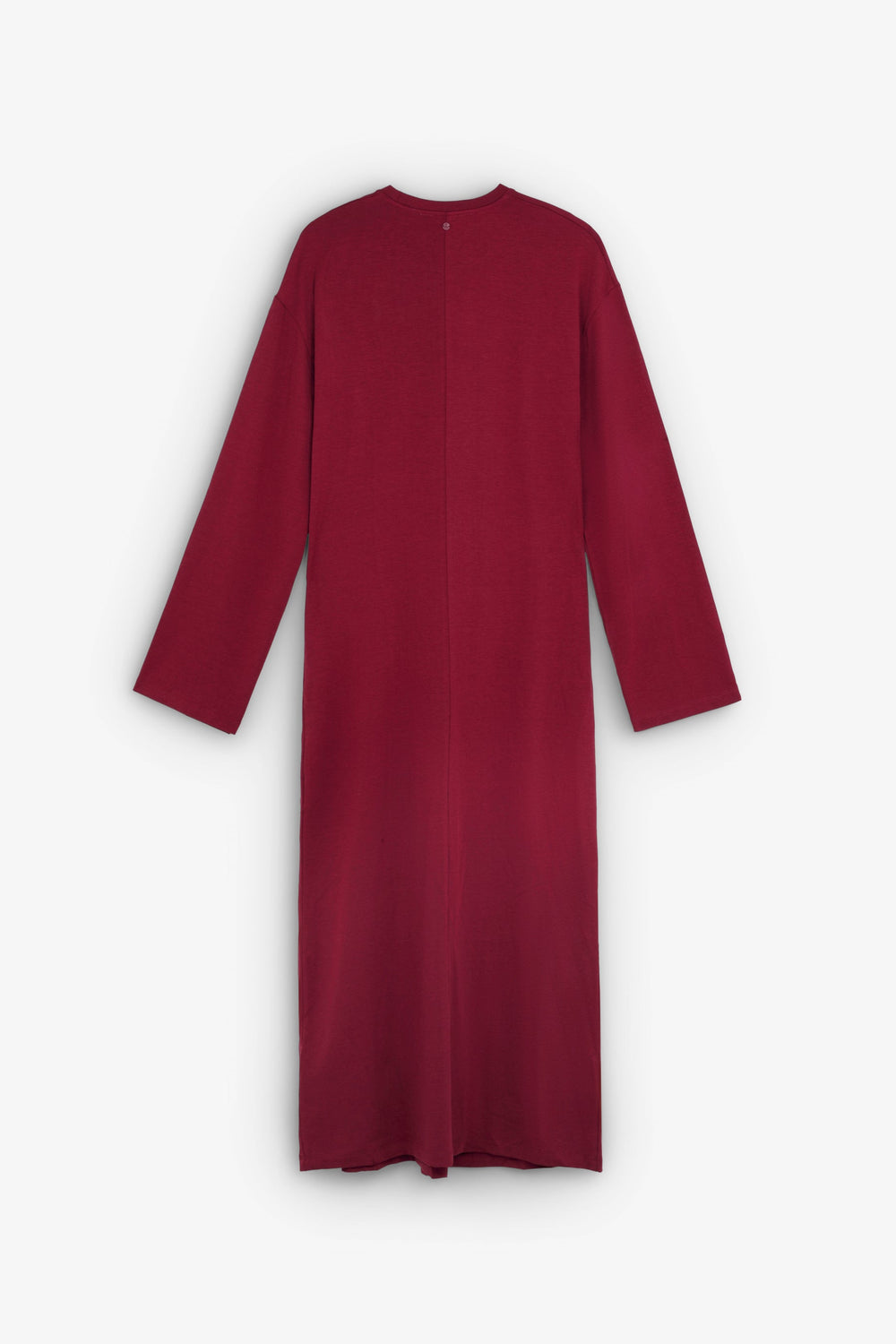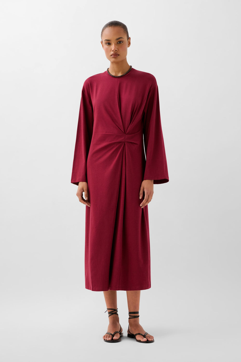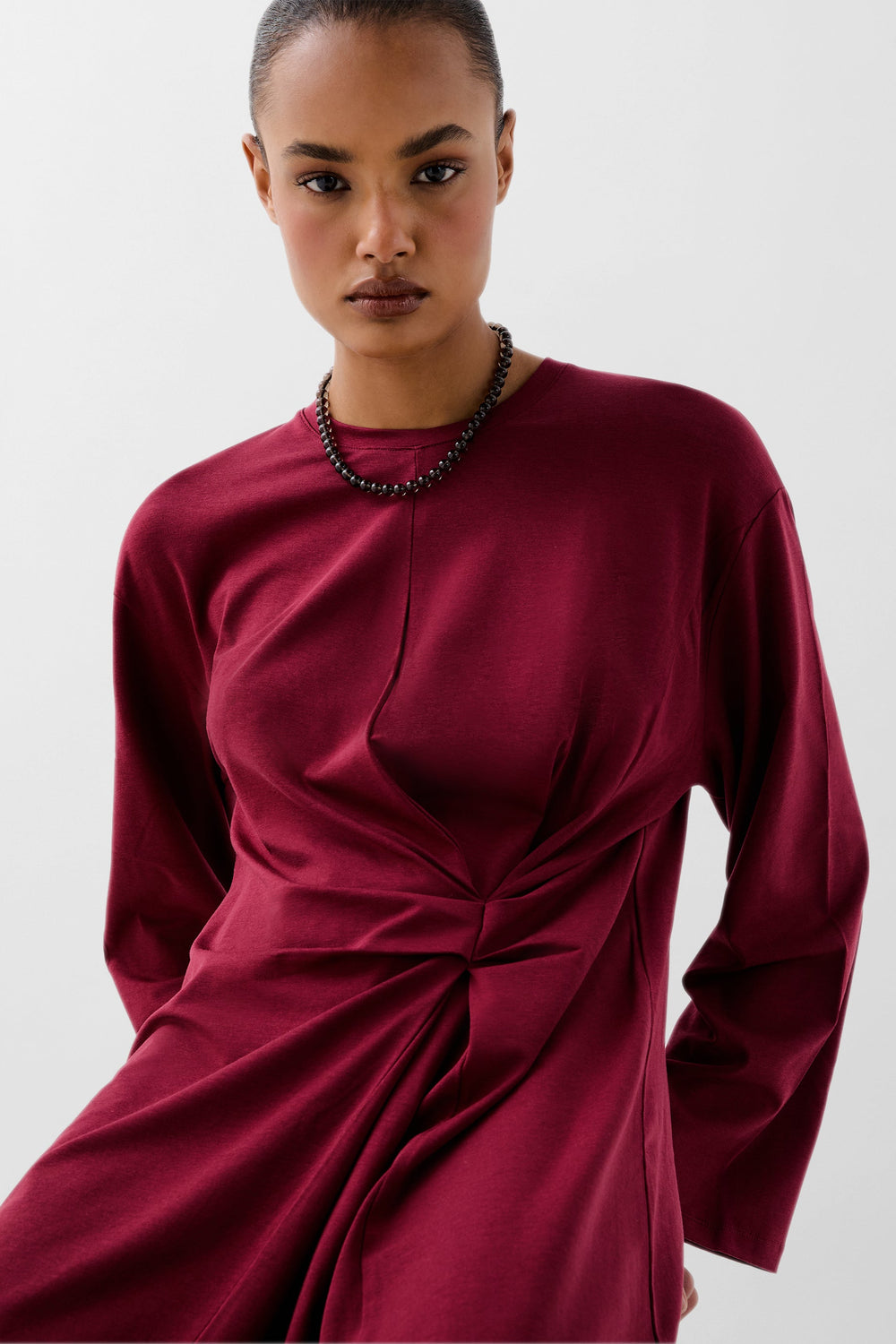 Flowing dress made of a slightly stretchy floaty material. Regular fit, round neck and long sleeves. Knot detail at the waist.