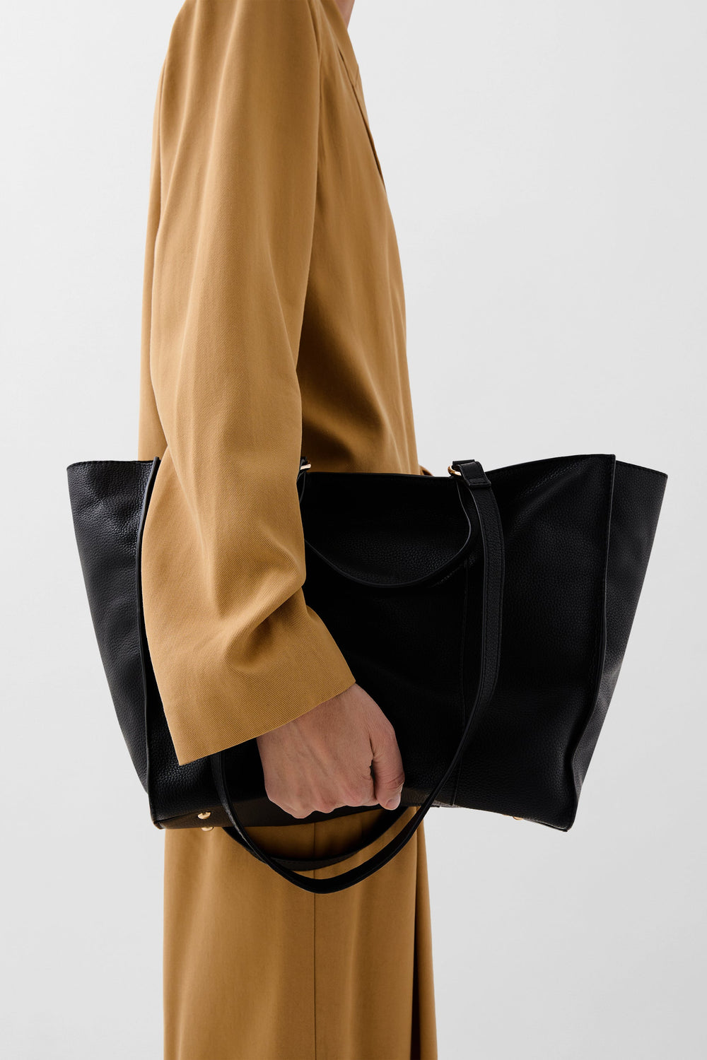 Bolso Shopper confeccionado en en piel sintética. Cierre con cremallera, Asa corta y asa larga.