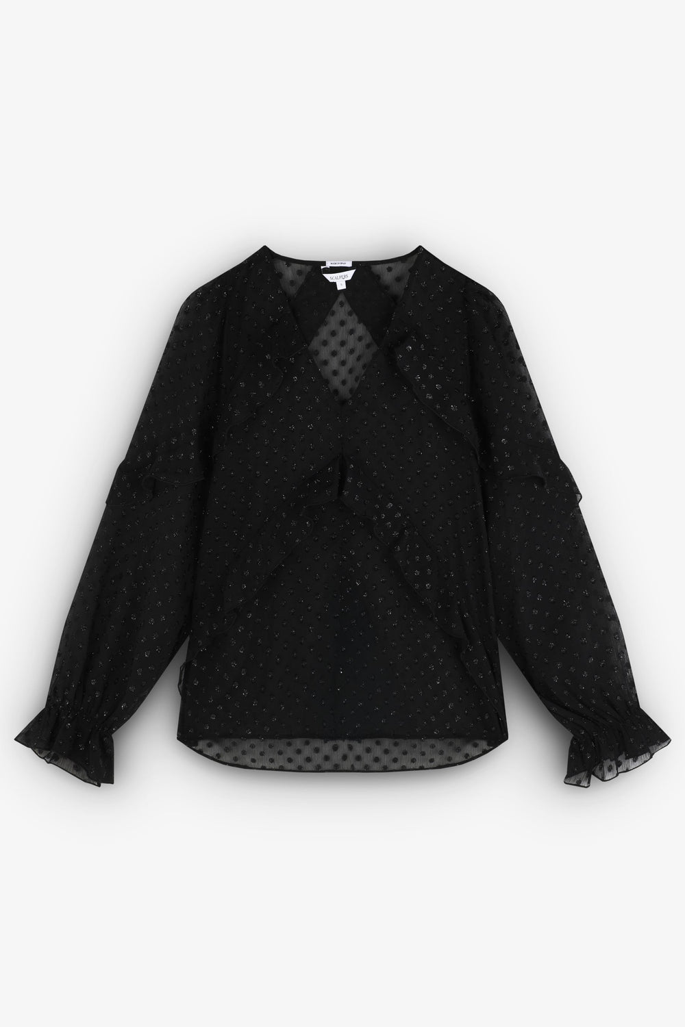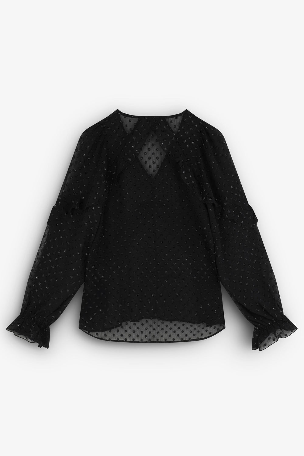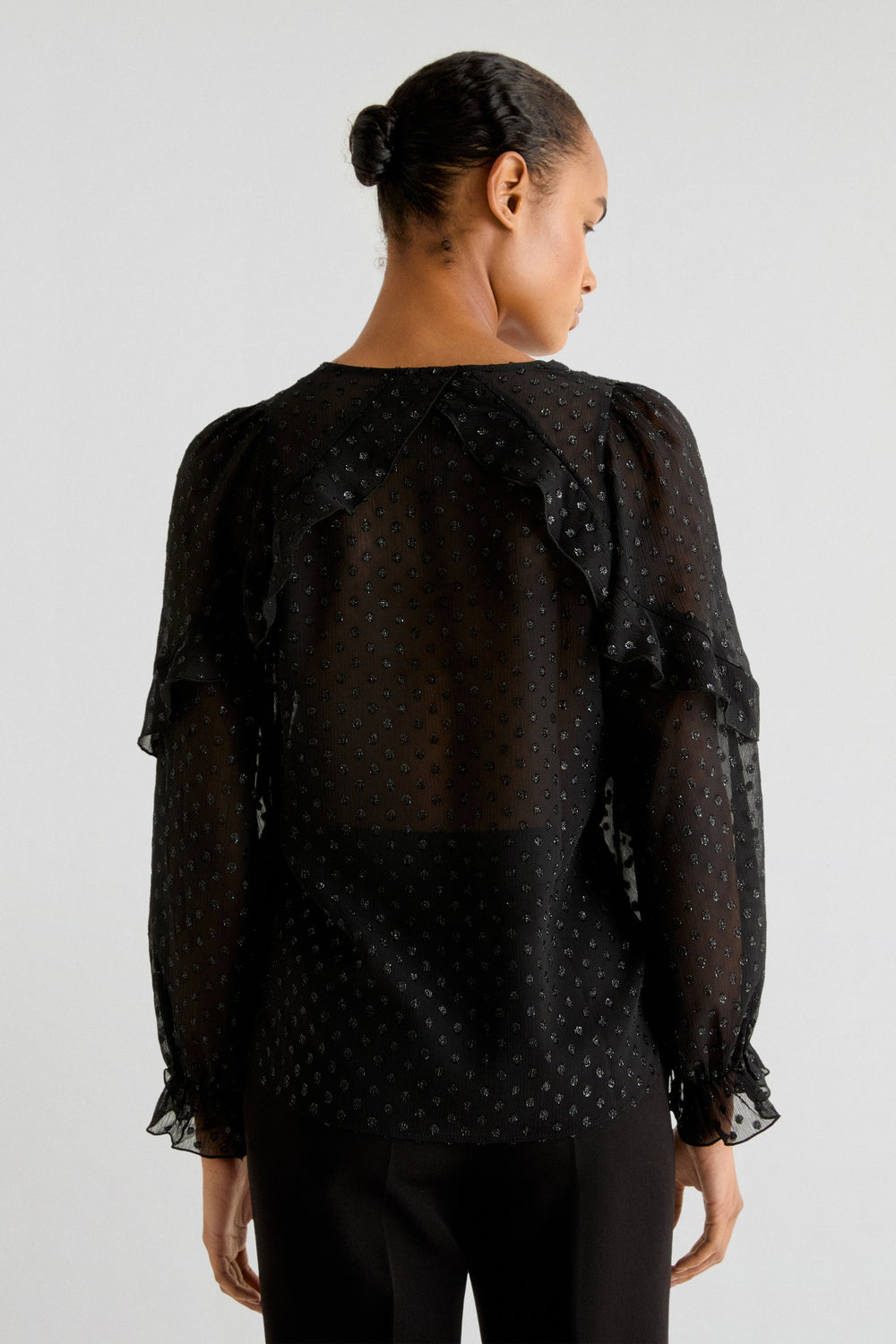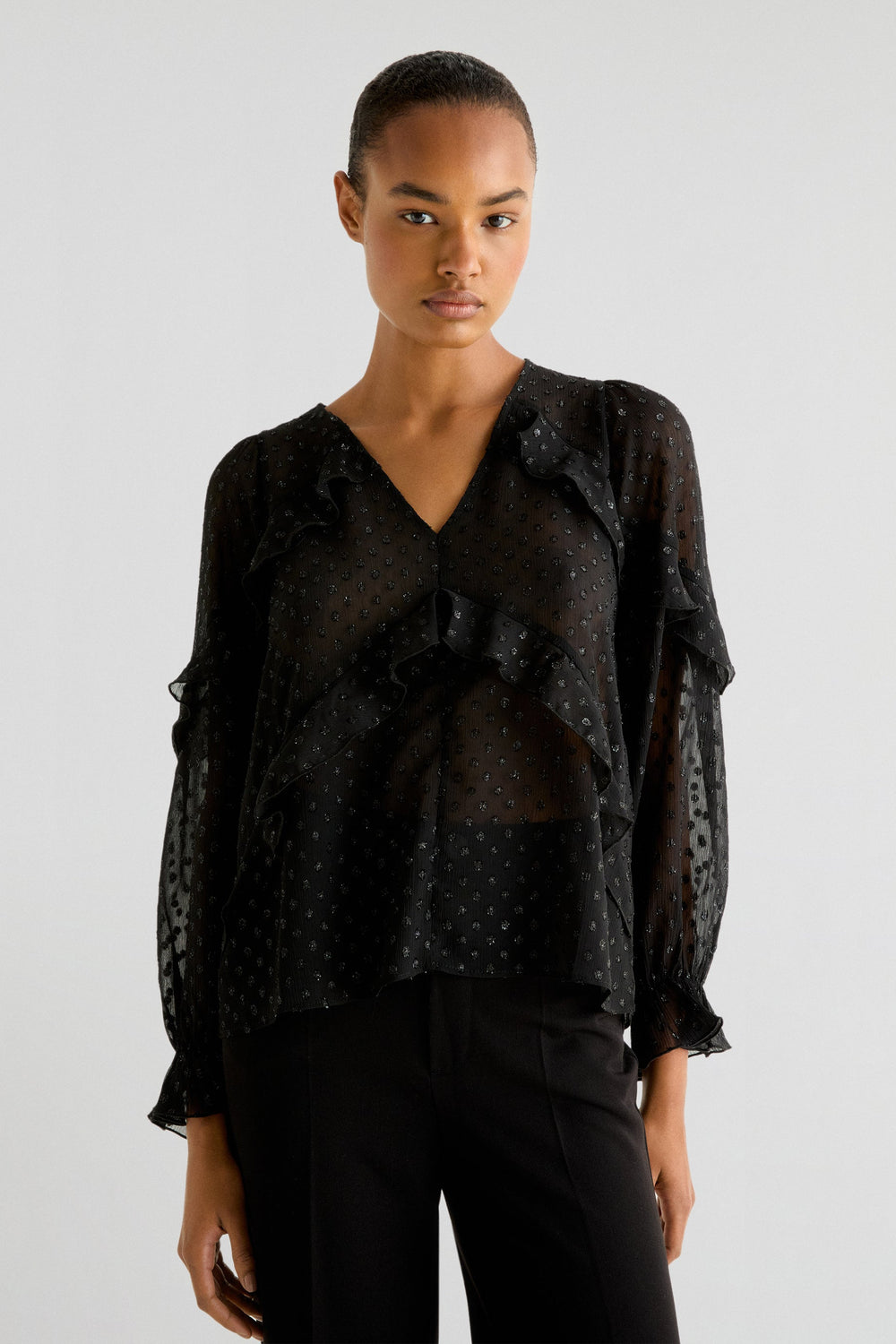 SHIMMERY SEMI-SHEER BLOUSE WITH RUFFLES