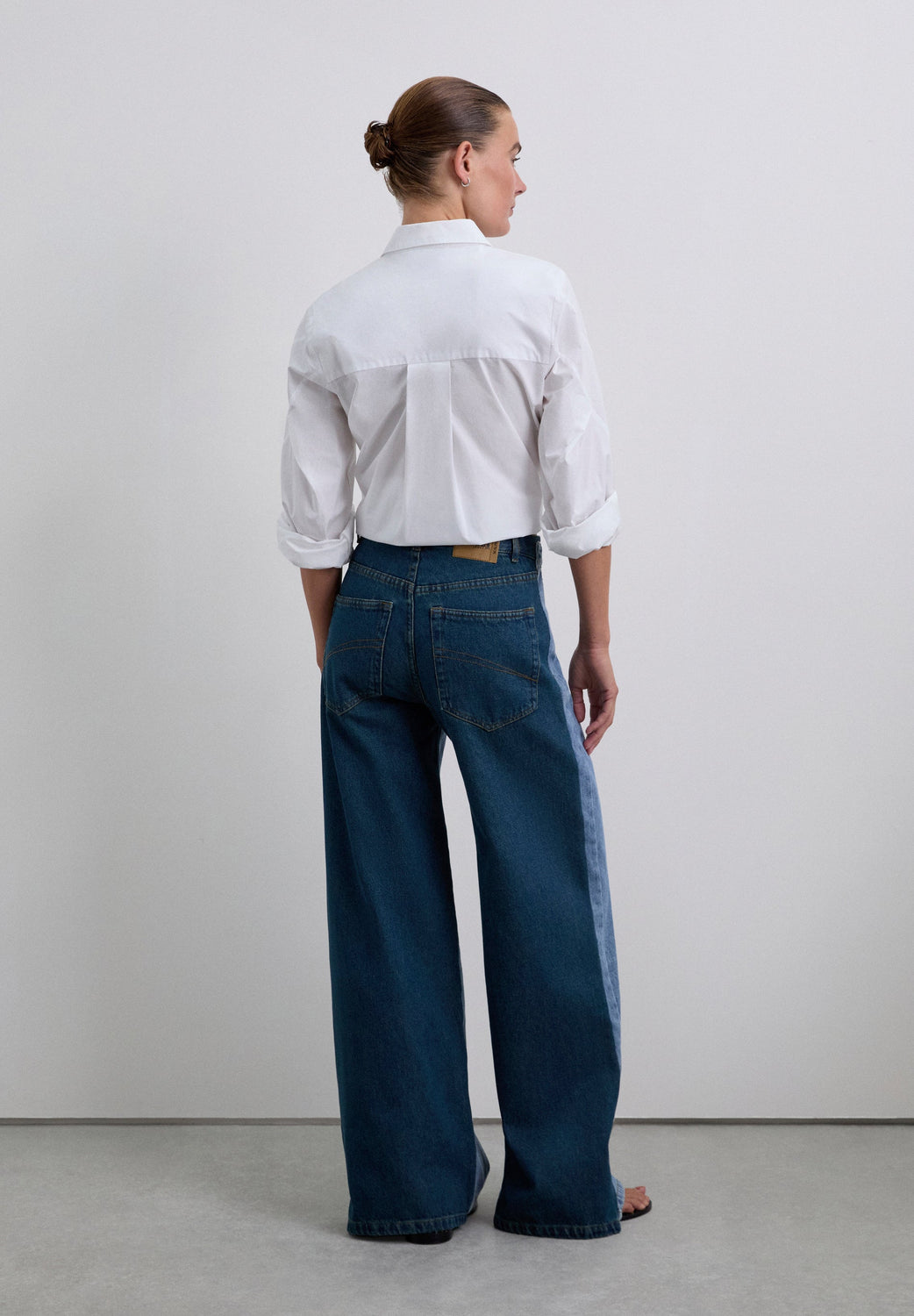Denim trousers made of 100% cotton. regular fit, two-tone, zip and button fastening, belt loops, five pockets.