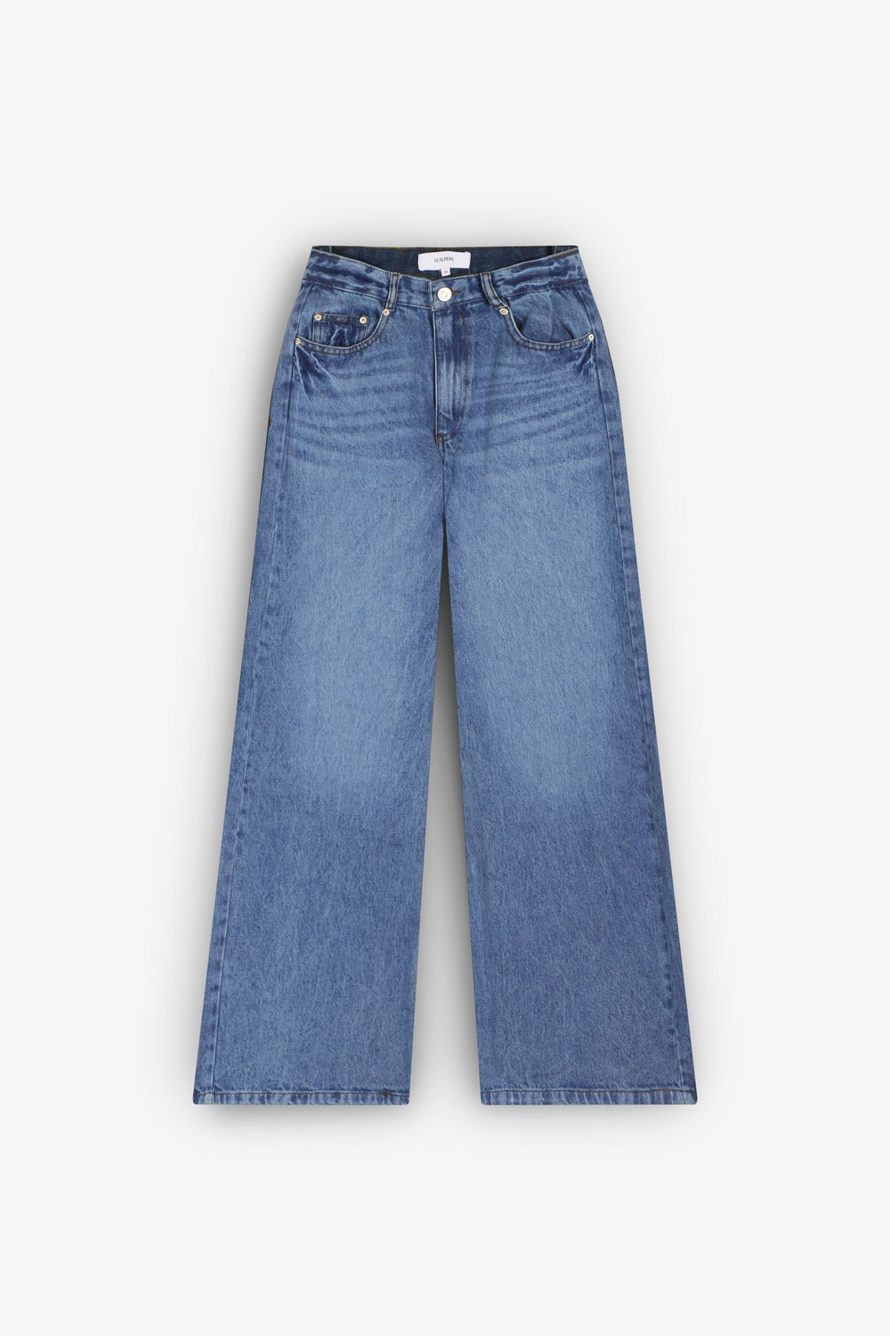 Pantalón denim confeccionado en algodón 100%. corte regular fit, bicolor, cierre con cremallera y botón, trabillas en cintura, cinco bolsillos.