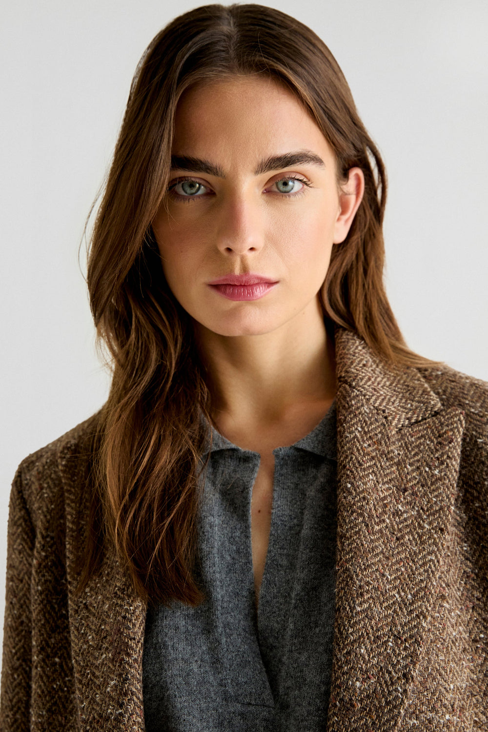 Herringbone coat made of a wool blend. Regular fit, peaked lapel collar and button fastening. Long sleeves with buttoned cuffs and a back vent at the hem.