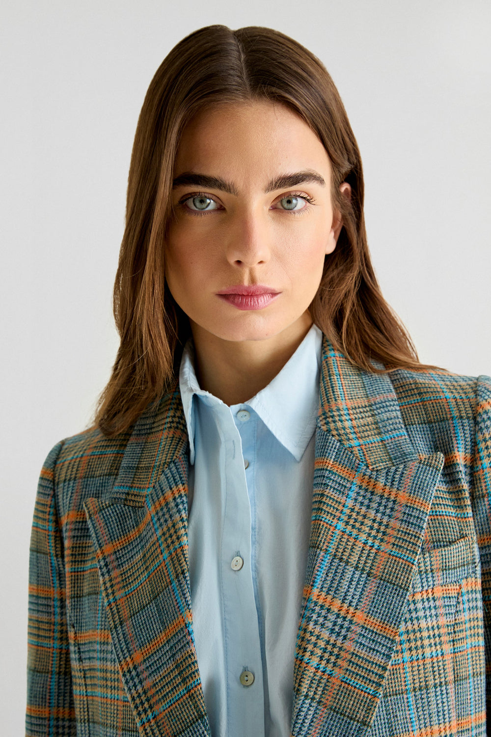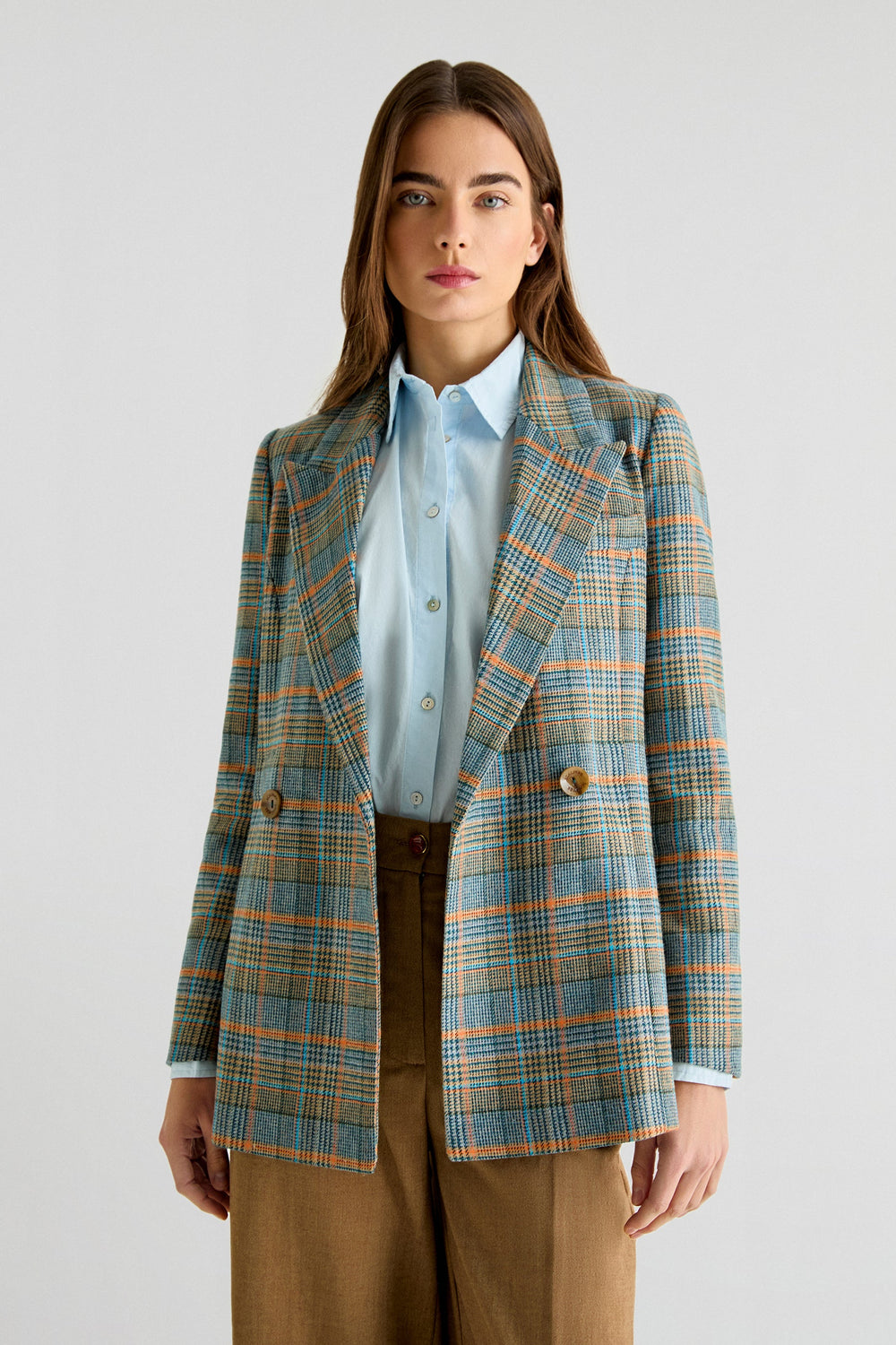 Check blazer in a wool blend. Regular fit, peaked lapel collar and button fastening. Long sleeves.