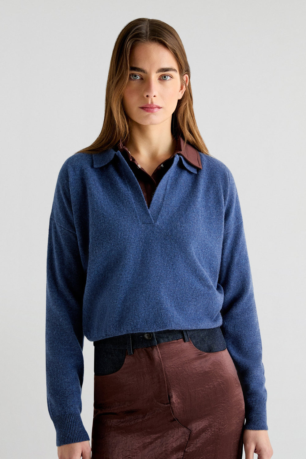 WOOL BLEND POLO SHIRT-STYLE SWEATER