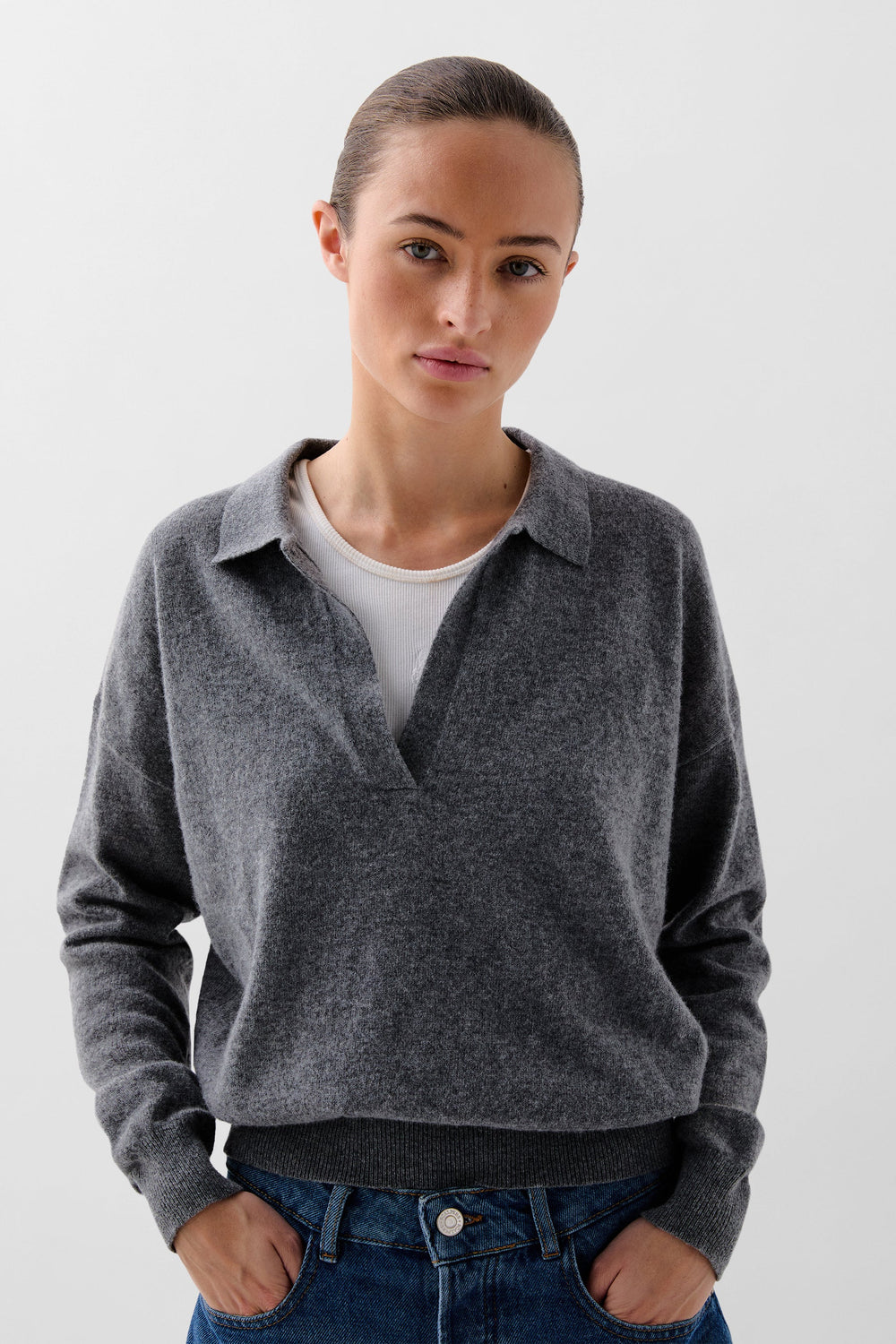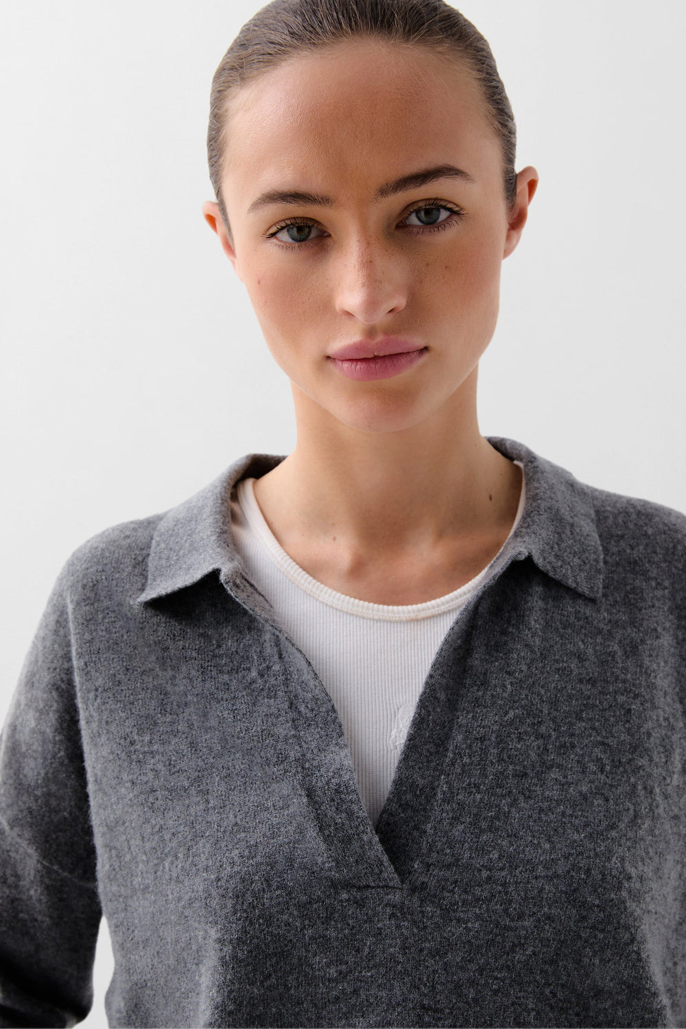WOOL BLEND POLO SHIRT-STYLE SWEATER