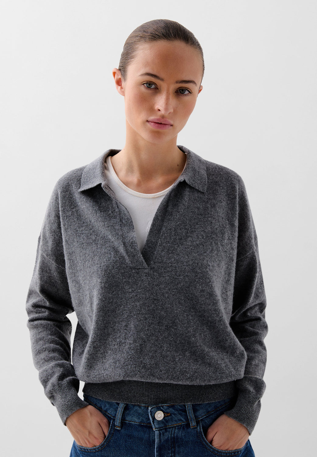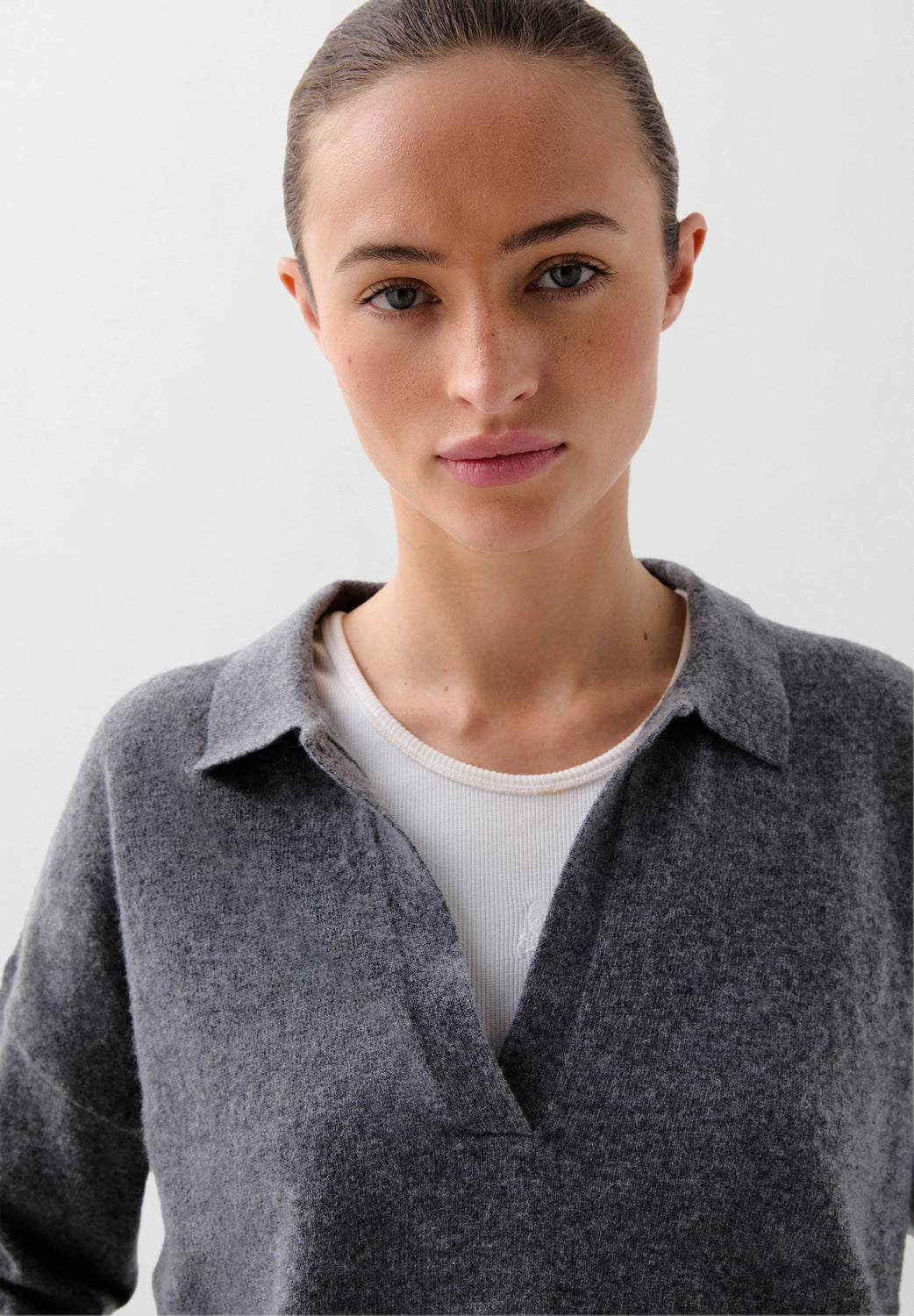 Polo shirt-style sweater made from a wool blend. Regular fit, V-neck and long sleeves.