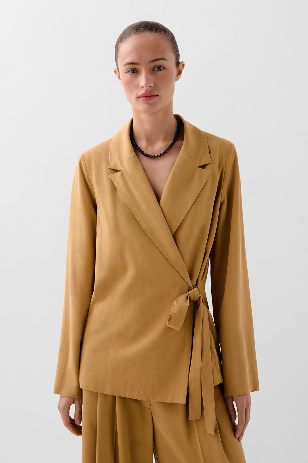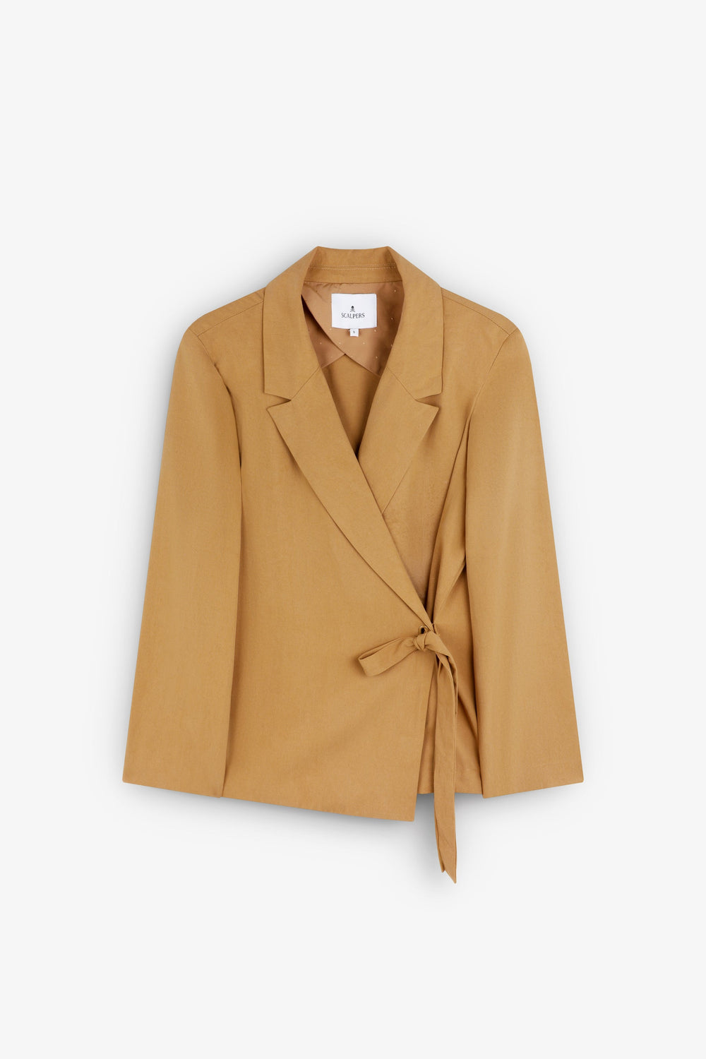 Blazer made of cotton. Crossover fastening. Knot detail in the shape of a bow. Lapel collar. Lined. Fitted. This garment is part of a set.