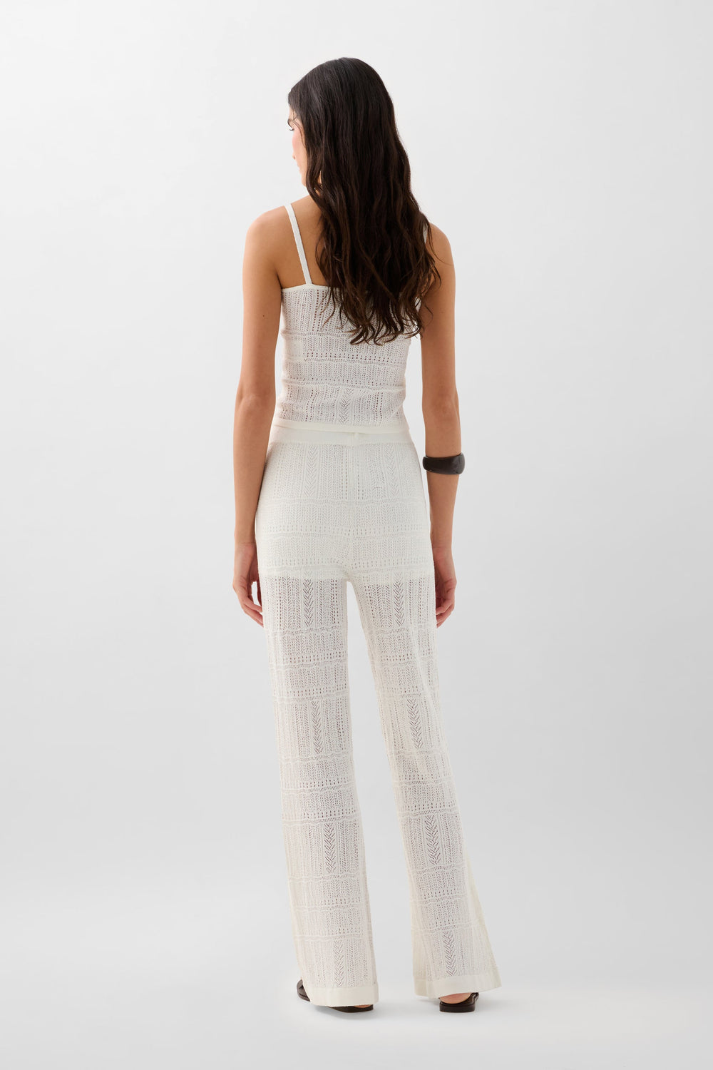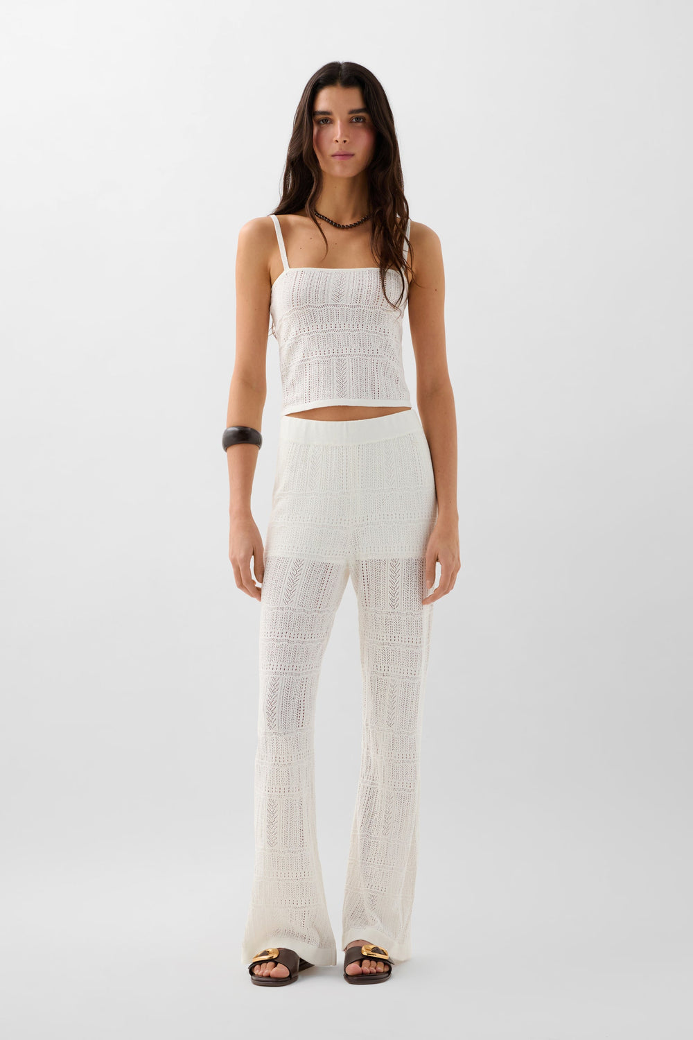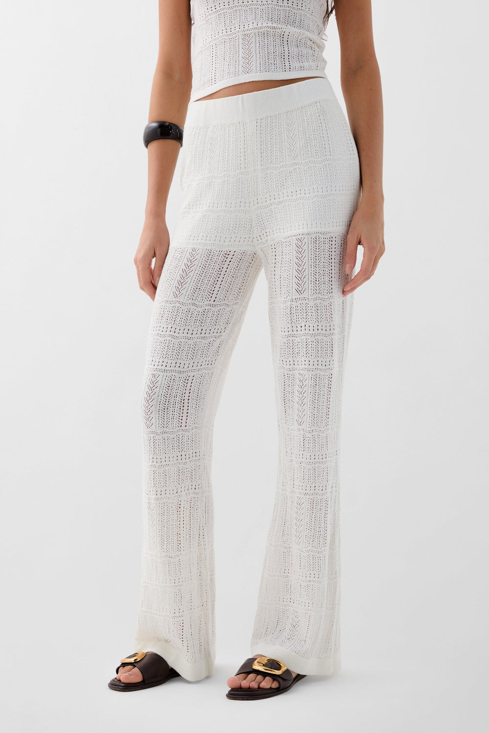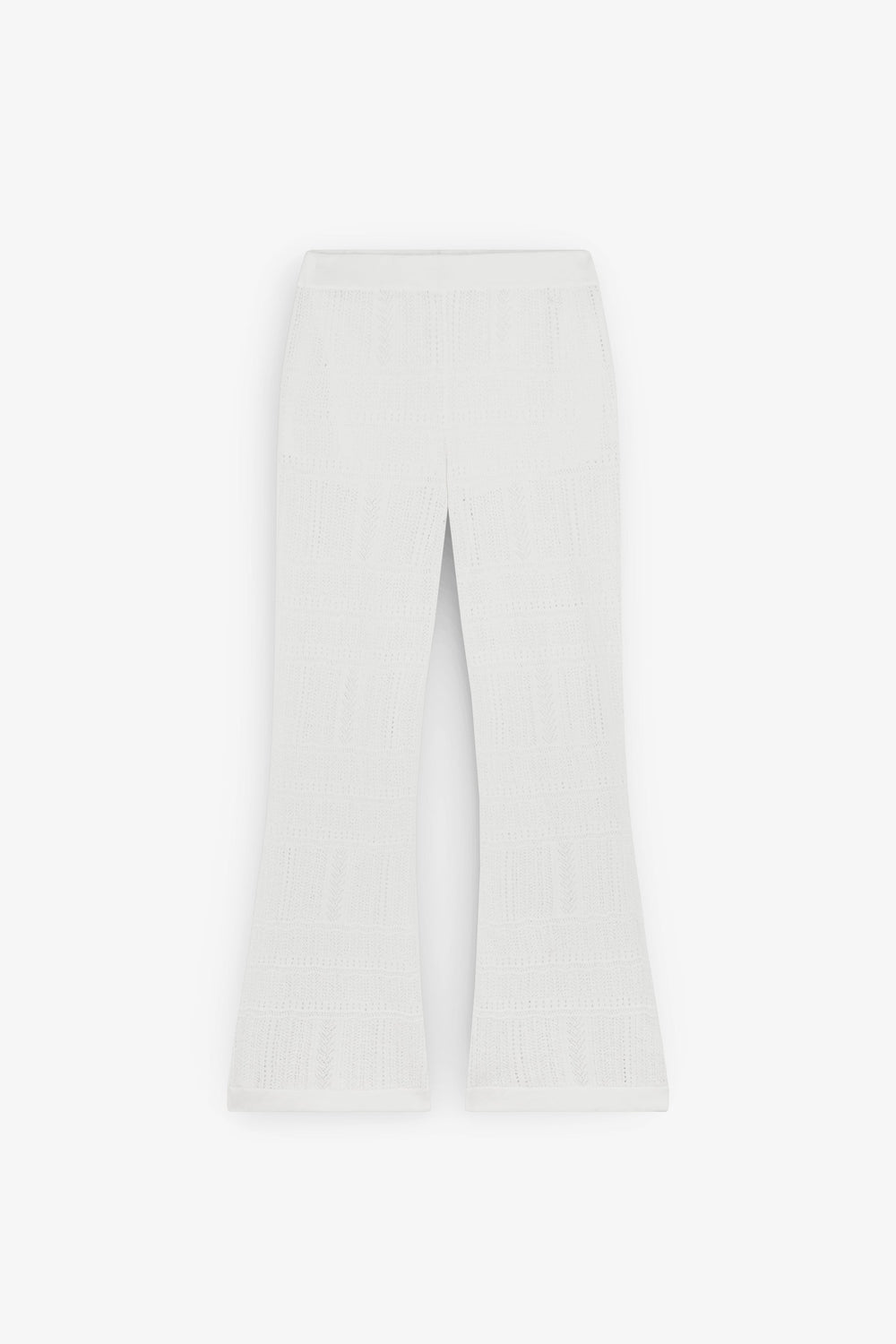 Pointelle trousers. Flared. Lined. Ribbed trim.