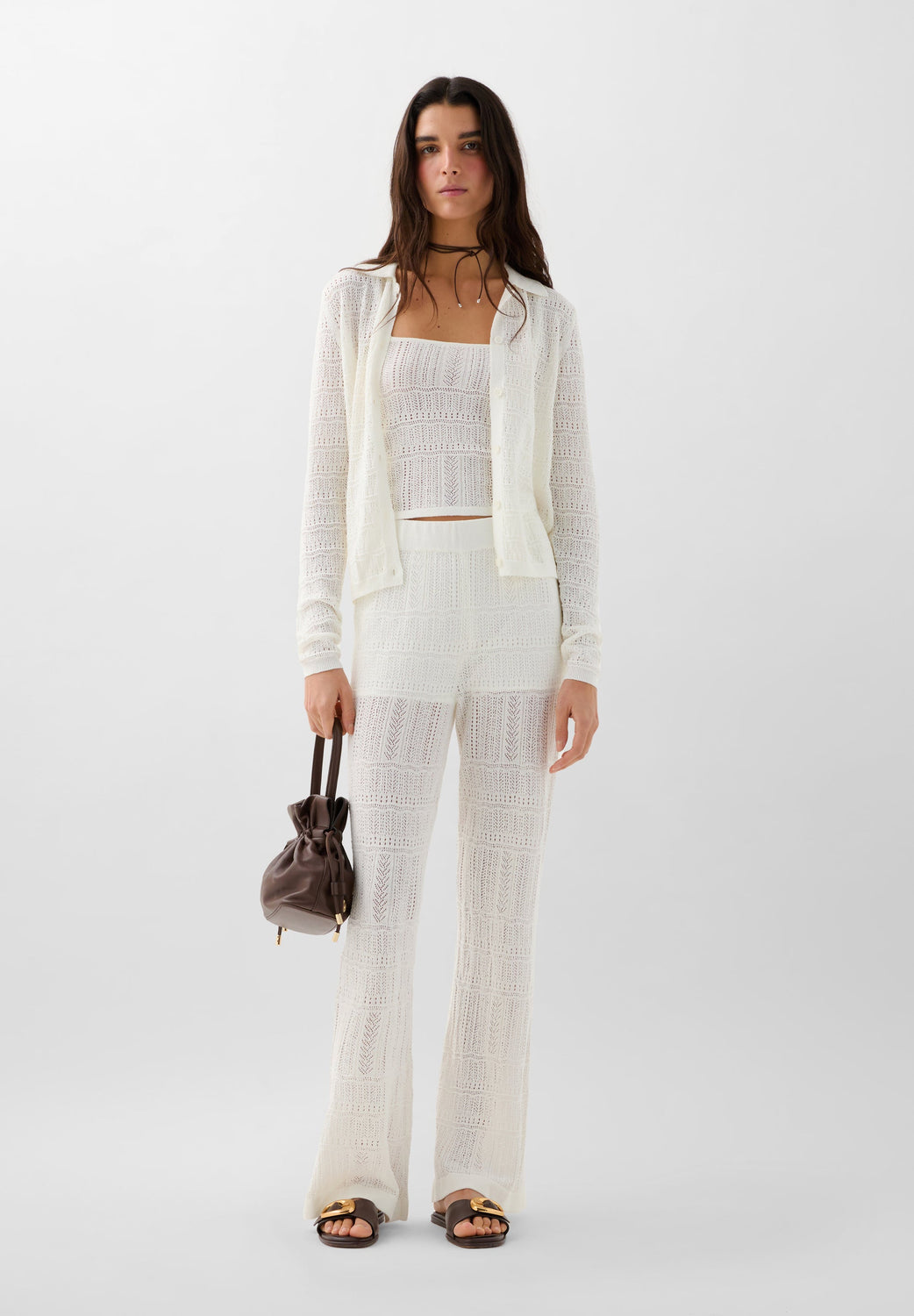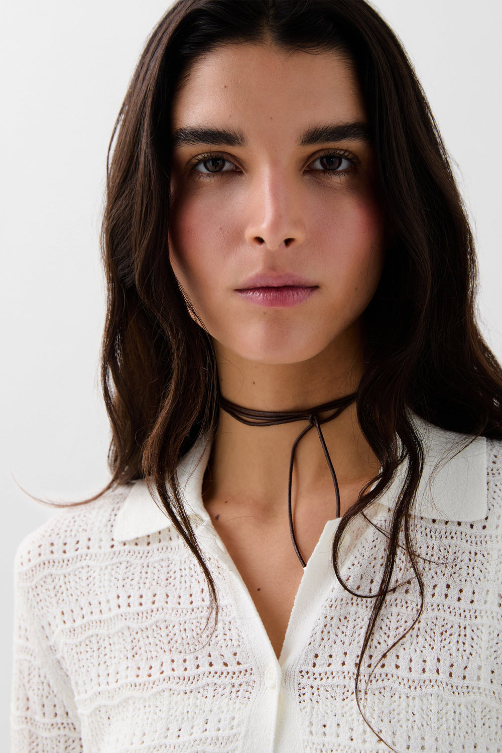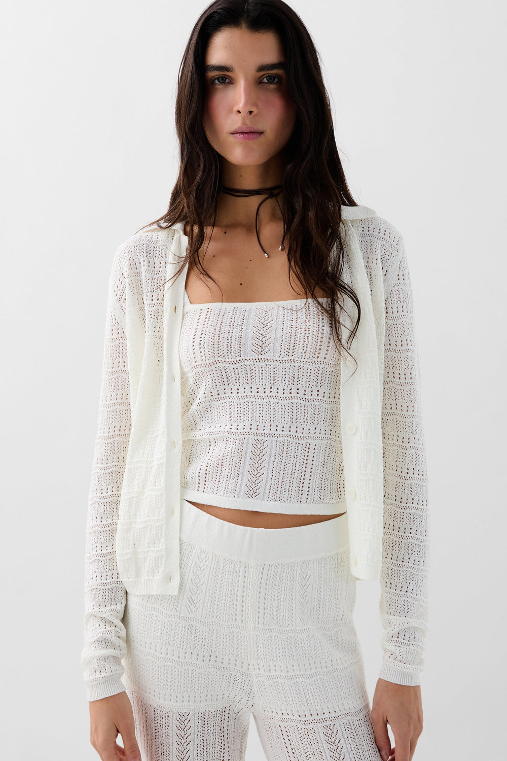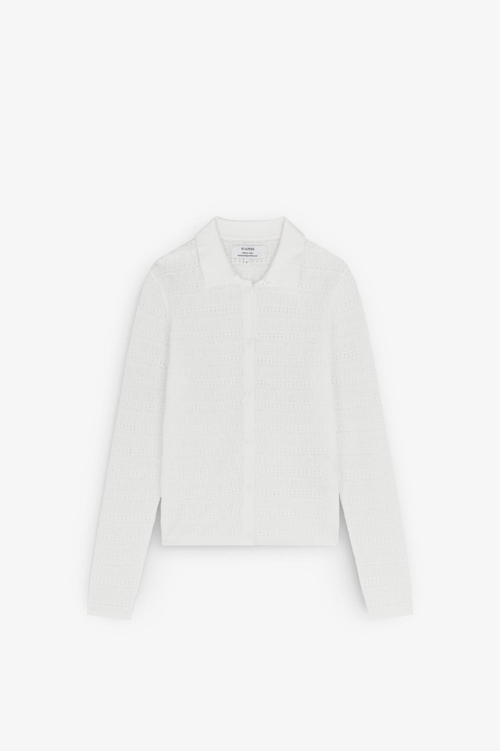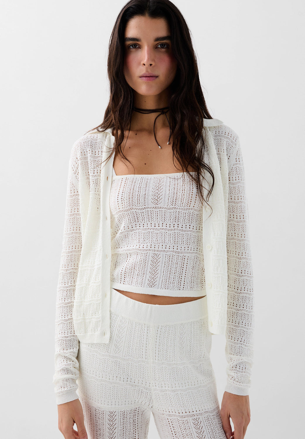 Linen cardigan. Front button fastening. Shirt collar. Long sleeves.