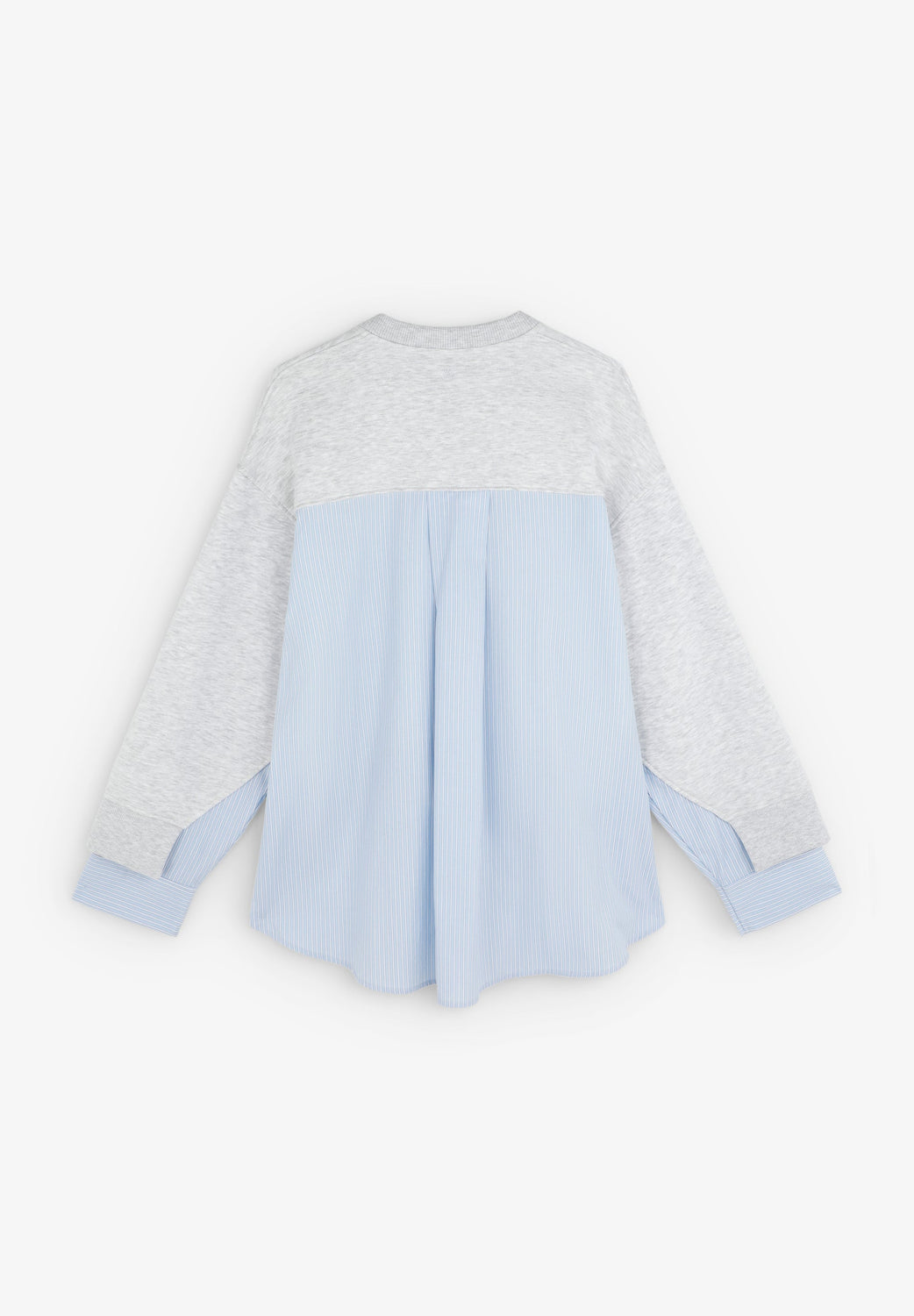 Cotton-blend sweatshirt with striped shirt back. Regular fit with side slits and slightly longer back. Round neck with long sleeves with ribbed cuffs and shirt cuffs underneath.