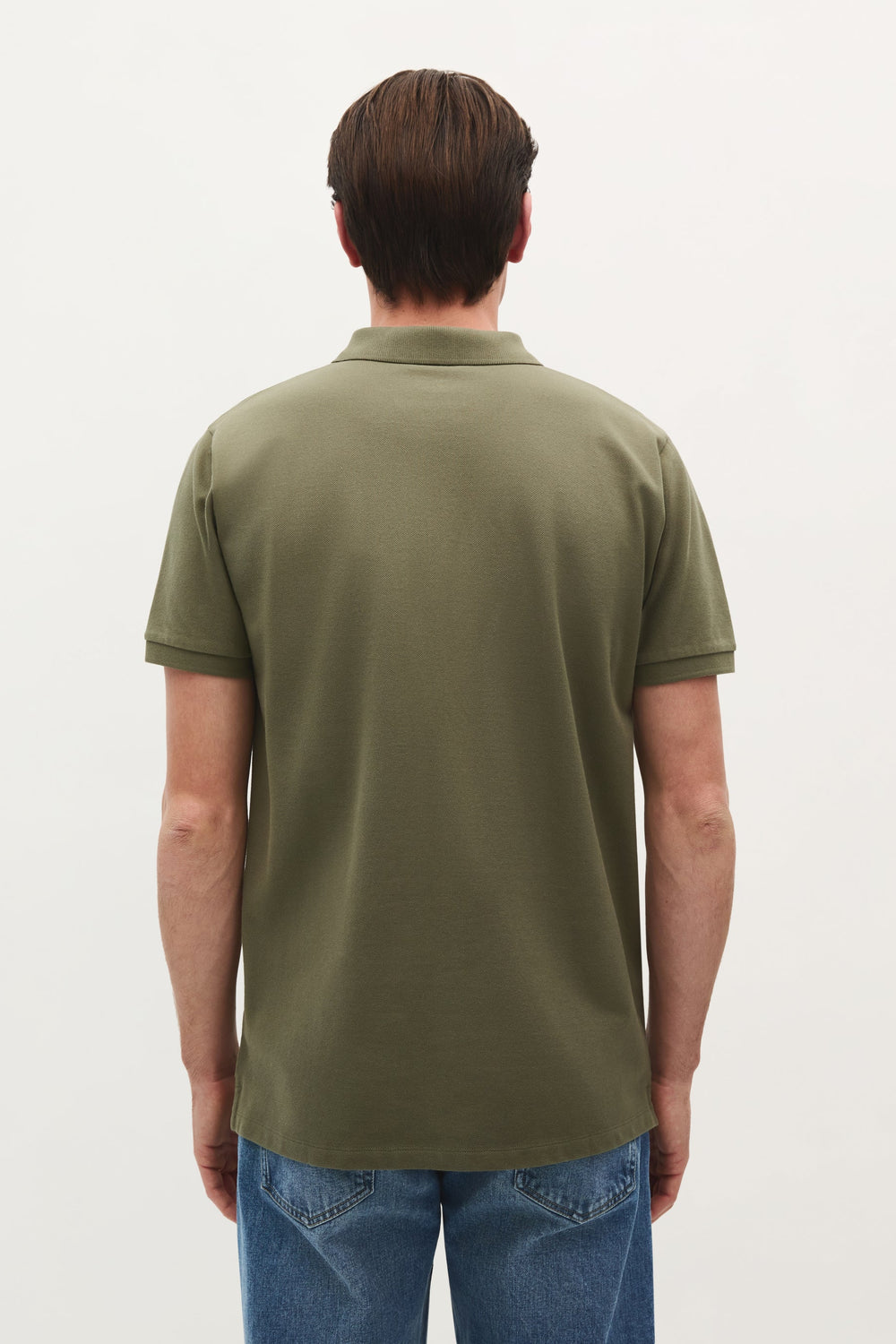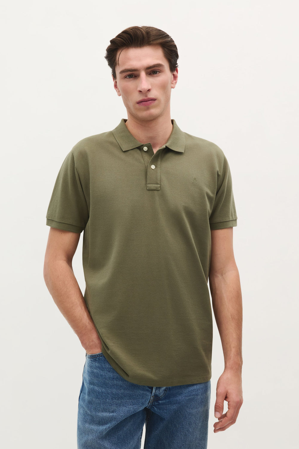 100% Organic Cotton piqué polo shirt. Regular fit.  Button placket Ribbed stitch finish. Logo detail on the chest