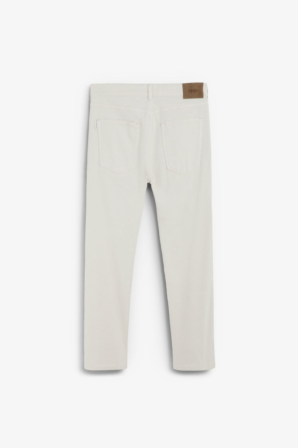Cotton corduroy trousers. Cropped fit. Front zip and button fastening. Side and back pockets. Belt loops at the waist. Logo detail on the back waistband.