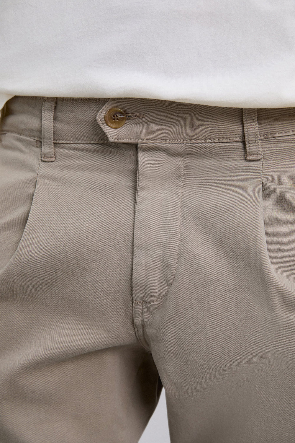 Trousers made of BCI cotton. With darts. Side pockets. Pockets at the back. Front zip and button fastening.