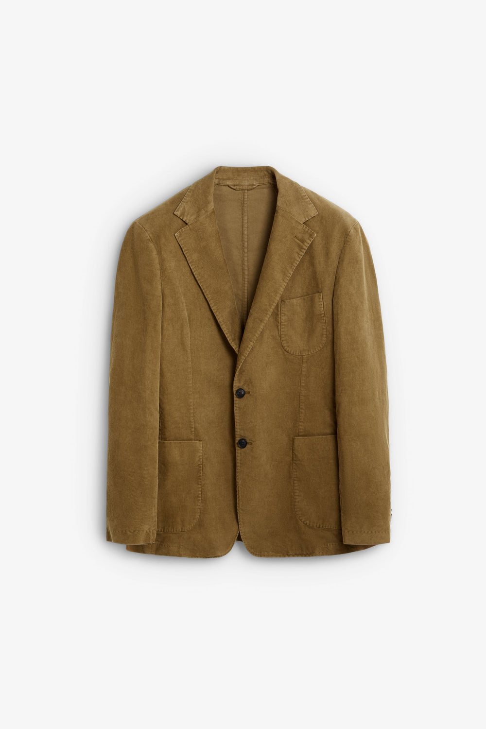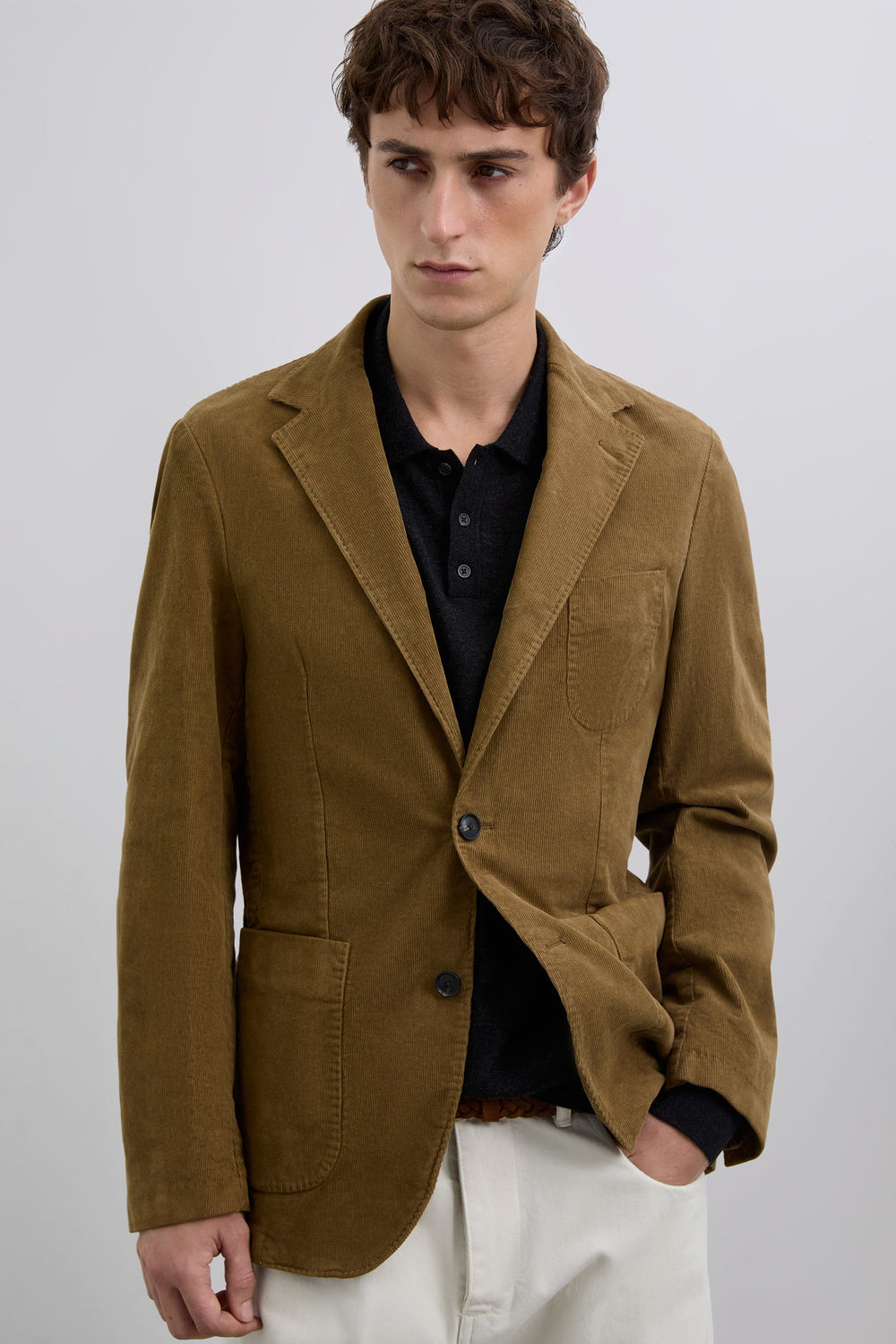Corduroy blazer made of cotton. Regular Fit. Notched lapel collar. Front button fastening. Long sleeves with buttoned cuffs. Patch pockets.