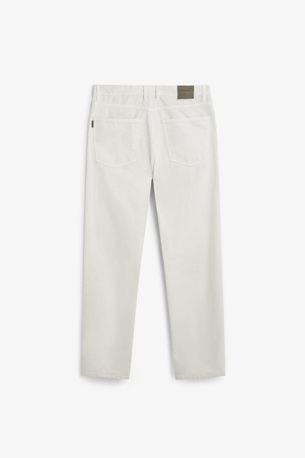 Straight trousers made of 100% cotton. Front and back pockets. Button and zip fastening. Belt loops at the waist. Logo label details on the belt and pocket.