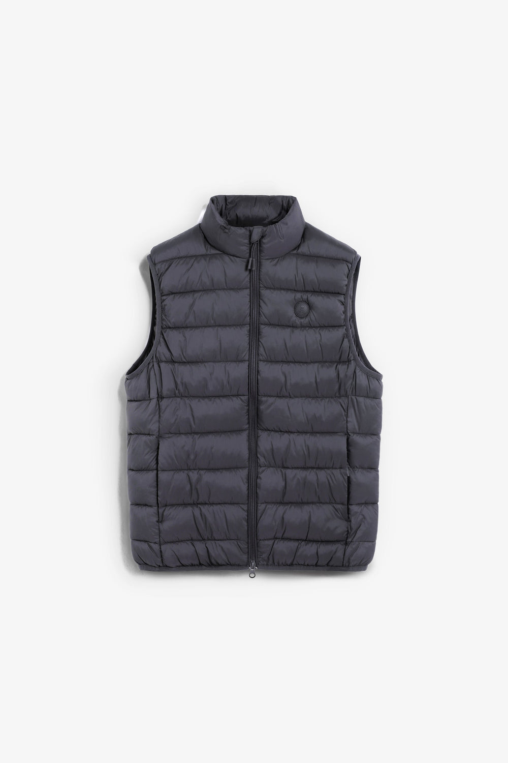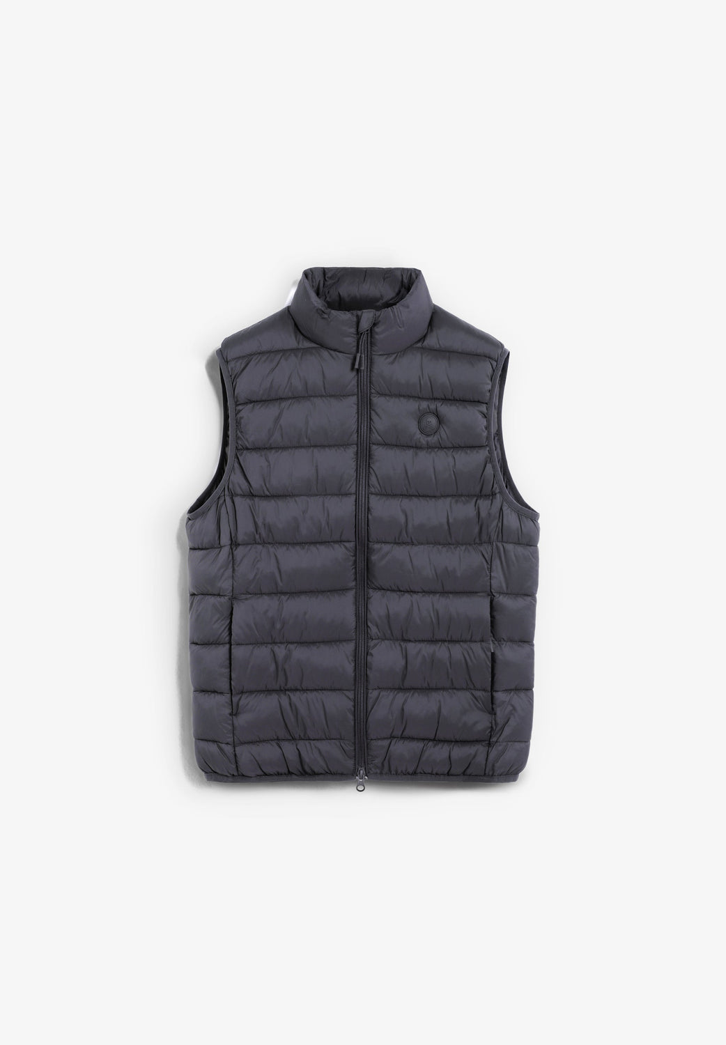Puffer vest. Water repellent. Inner lining made of technical fabric. Concealed side pockets with fleece lining. Engraved double slider zip fastening. Rubberised patch with matching logo on chest.