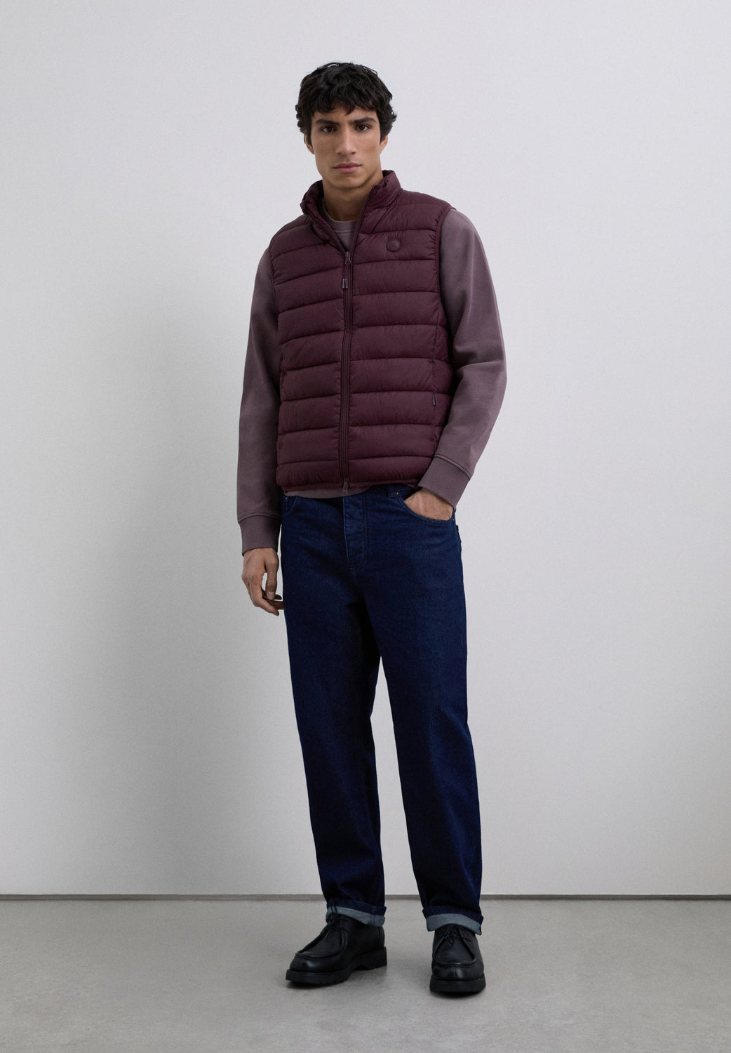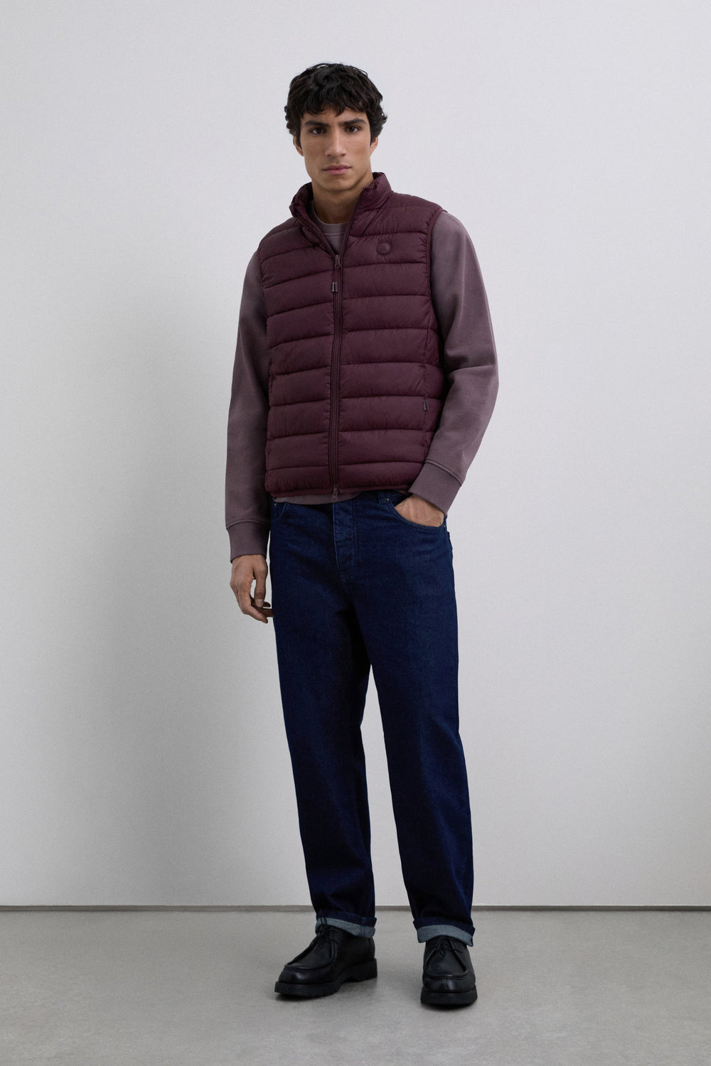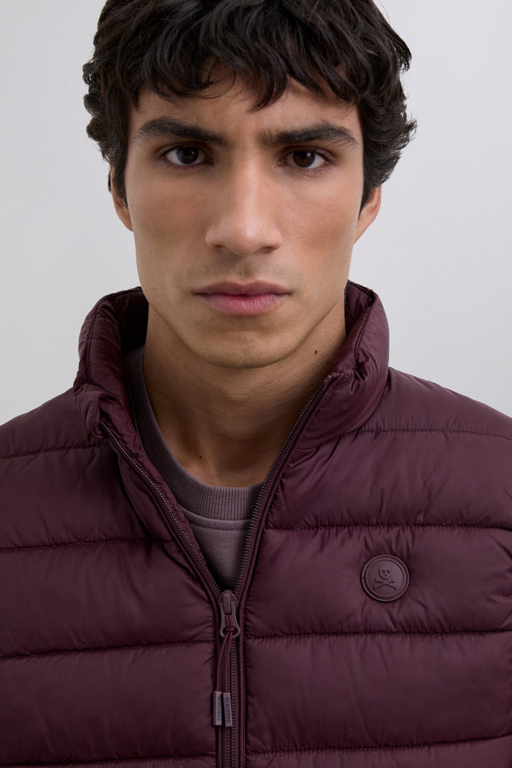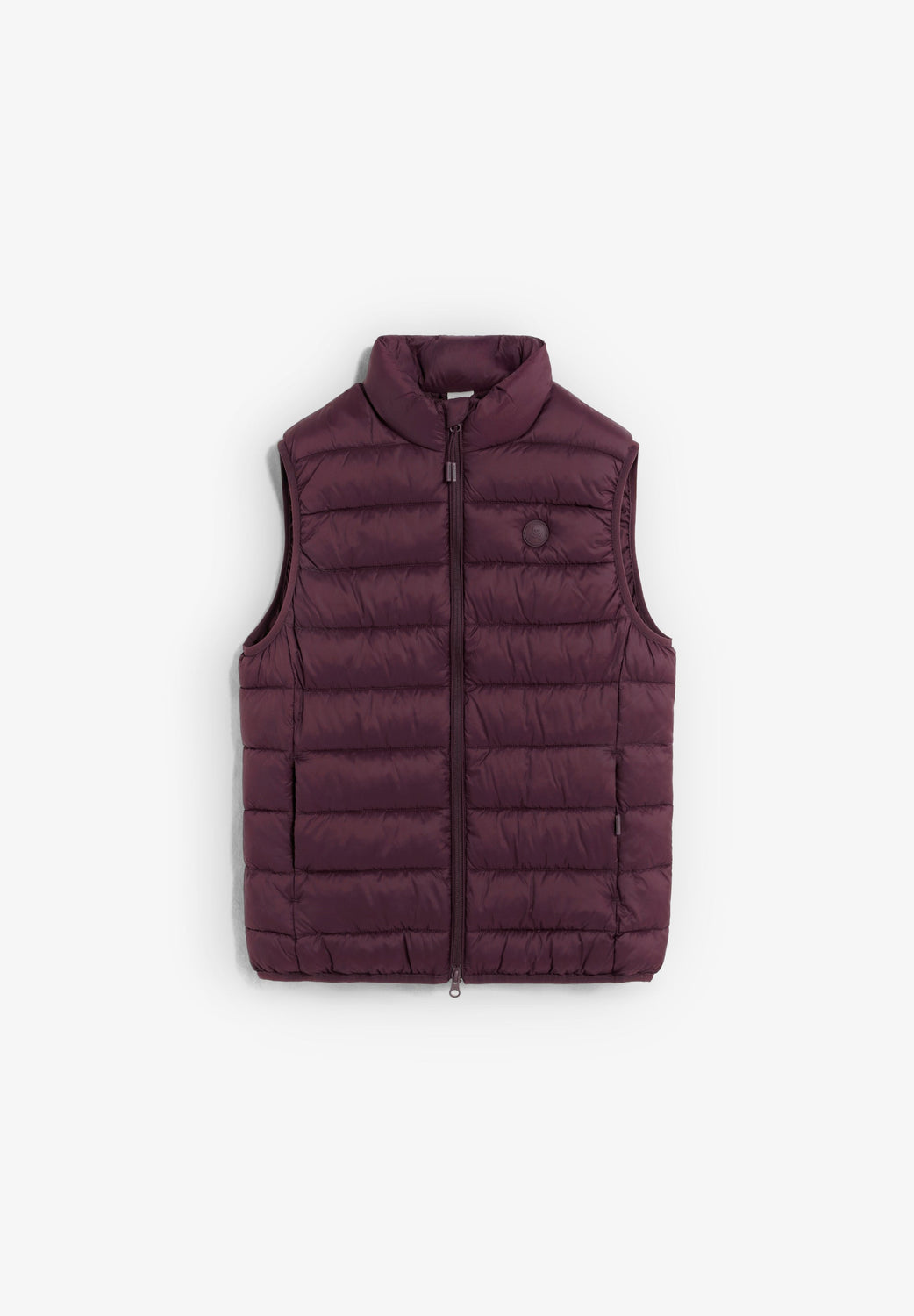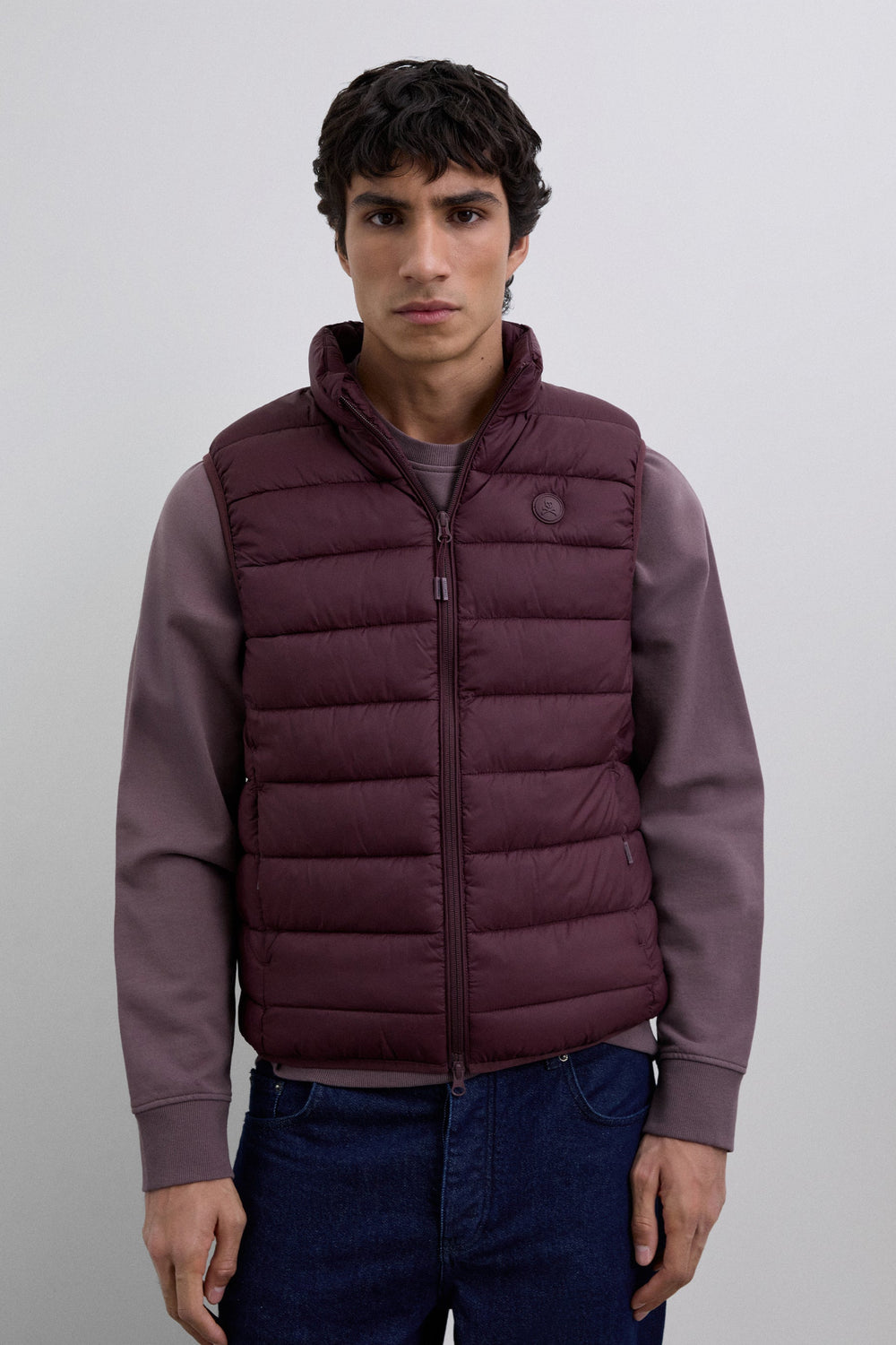 Puffer vest. Water repellent. Inner lining made of technical fabric. Concealed side pockets with fleece lining. Engraved double slider zip fastening. Rubberised patch with matching logo on chest.