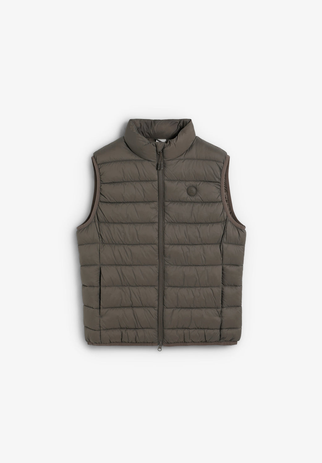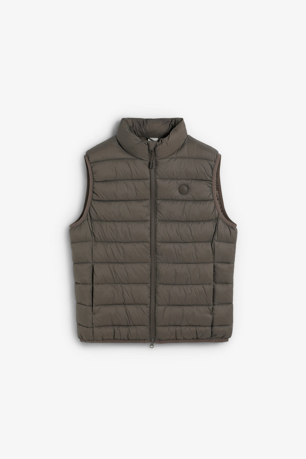 Puffer vest. Water repellent. Inner lining made of technical fabric. Concealed side pockets with fleece lining. Engraved double slider zip fastening. Rubberised patch with matching logo on chest.
