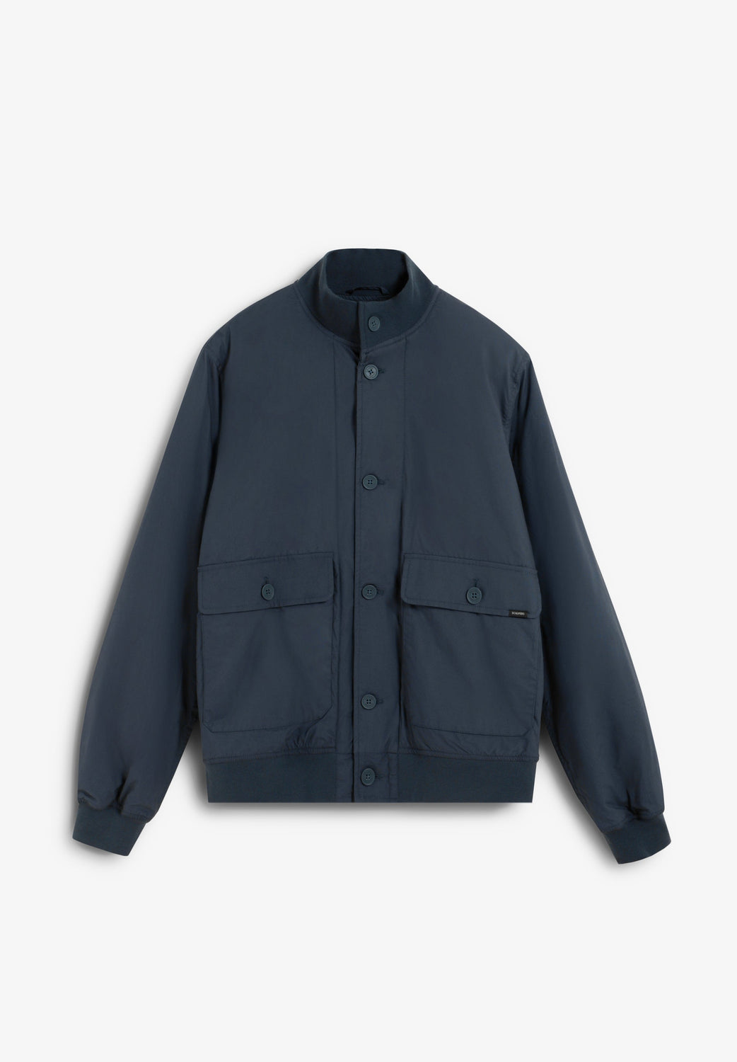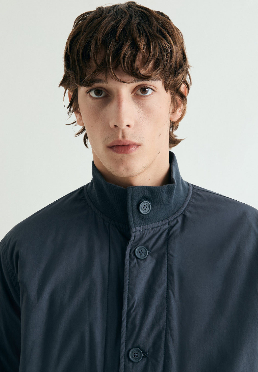 Jacket made of 100% BCI cotton. Front button fastening. Front button-up pockets. Ribbed trim. Label detail on the front left pocket