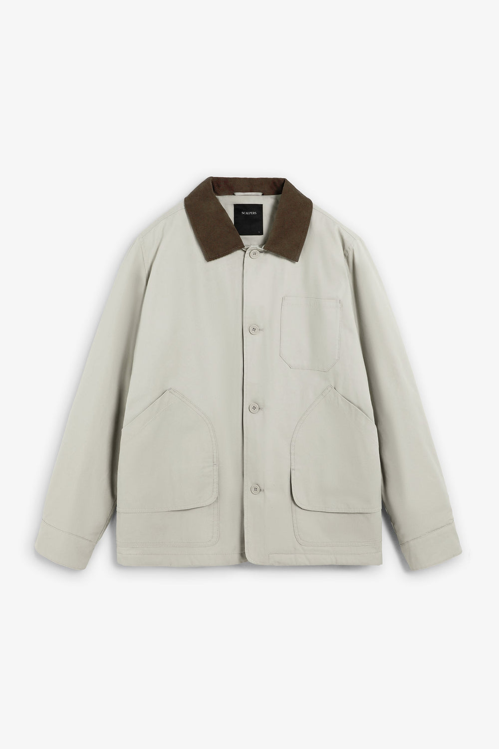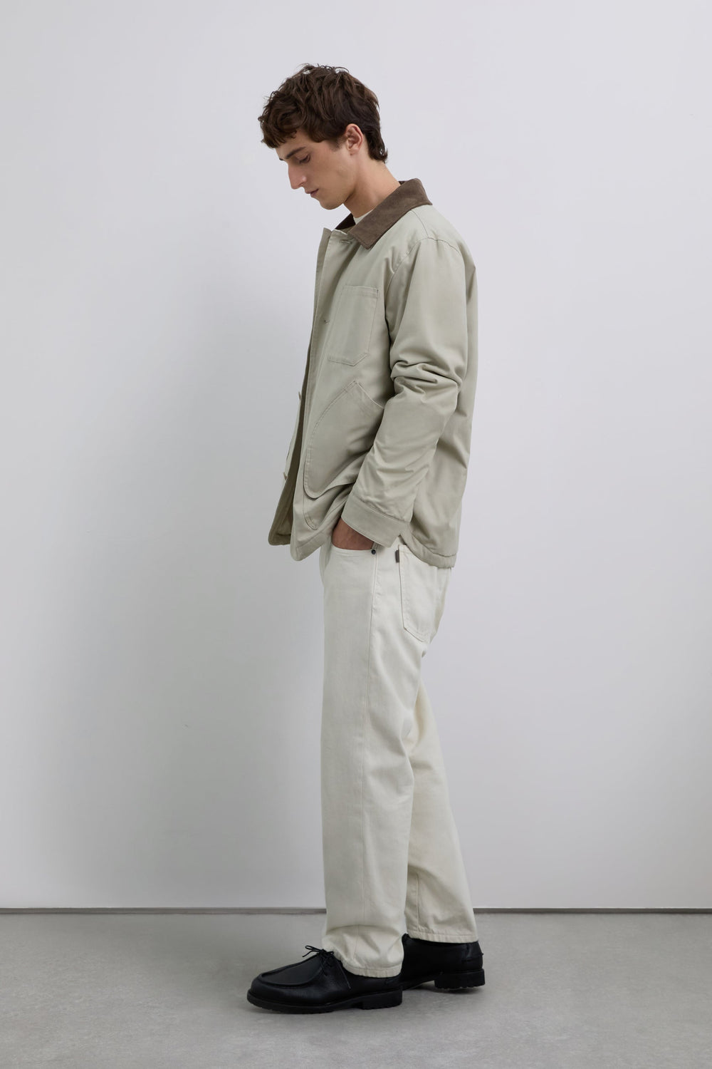 Jacket made of 100% cotton. Contrast corduroy collar. Front button fastening. Three front pockets, one patch chest pocket and two lower slanted pockets. Long sleeves. Cuffs with button fastening.