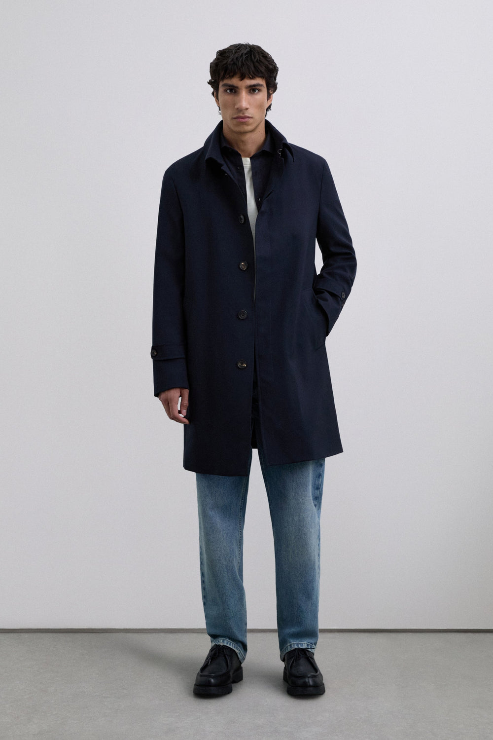 Trench coat made of 100% leather. Concealed button fastening. Adjustable buttoned cuffs. Shirt collar.