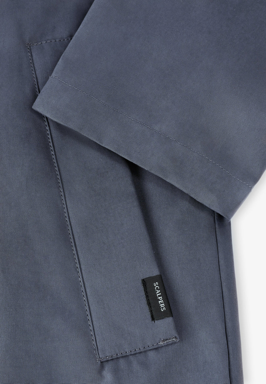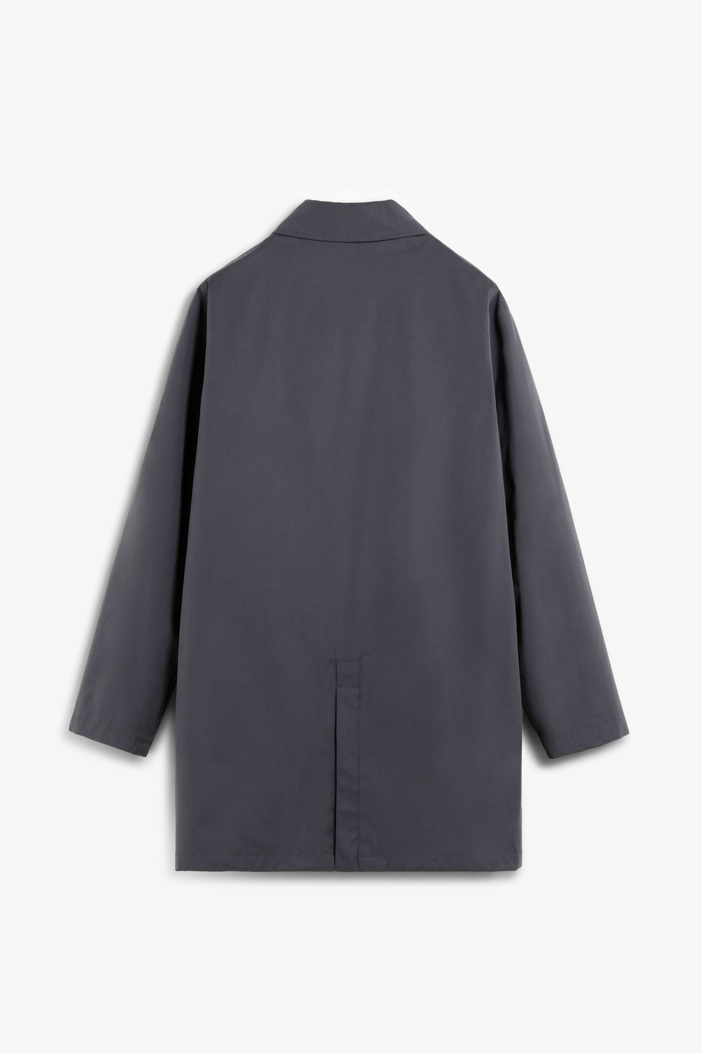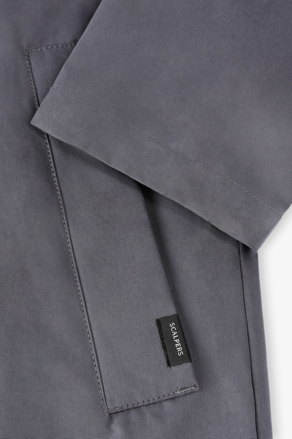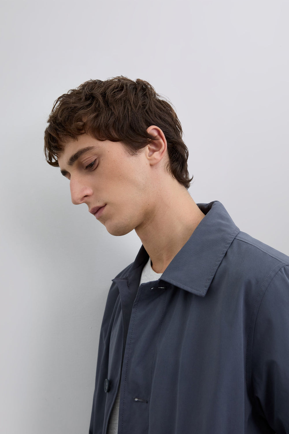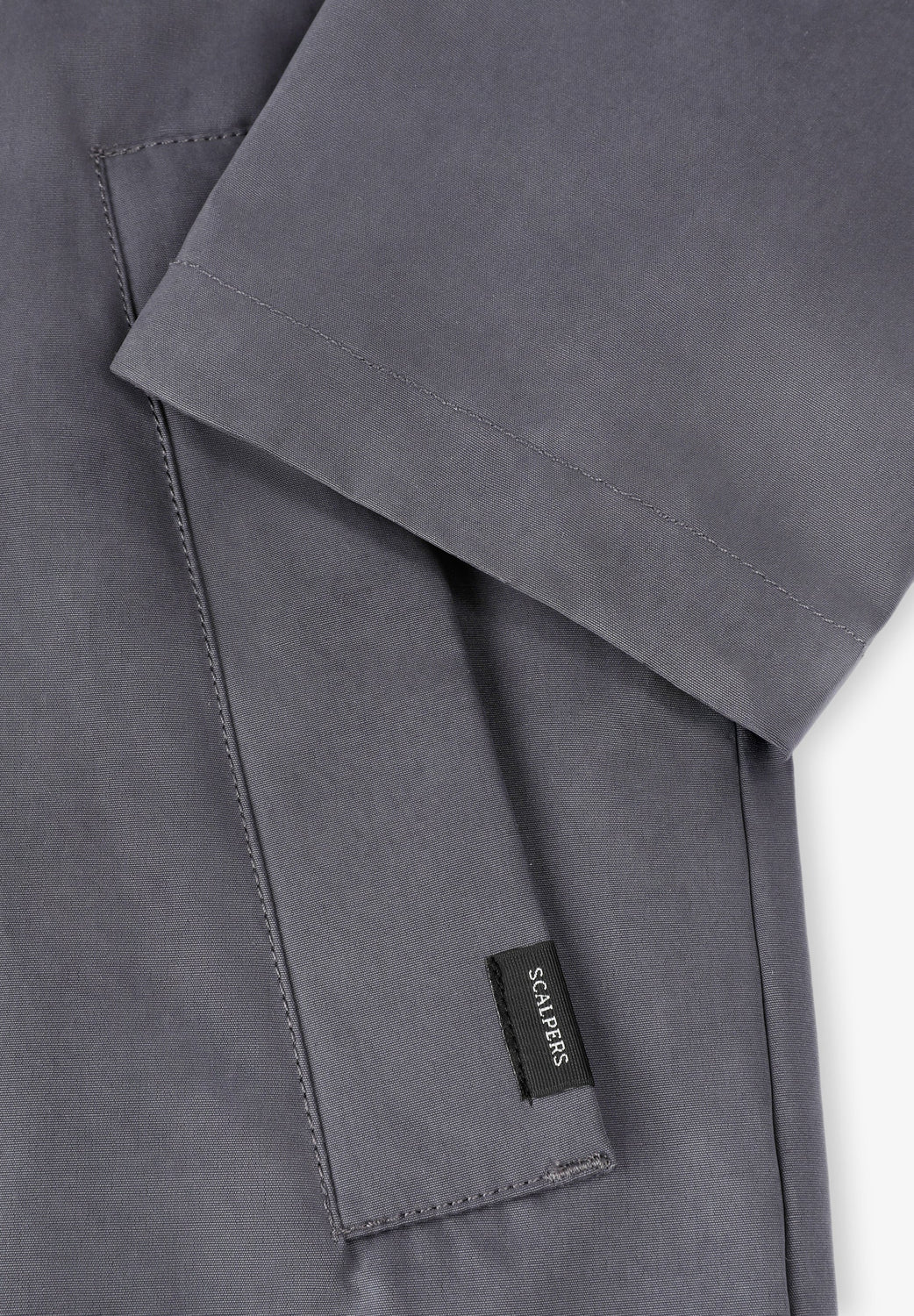 Trench coat with front button fastening. Shirt collar. Two front slant pockets. Stitching details along the length of the garment. Front button fastening. Checked lining. Logo label detail on pocket and inside pocket and skull print on sleeve.