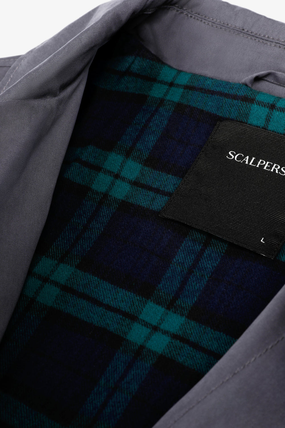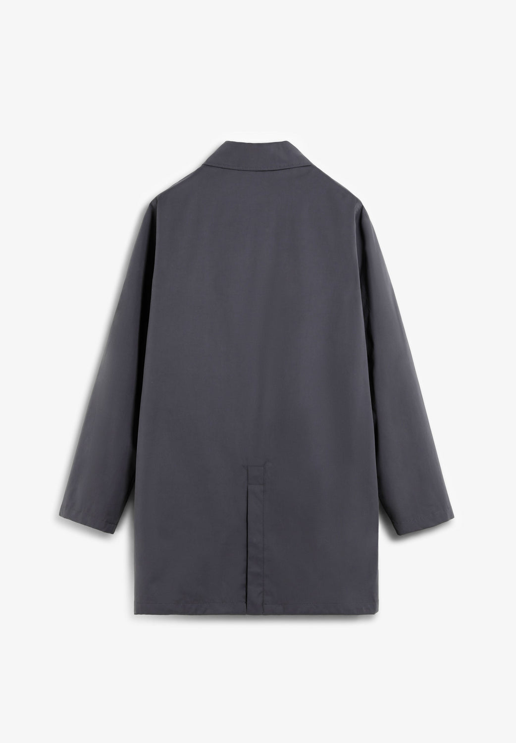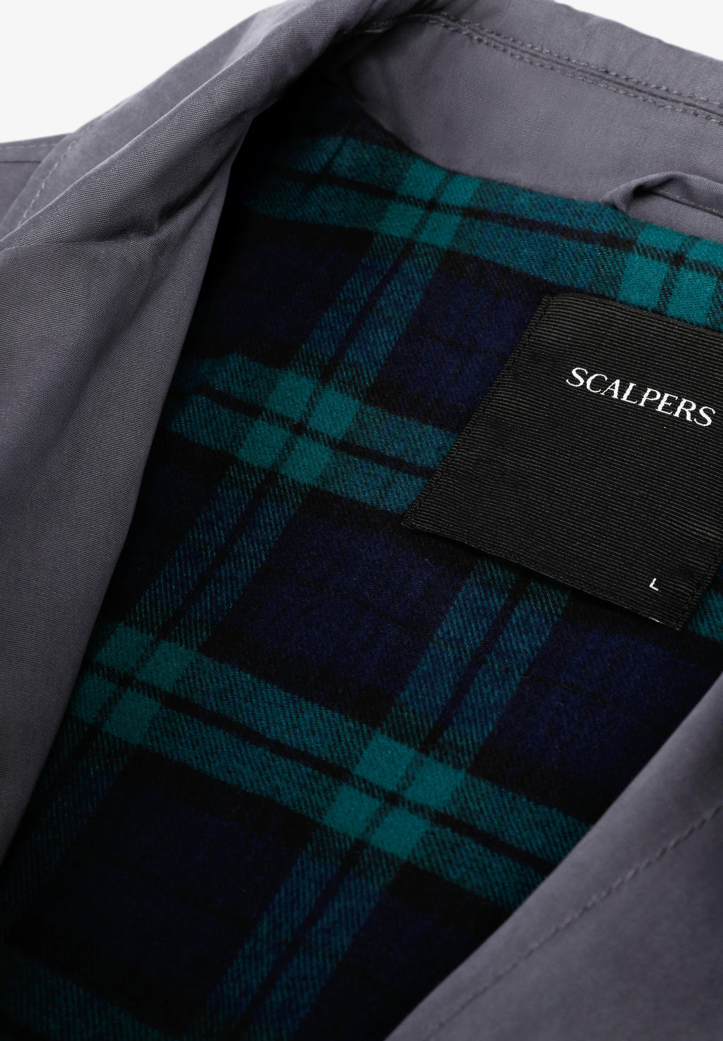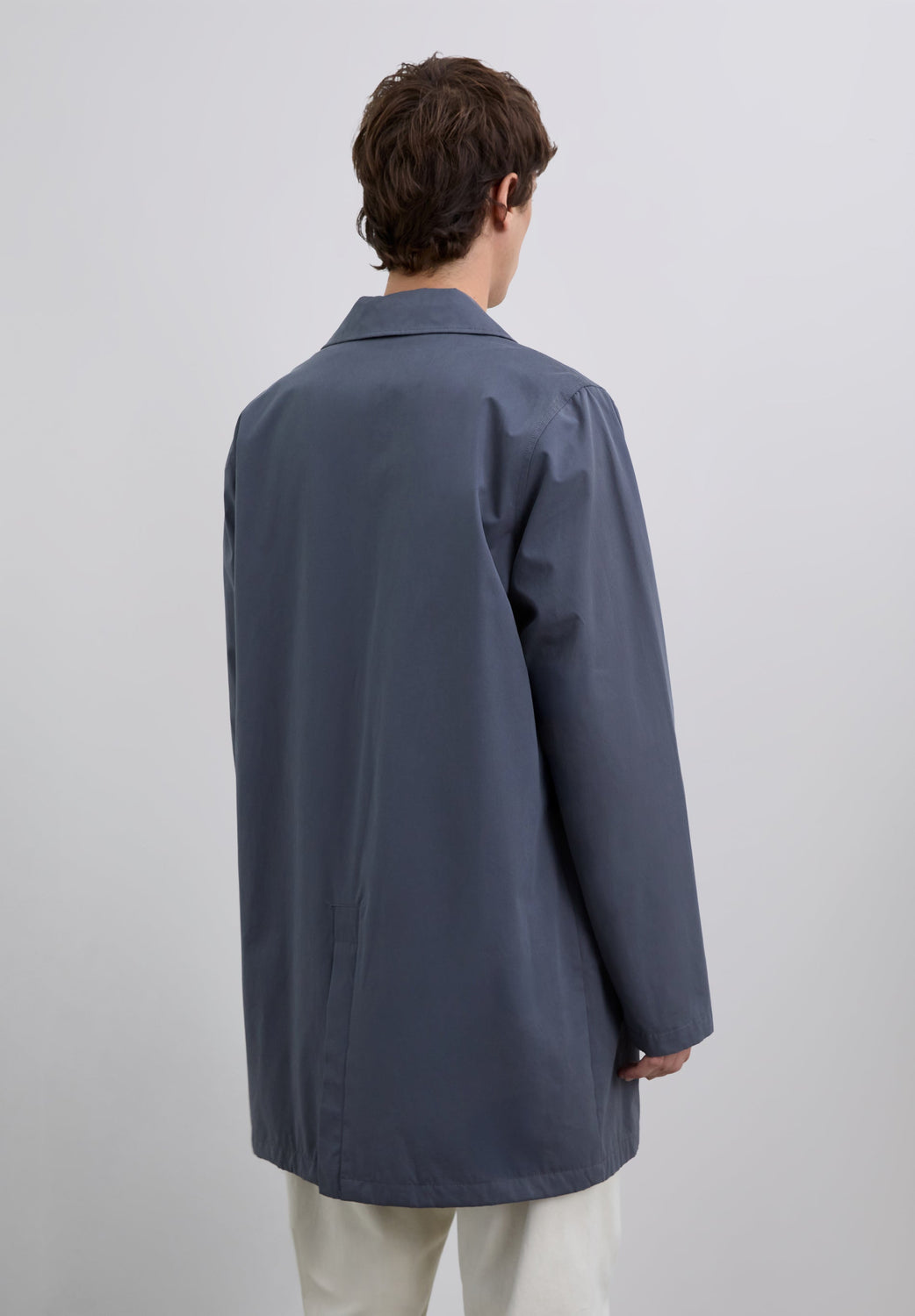 Trench coat with front button fastening. Shirt collar. Two front slant pockets. Stitching details along the length of the garment. Front button fastening. Checked lining. Logo label detail on pocket and inside pocket and skull print on sleeve.