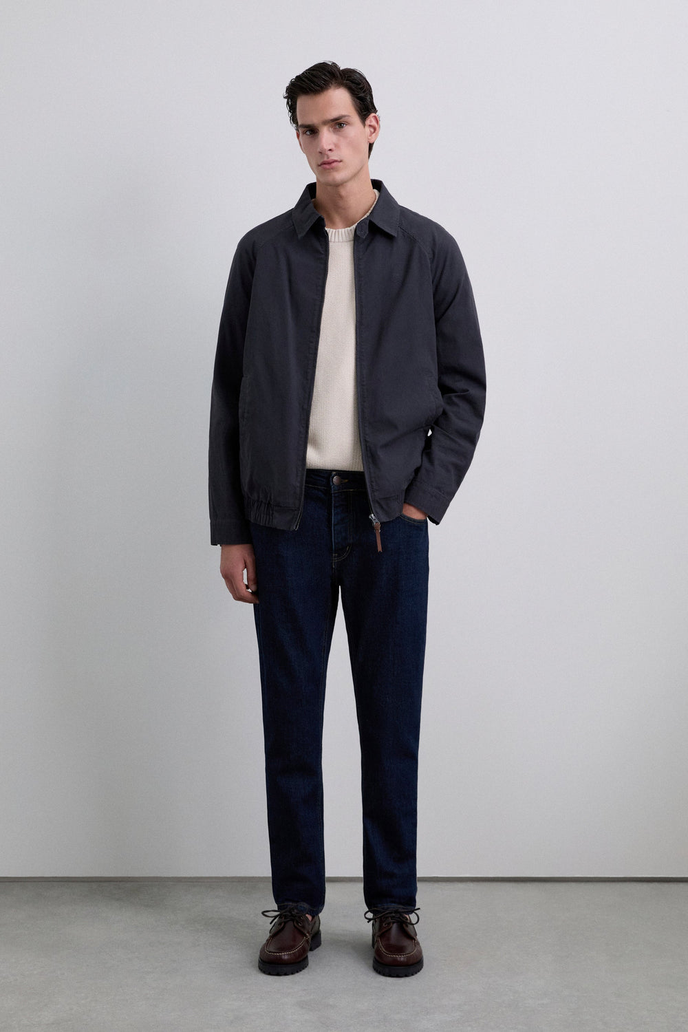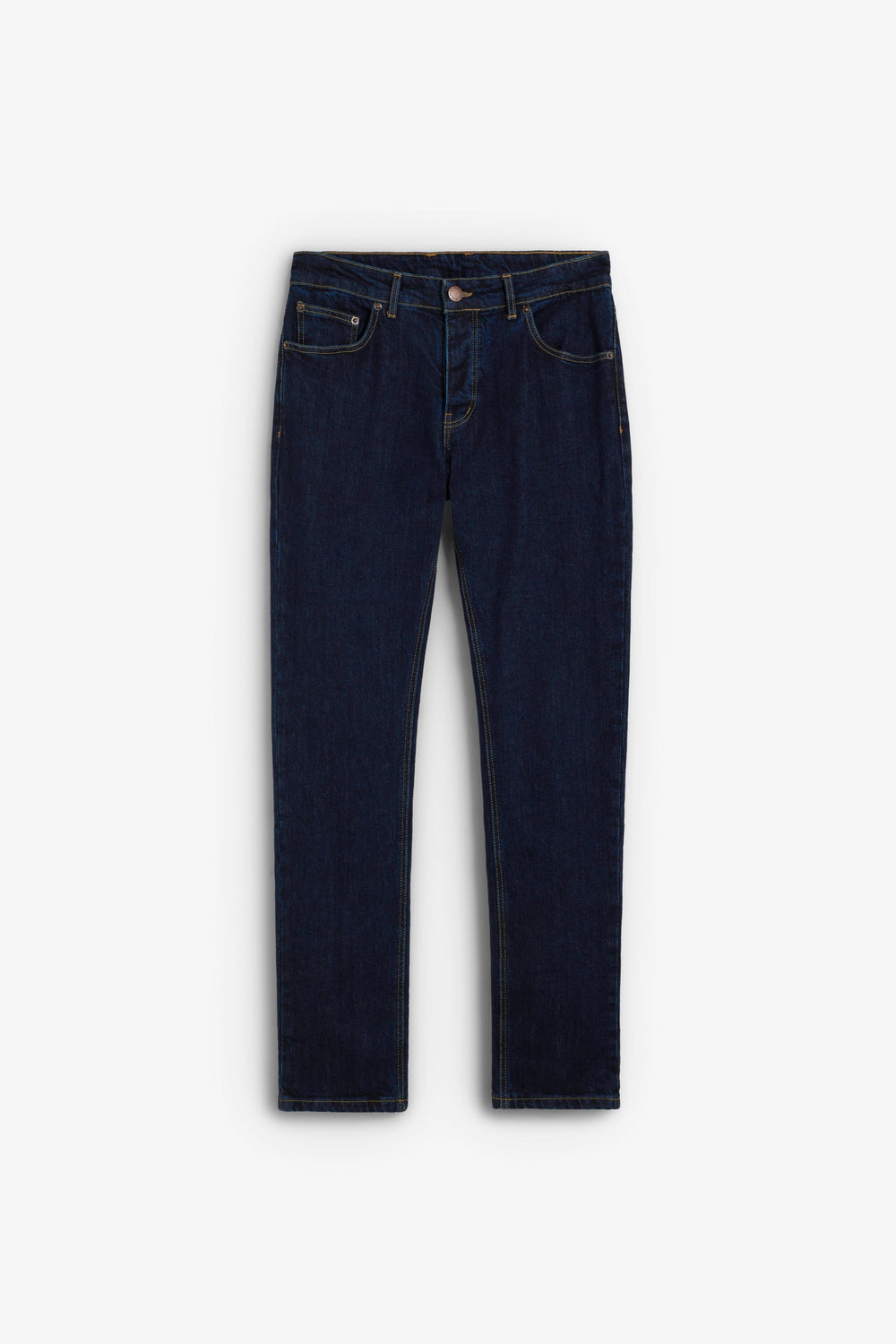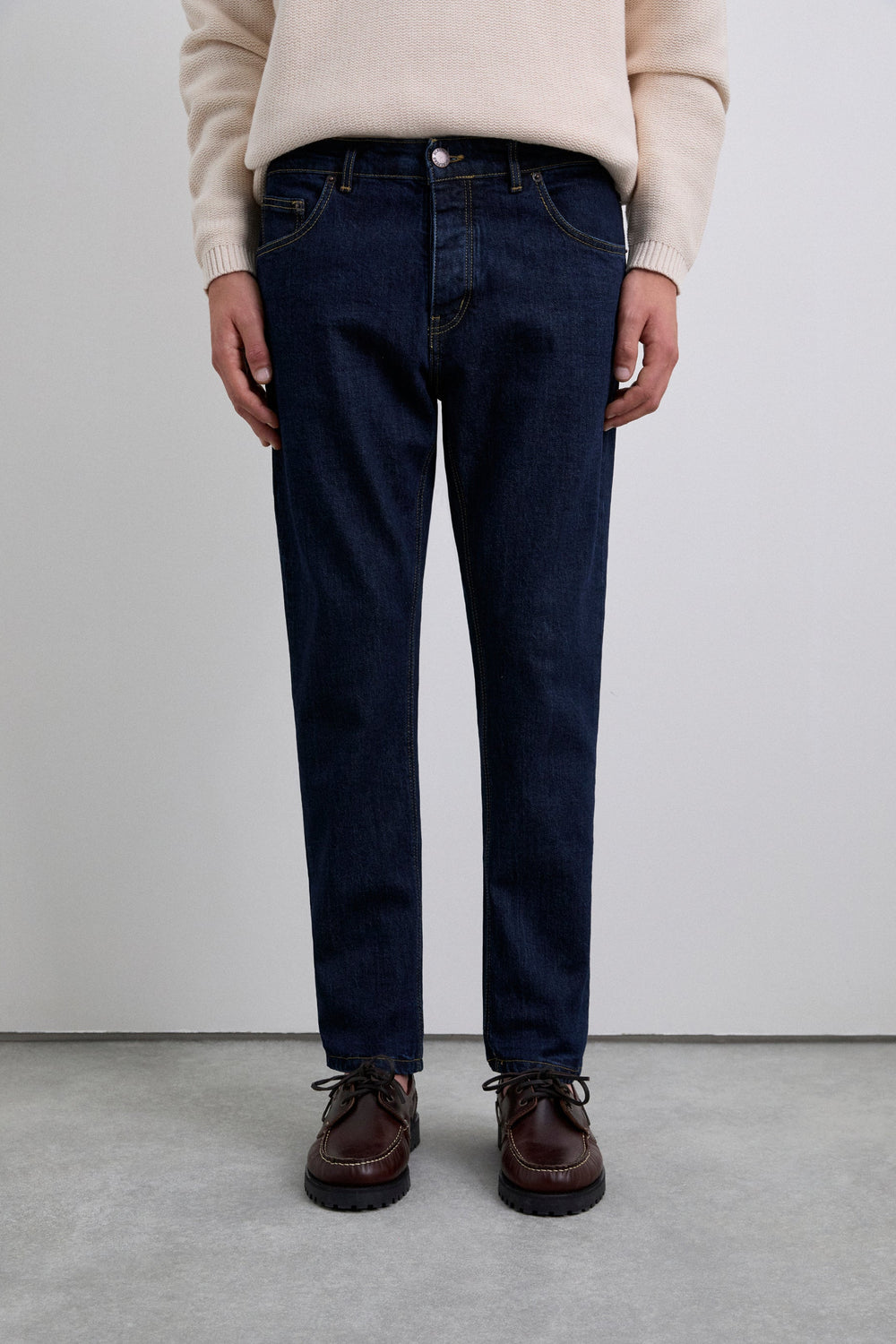 Denim trousers made of 100% cotton. Slim fit, button and zip fastening and side and back pockets. Belt loops at the waist. Logo detail on the pocket.