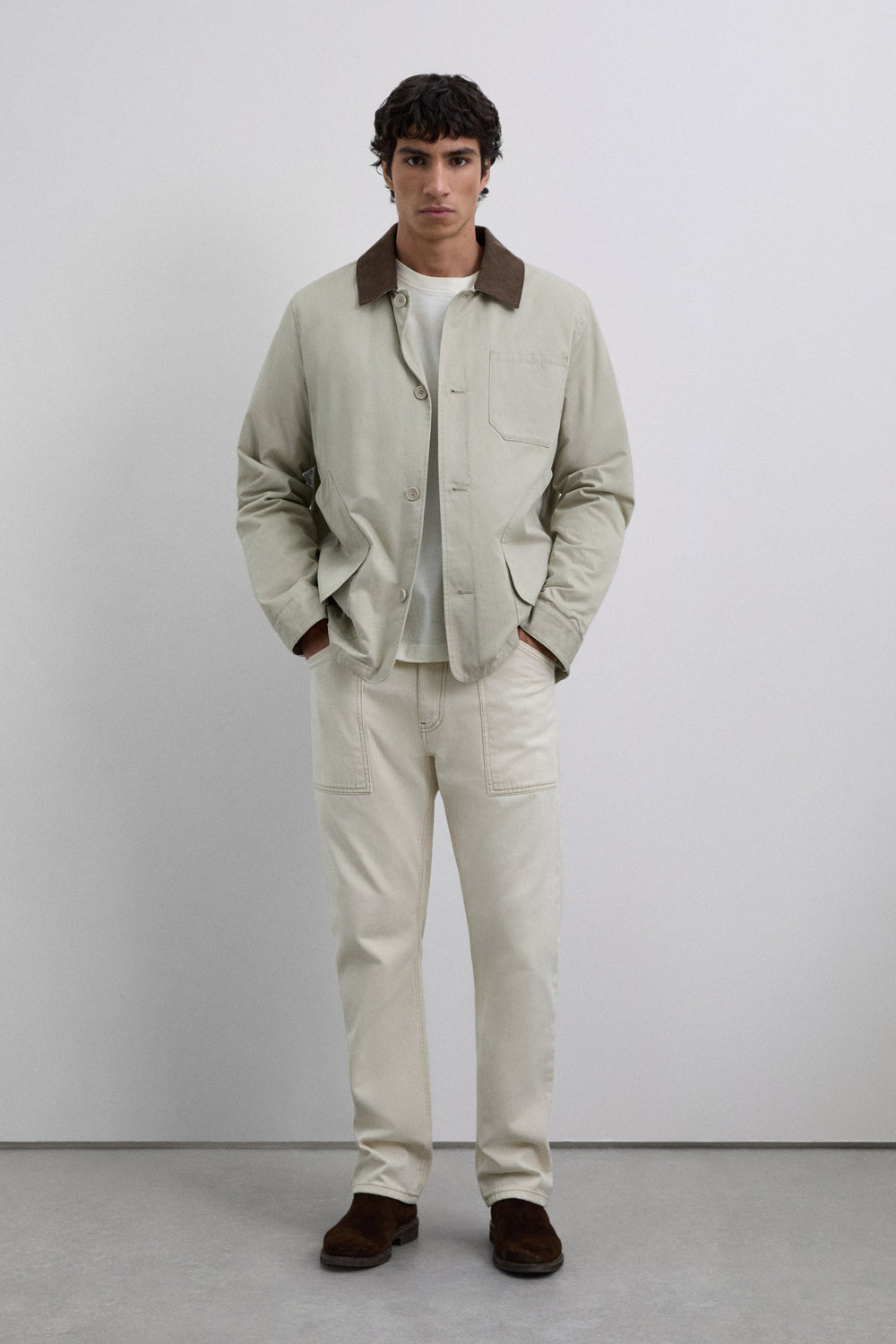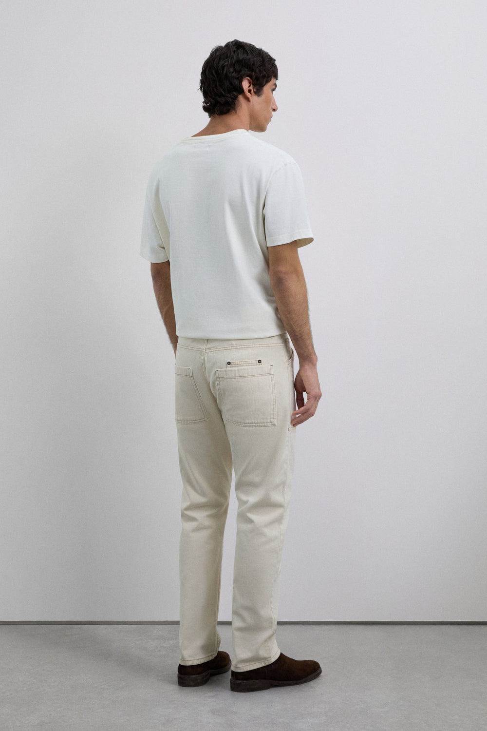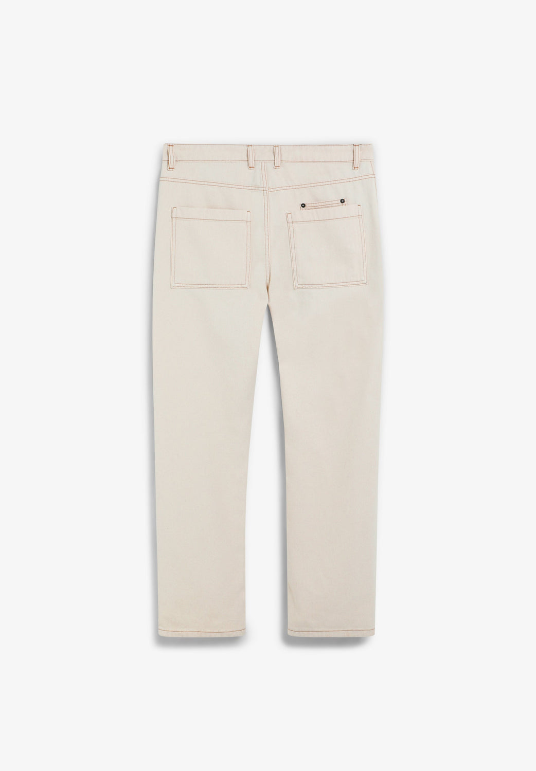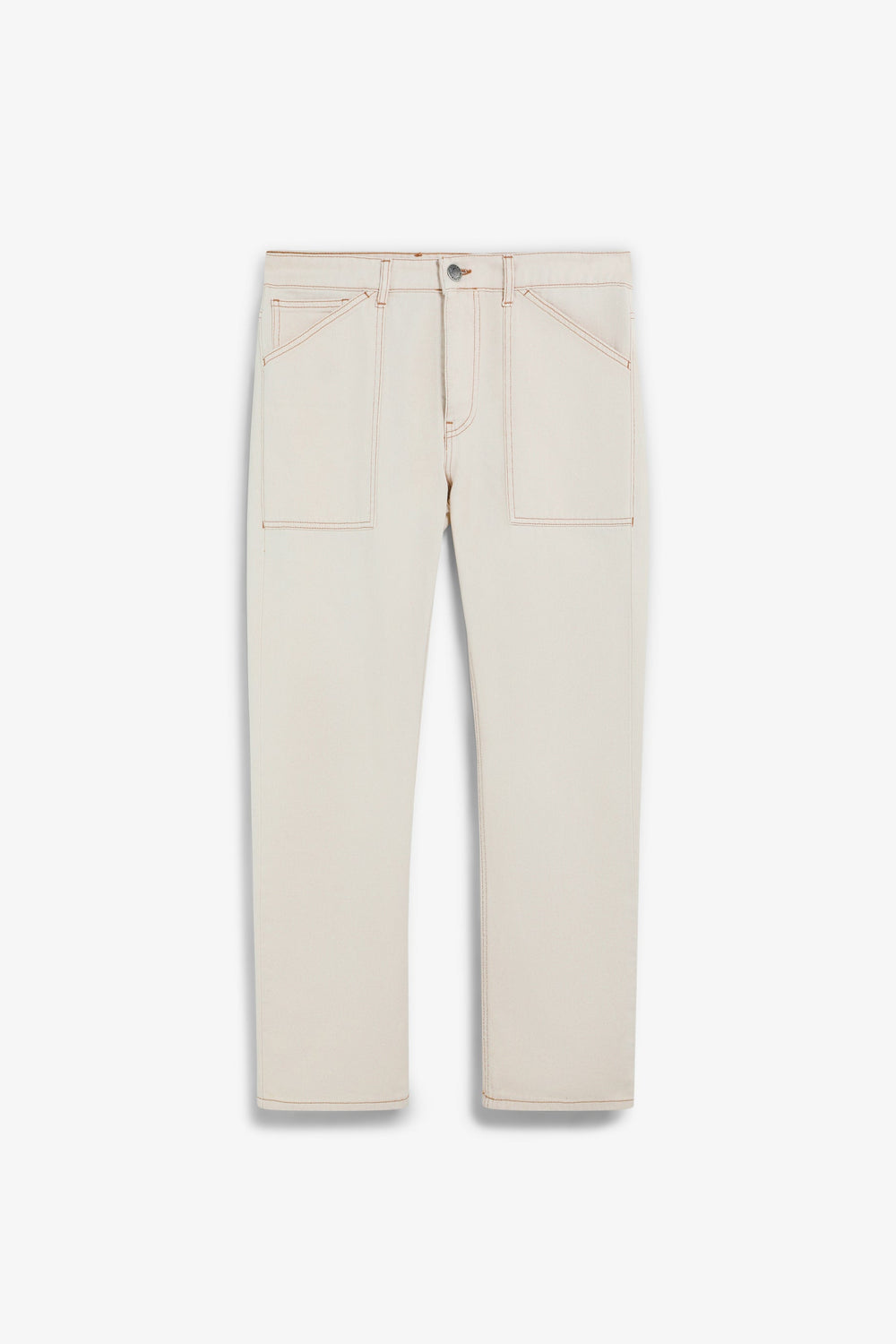 Carpenter-style jeans made of 100% cotton. Cropped Button and zip fastening. Side and back pockets. Belt loops at the waist.