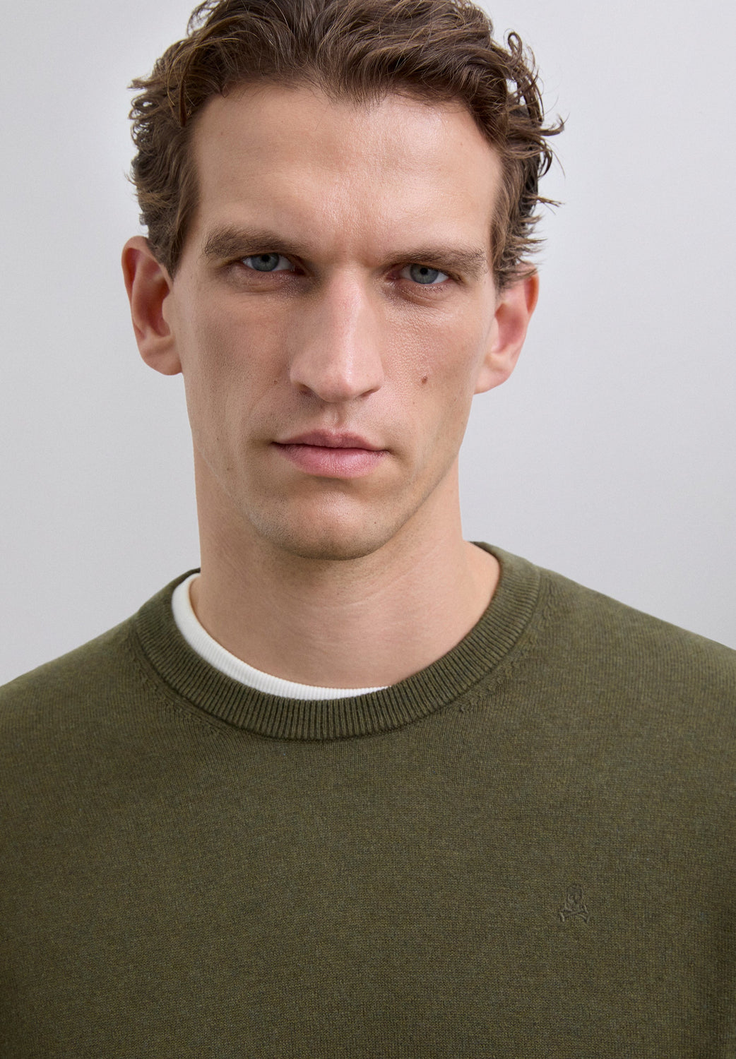 Sweater made of cotton. Long sleeves. Round neck. Matching embroidered skull detail on the chest. Ribbed trim.