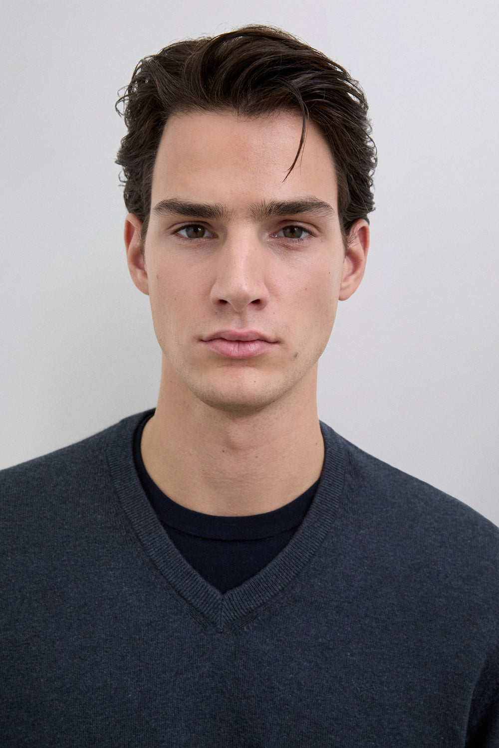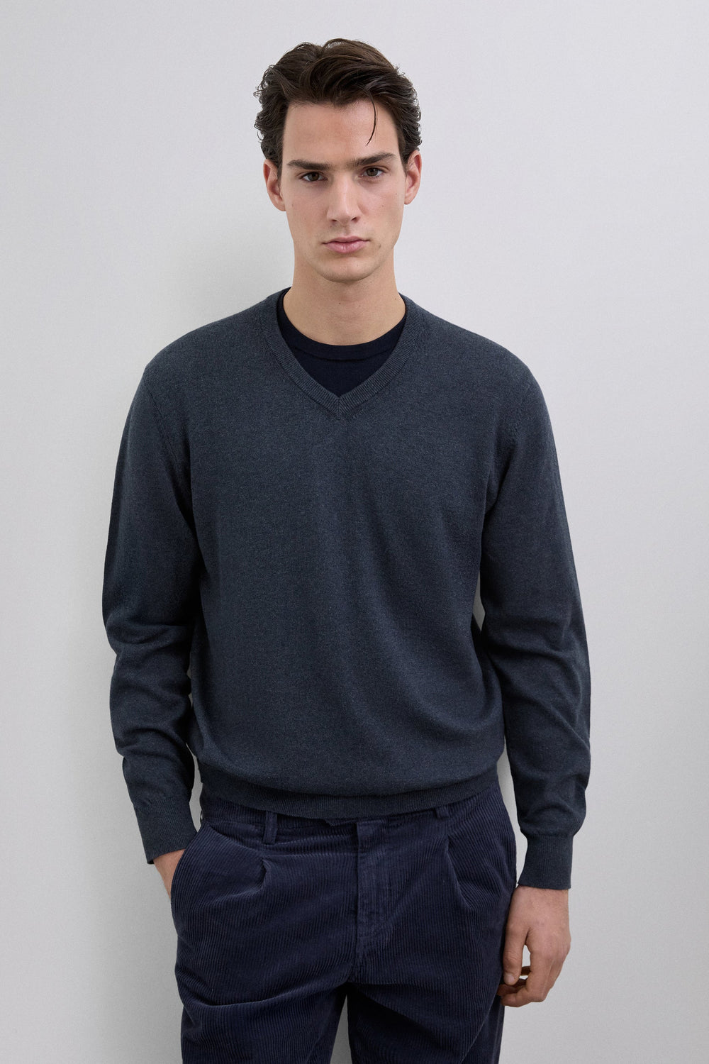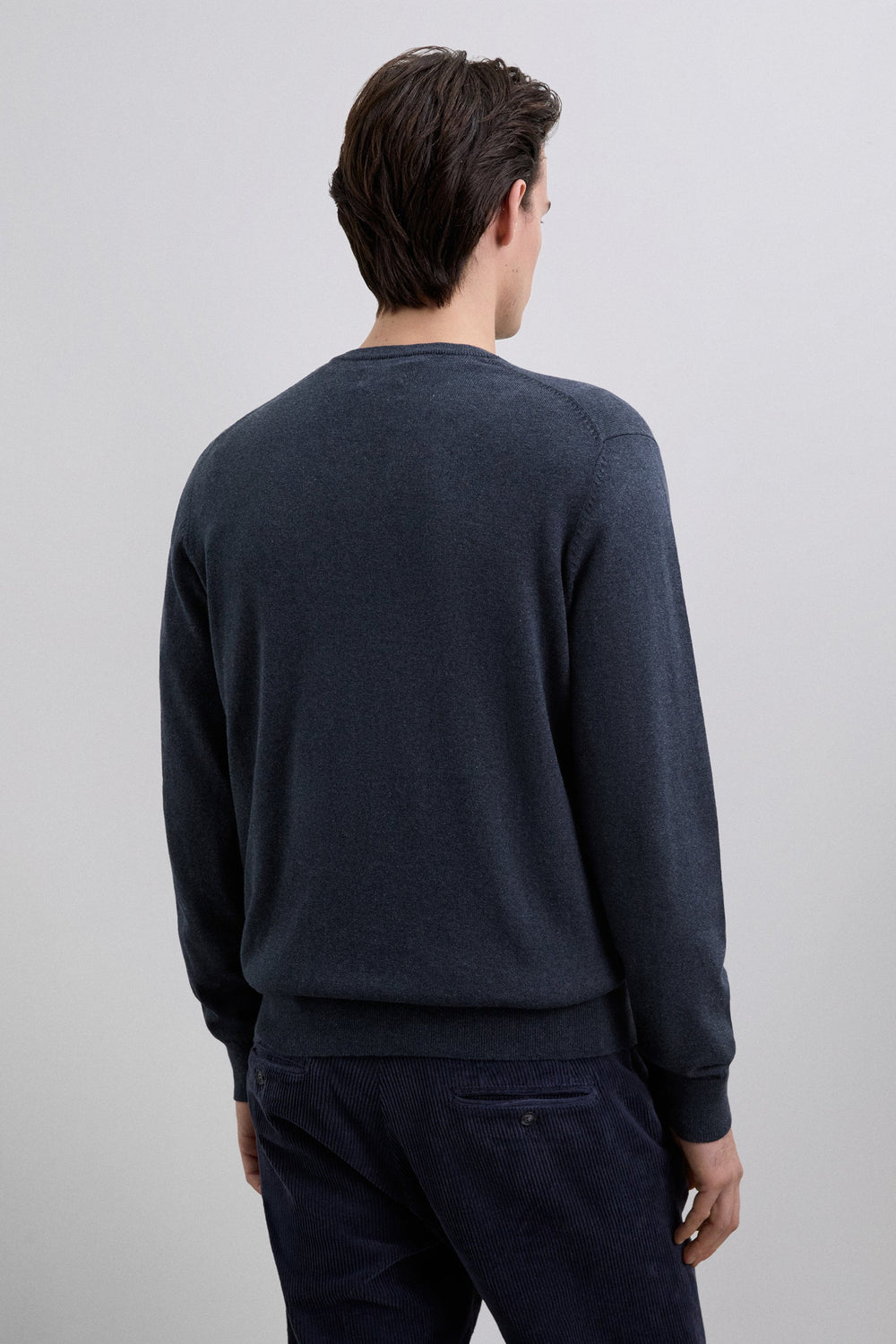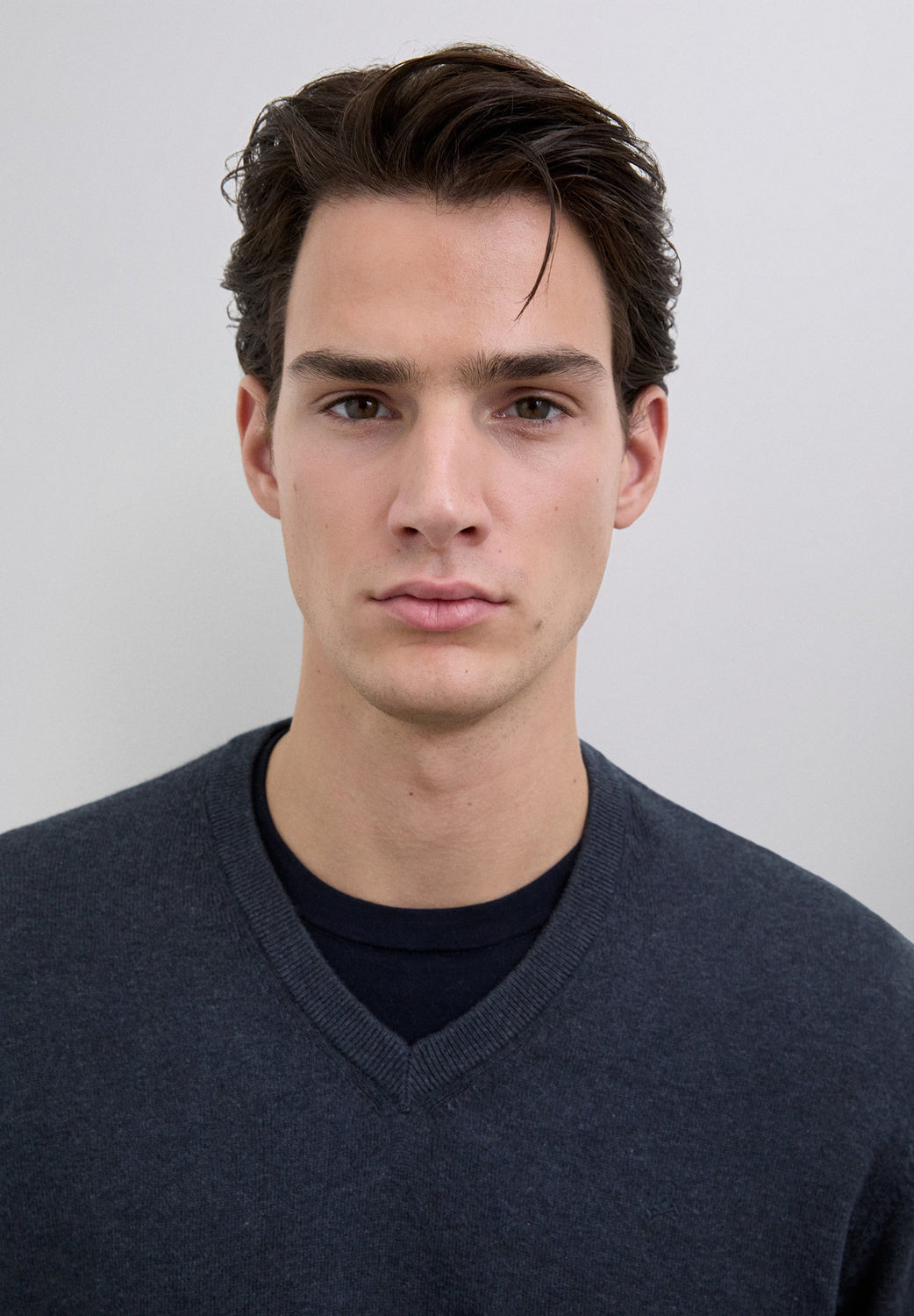 Sweater made of cotton. Regular fit. V-neck. Long sleeves. Ribbed cuffs and waistband. Matching embroidered skull detail on the chest.