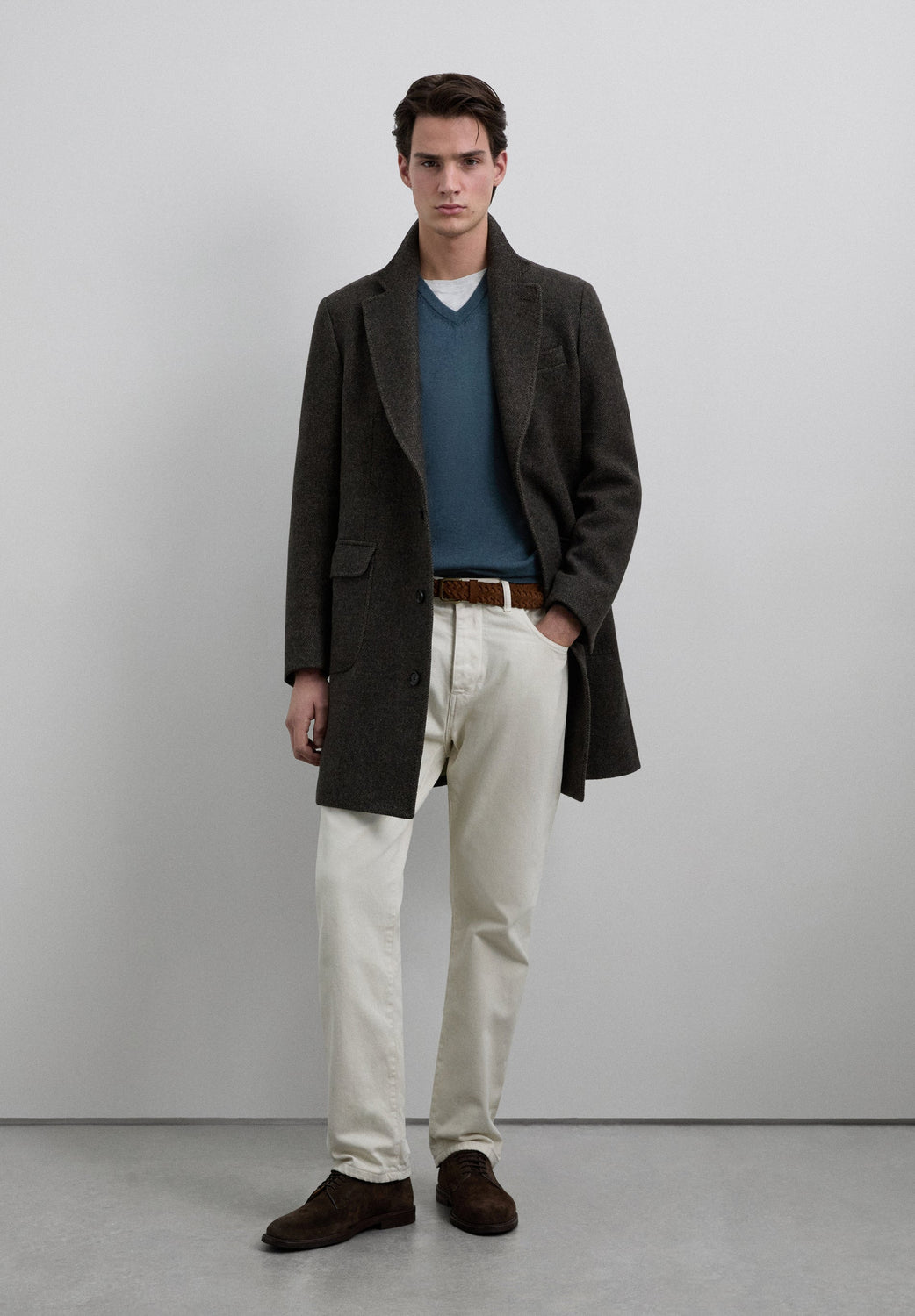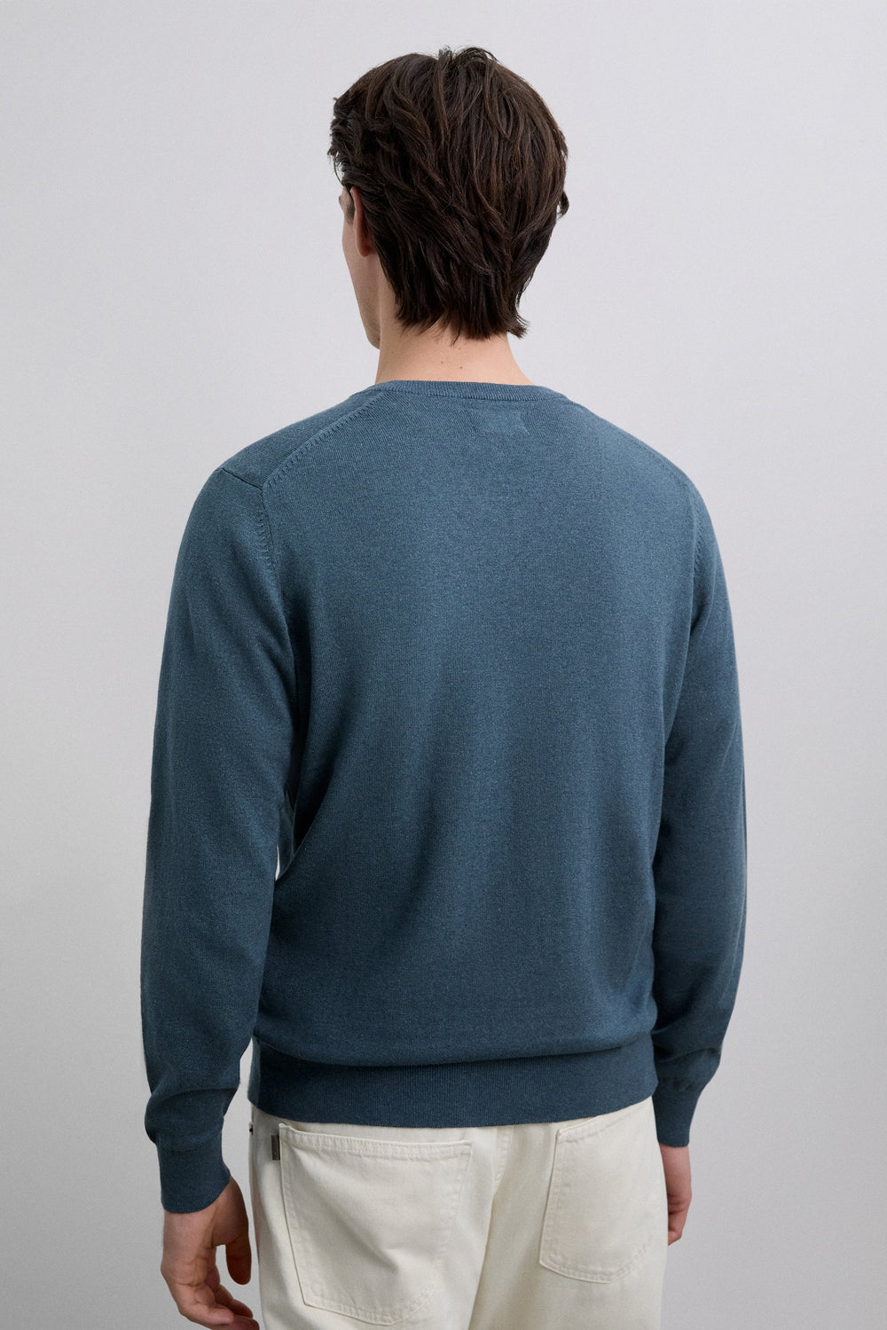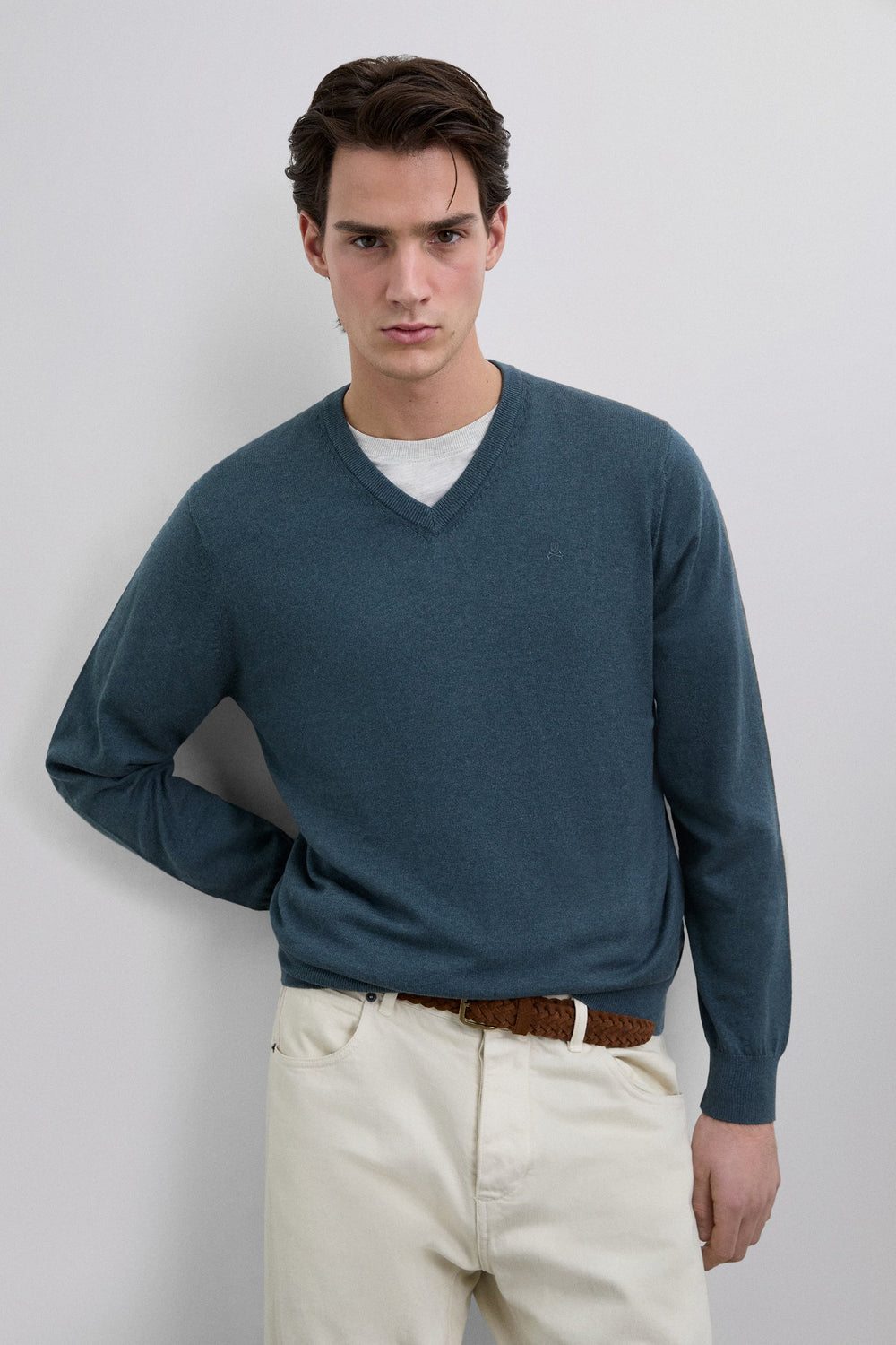 Sweater made of cotton. Regular fit. V-neck. Long sleeves. Ribbed cuffs and waistband. Matching embroidered skull detail on the chest.