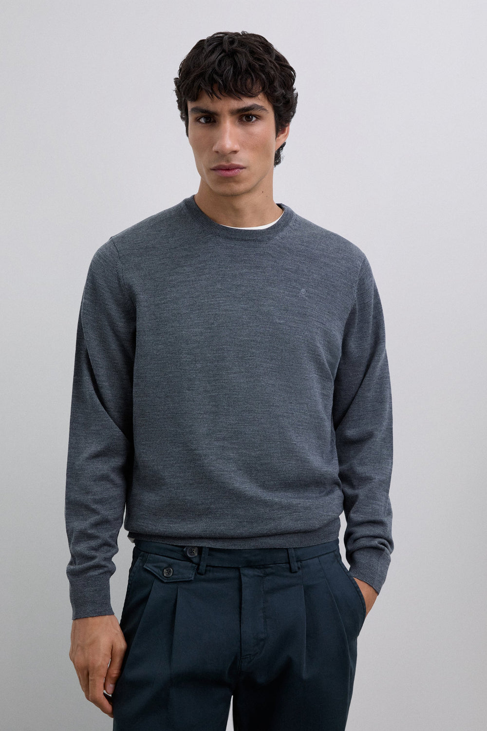 Sweater made of 100% wool. Regular Fit. Round neck. Long sleeves. Matching embroidered skull detail on the chest. Ribbed trim.