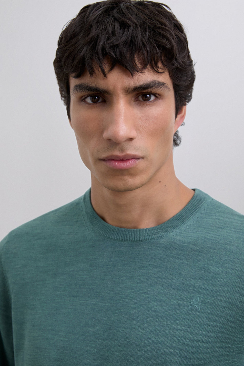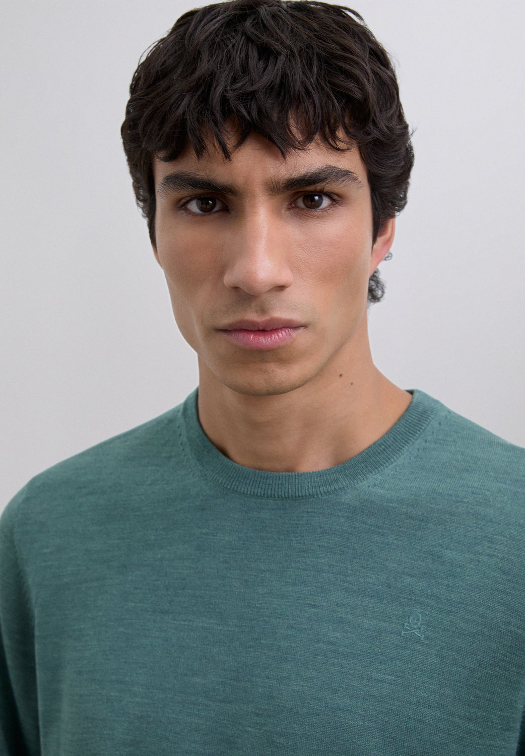 Sweater made of 100% wool. Regular Fit. Round neck. Long sleeves. Matching embroidered skull detail on the chest. Ribbed trim.