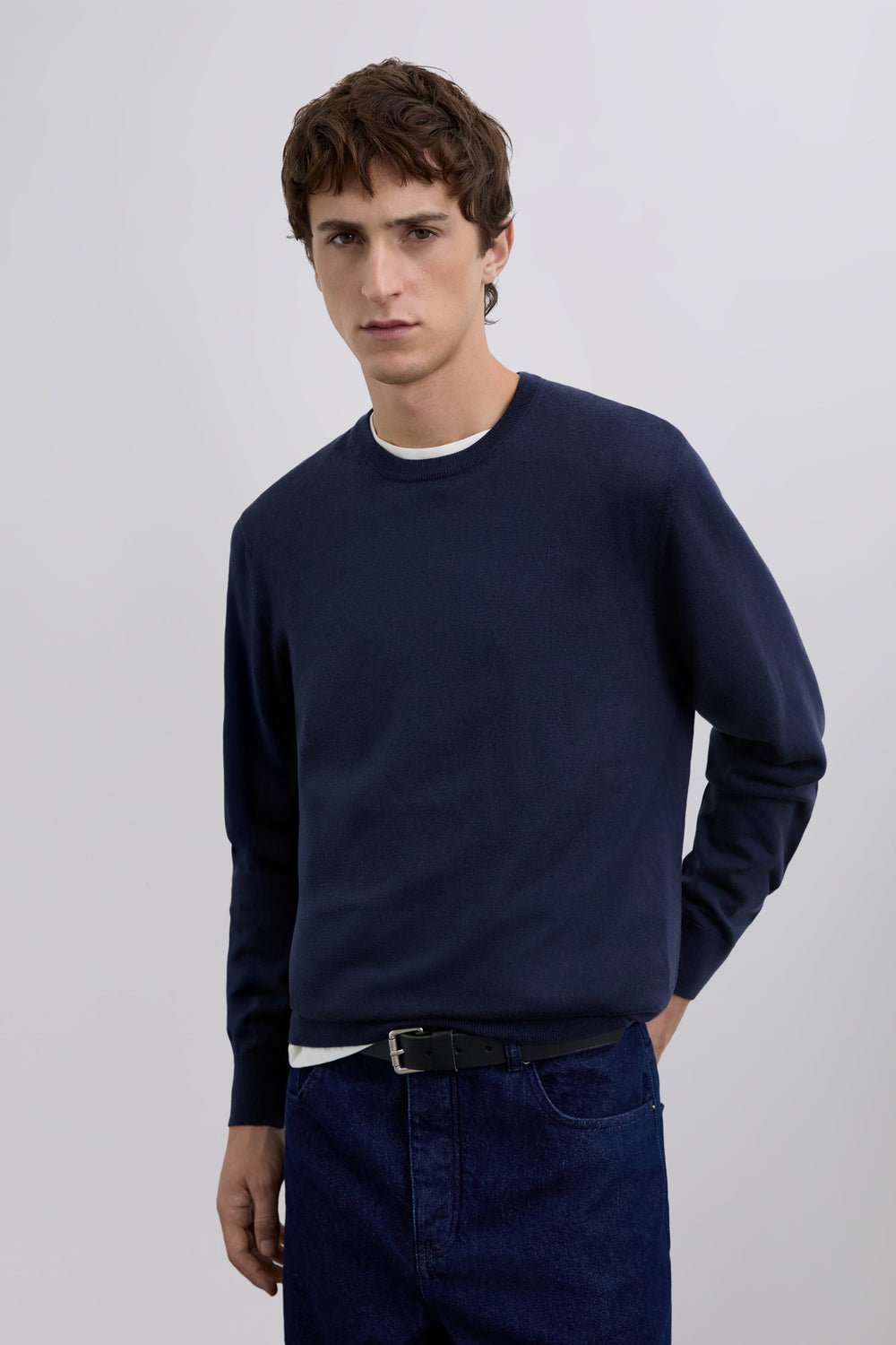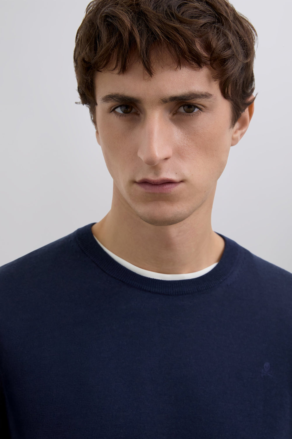 Sweater made of 100% wool. Regular Fit. Round neck. Long sleeves. Matching embroidered skull detail on the chest. Ribbed trim.
