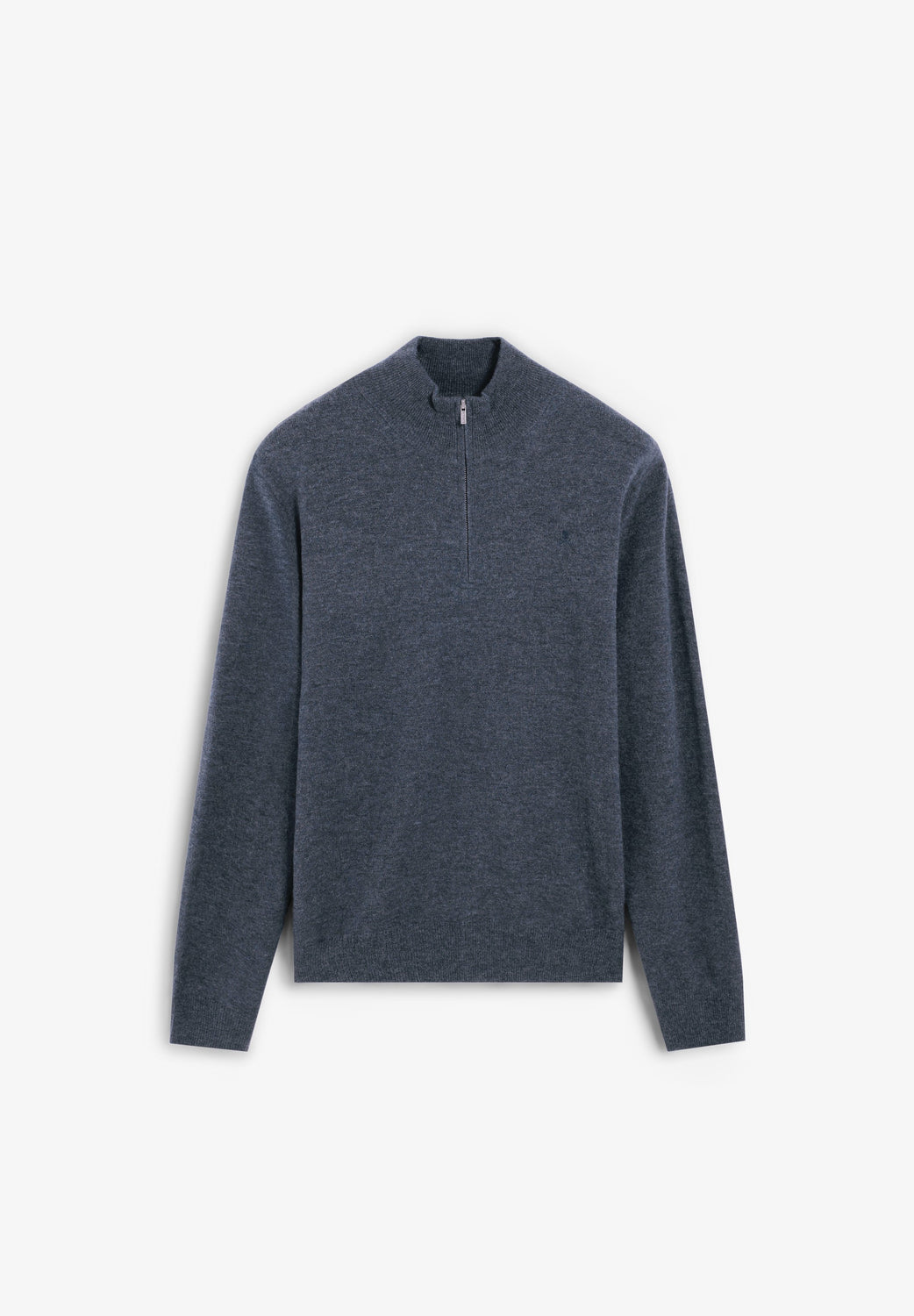Sweater made of 100% wool. Regular Fit. Collar with half zip fastening. Long sleeves. Matching embroidered skull detail on the chest. Ribbed trim.