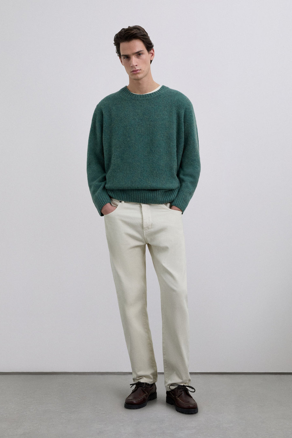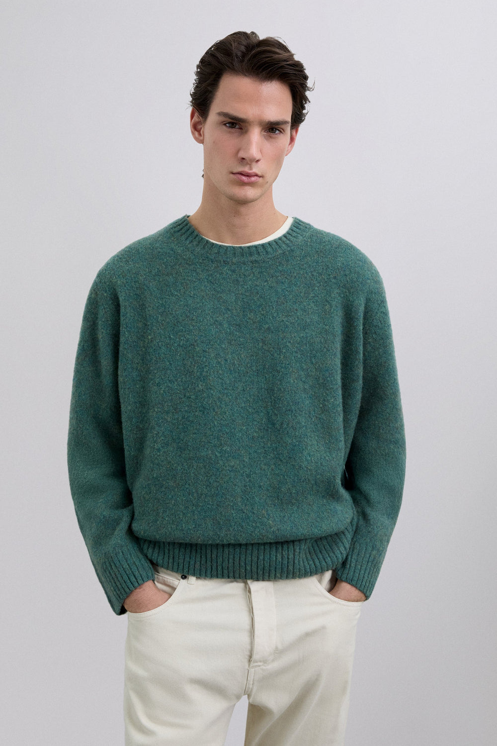 Sweater made of 100% wool. Brushed effect. Round neck. Long sleeves. Regular fit. Ribbed trim.