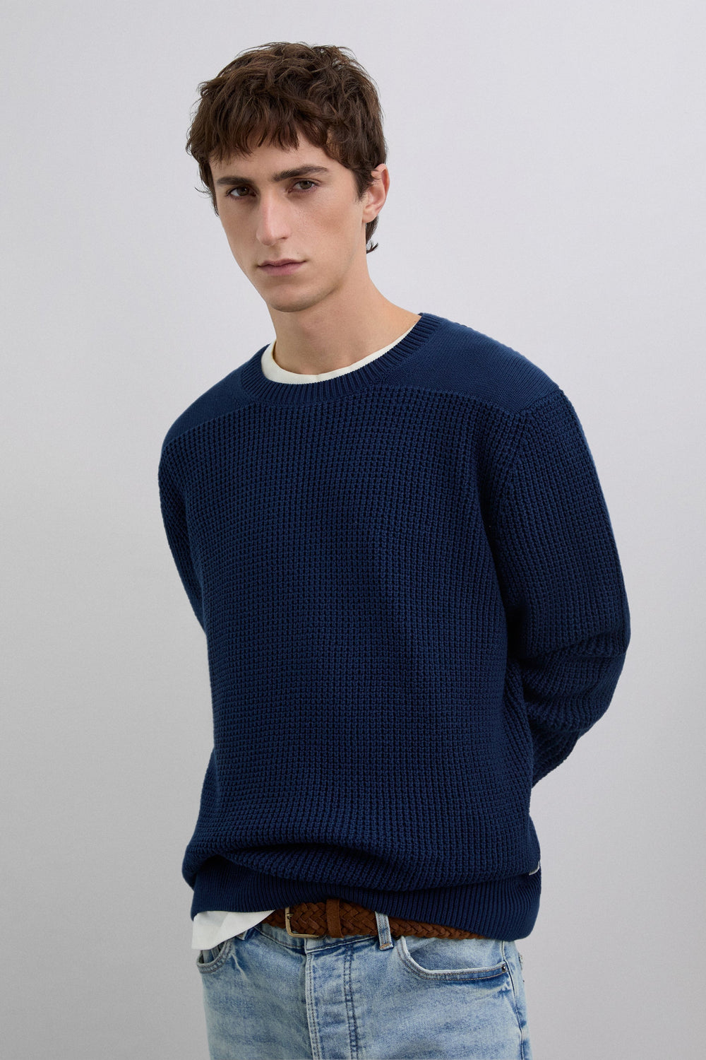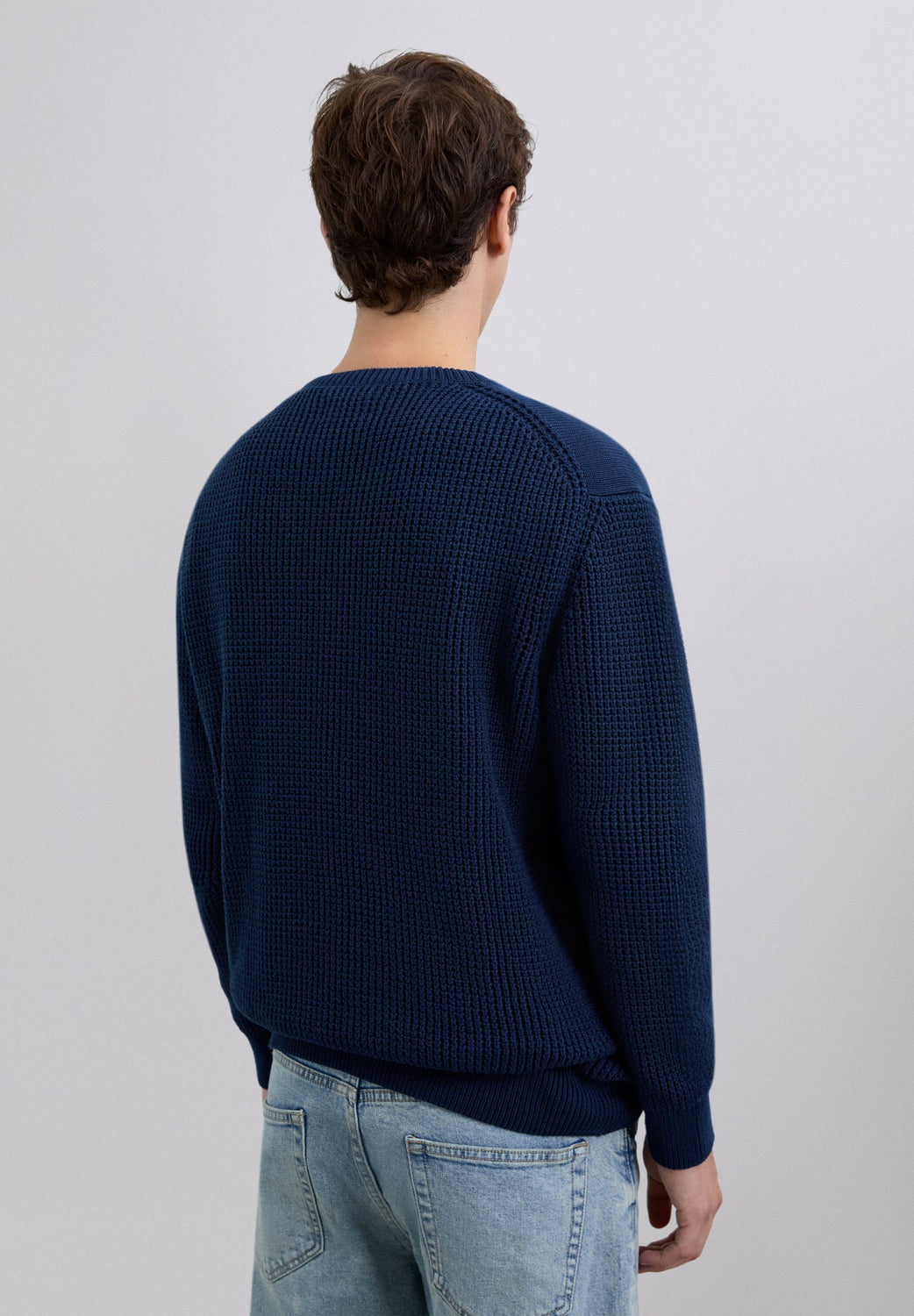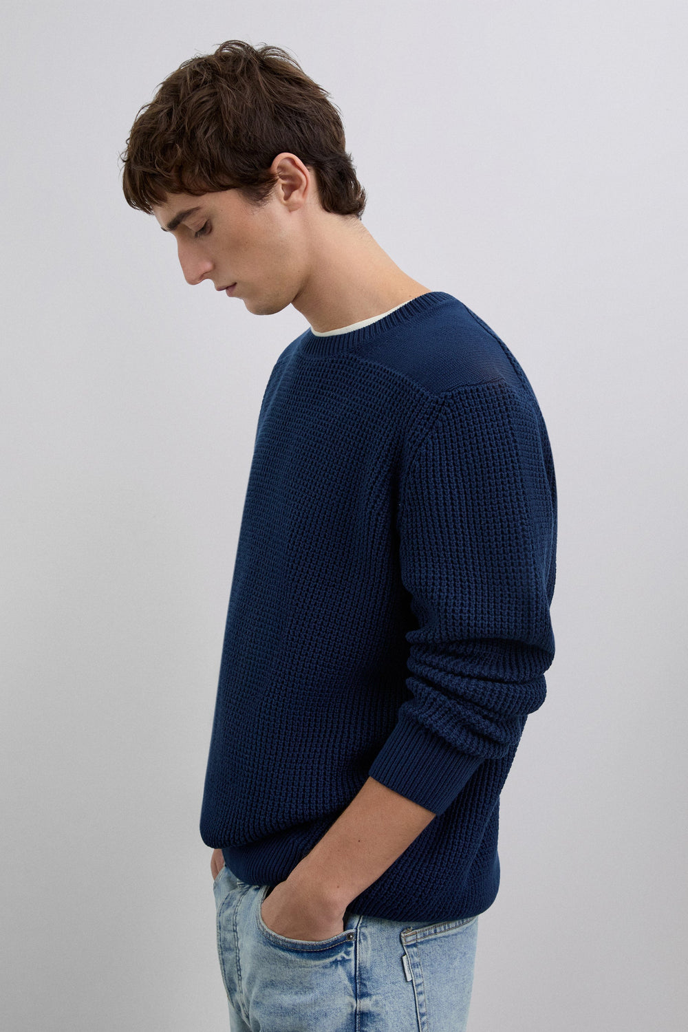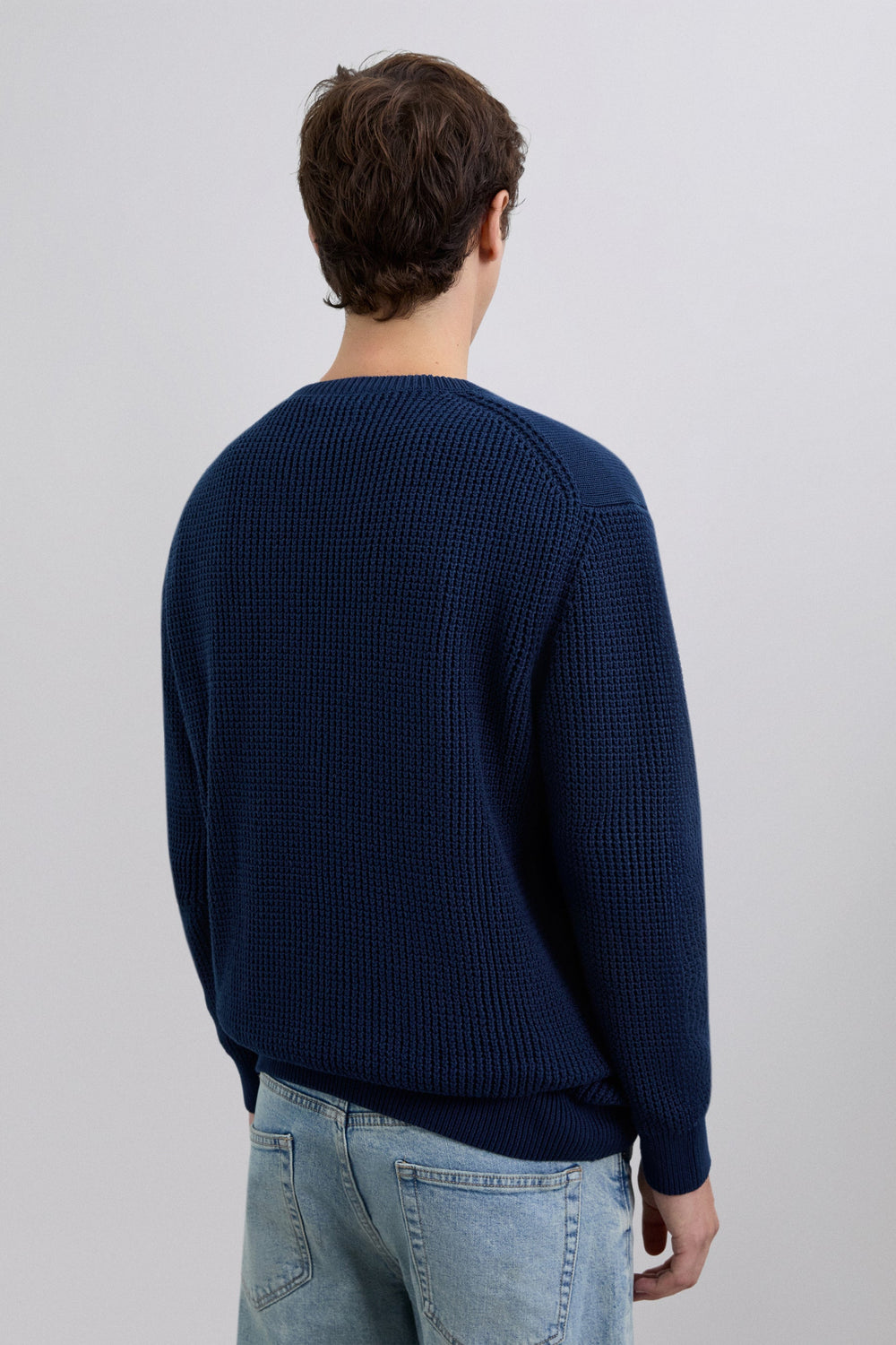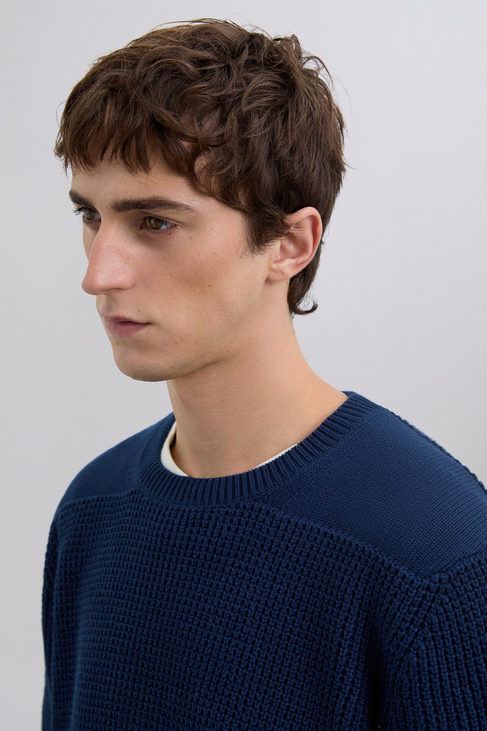 Textured sweater made of 100% BCI cotton. Regular Fit. Round neck. Long sleeves. Logo label detail on inside.