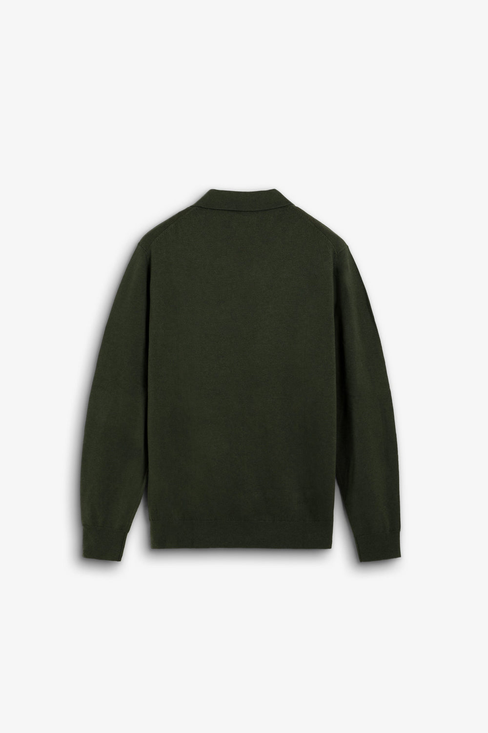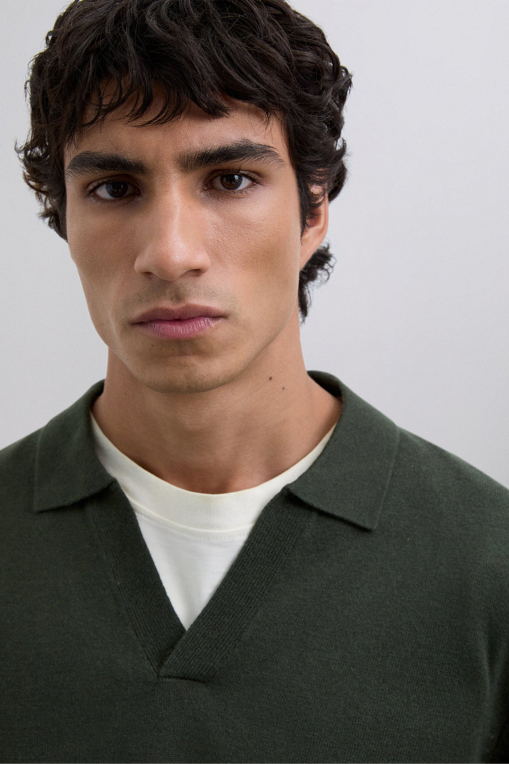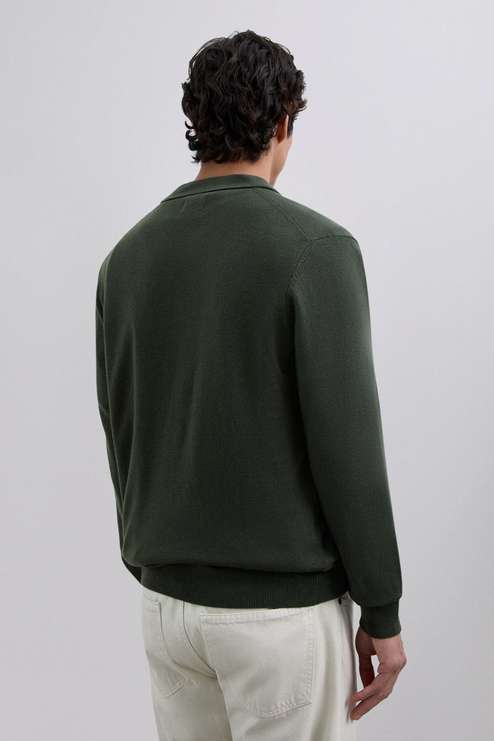 Polo shirt made of wool. Long sleeves. Ribbed trim. V-neck.
