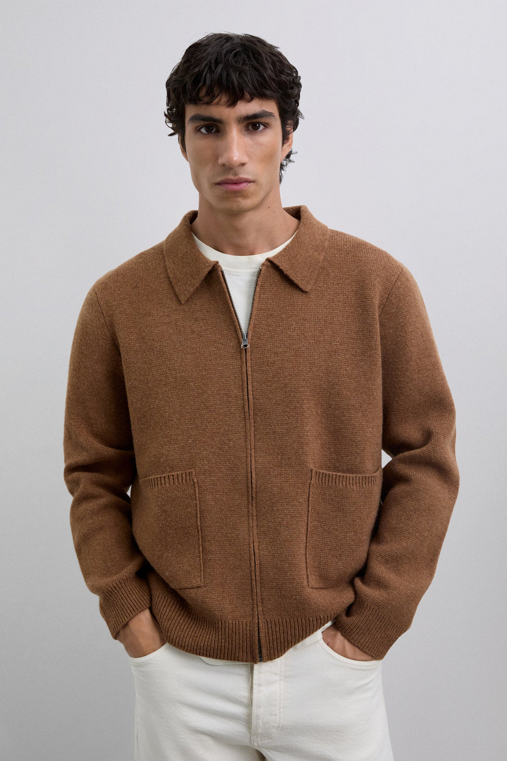 Cardigan made of 100% merino wool. Zip fastening. Front pockets. Long sleeves. Regular fit. Ribbed trim.