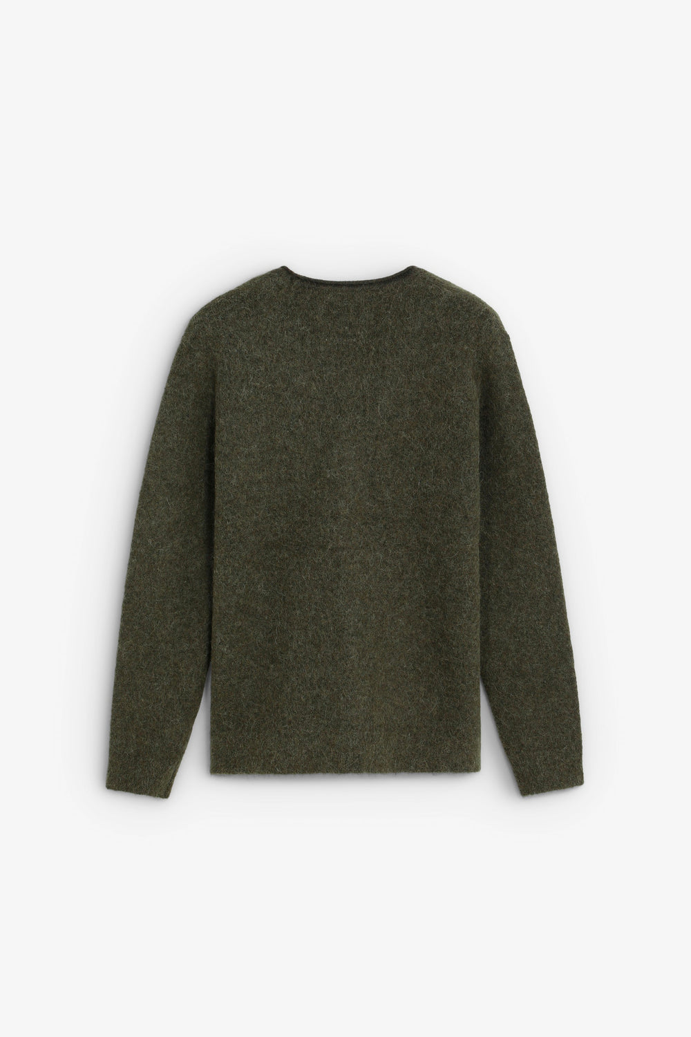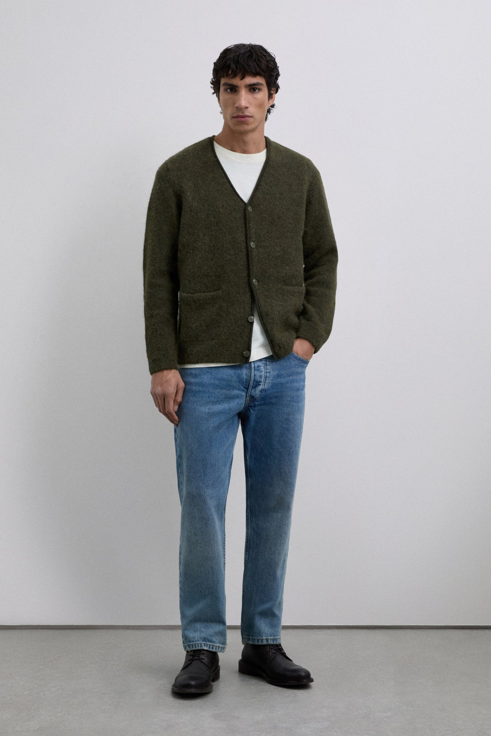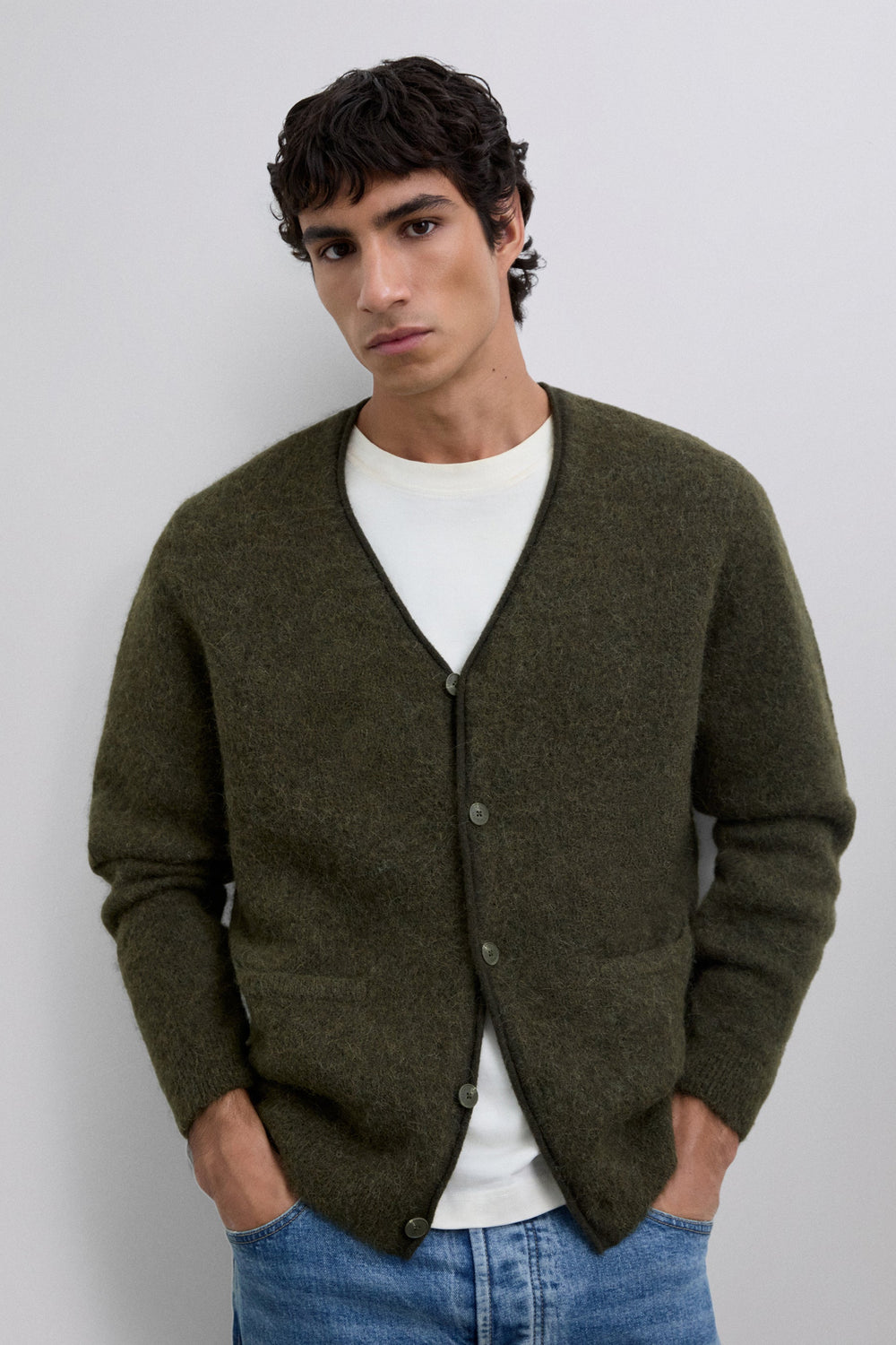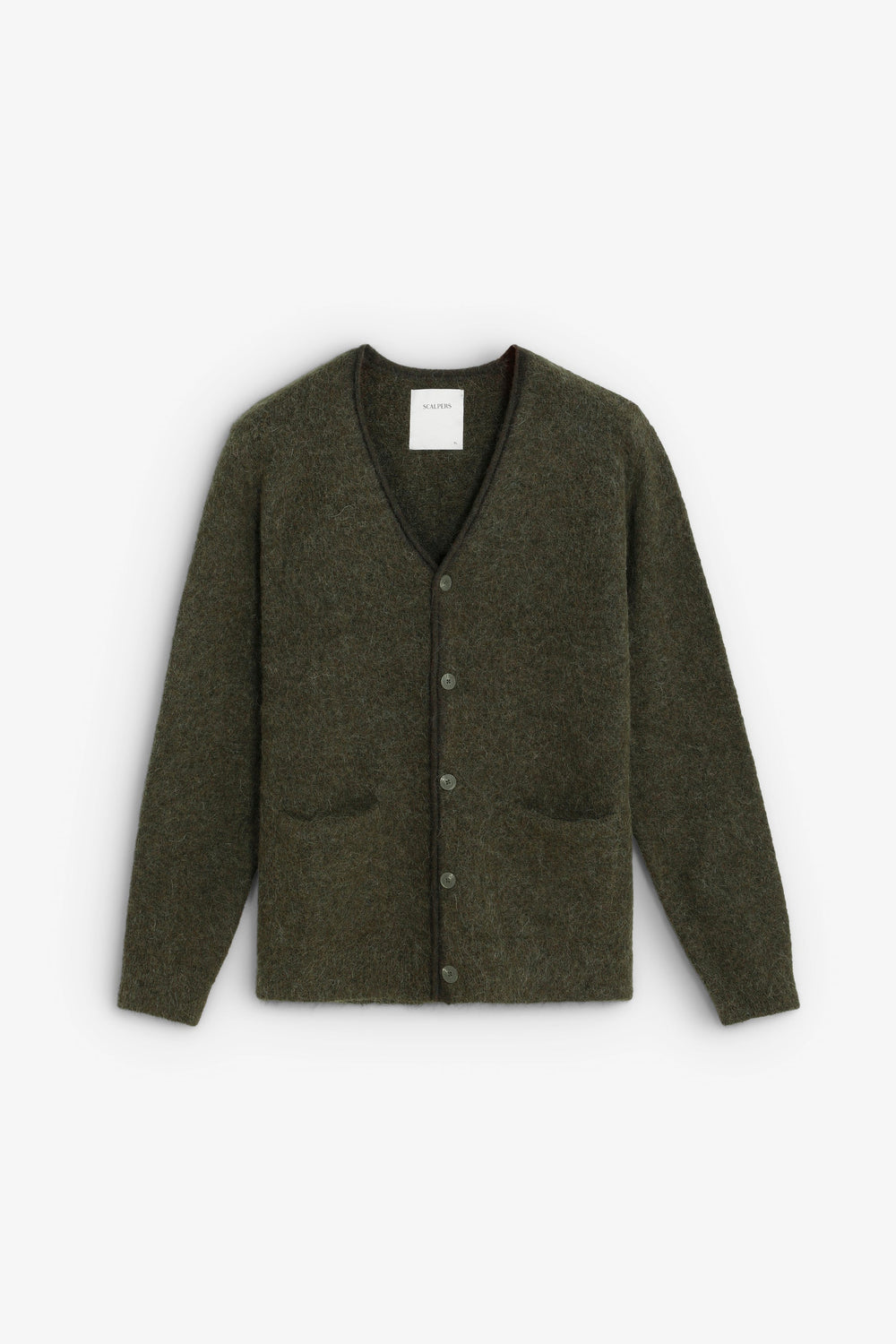 Alpaca cardigan. V-neck. Long sleeves. Front button fastening. Two front pockets. Logo label detail on inside.