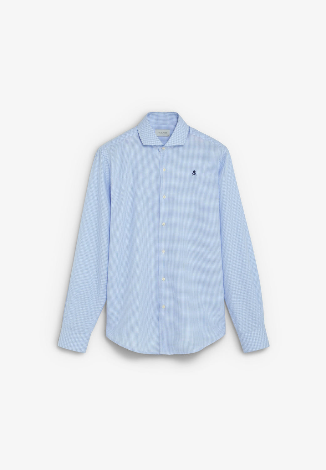 Shirt made of 100% BCI cotton. Regular fit. Long sleeves. Front fastening and buttoned cuffs. Contrast skull on the chest.