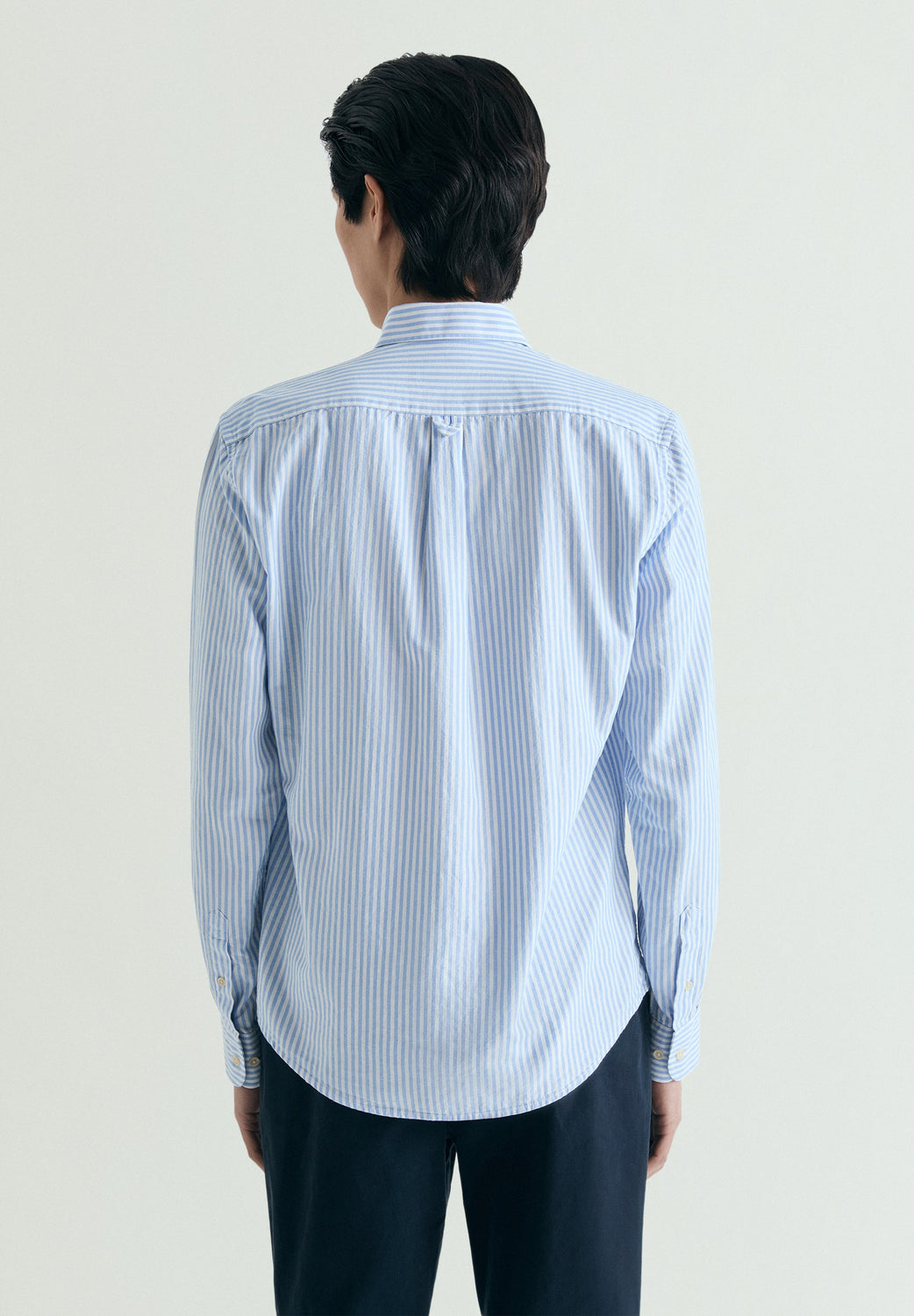 Shirt made of 100% cotton. Regular Fit. Buttoned collar and long sleeves with buttoned cuffs. Stripe print. Front pocket with embroidered detail.