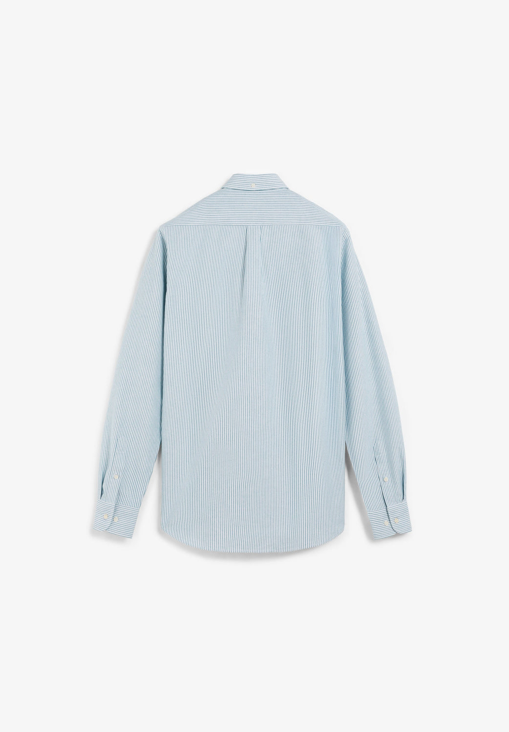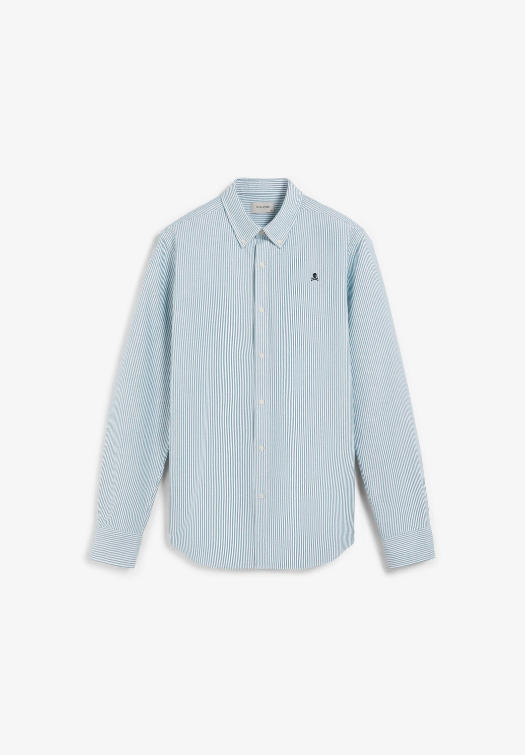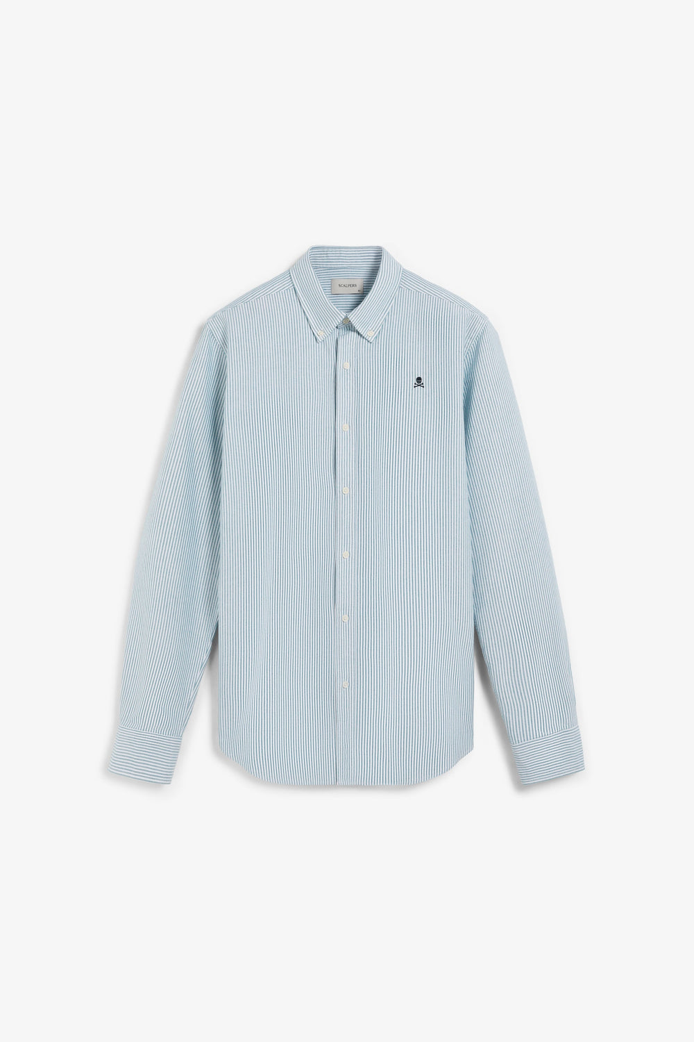 Oxford shirt made of 100% BCI cotton. Button fastening, Striped print. Long sleeves with button fastening. Contrast embroidered skull detail on the chest.