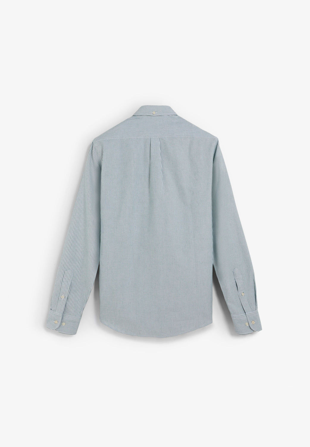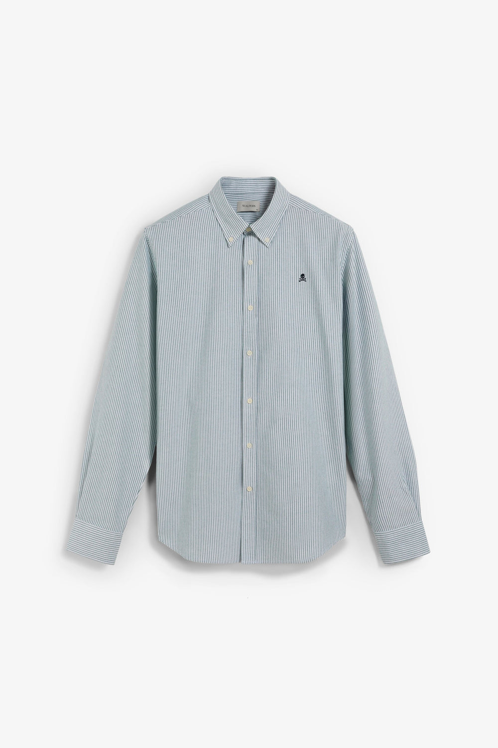 Oxford shirt made of 100% BCI cotton. Button fastening, Striped print. Long sleeves with button fastening. Contrast embroidered skull detail on the chest.