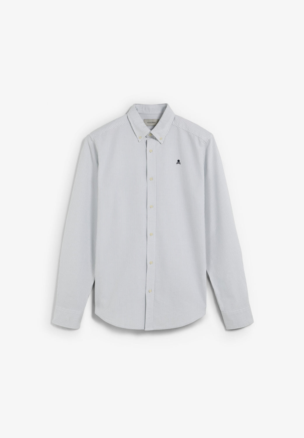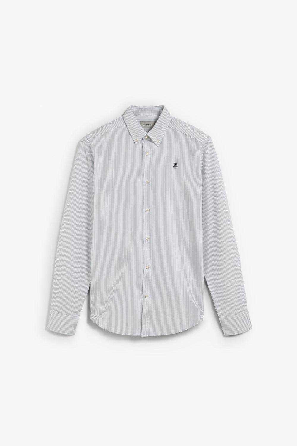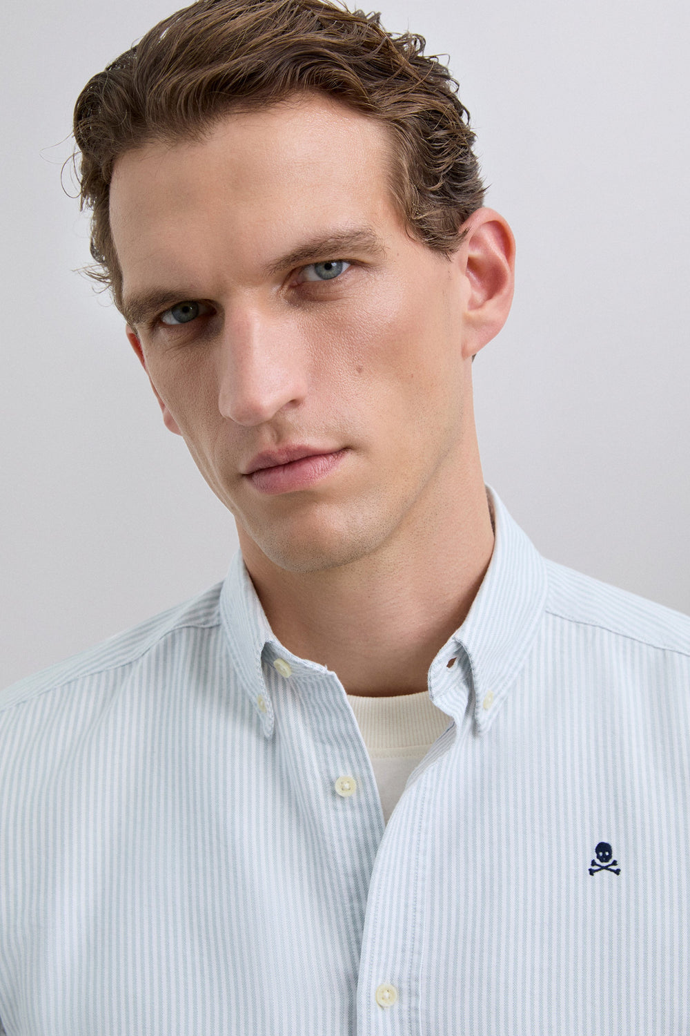 Oxford shirt made of 100% BCI cotton. Button fastening, Striped print. Long sleeves with button fastening. Contrast embroidered skull detail on the chest.